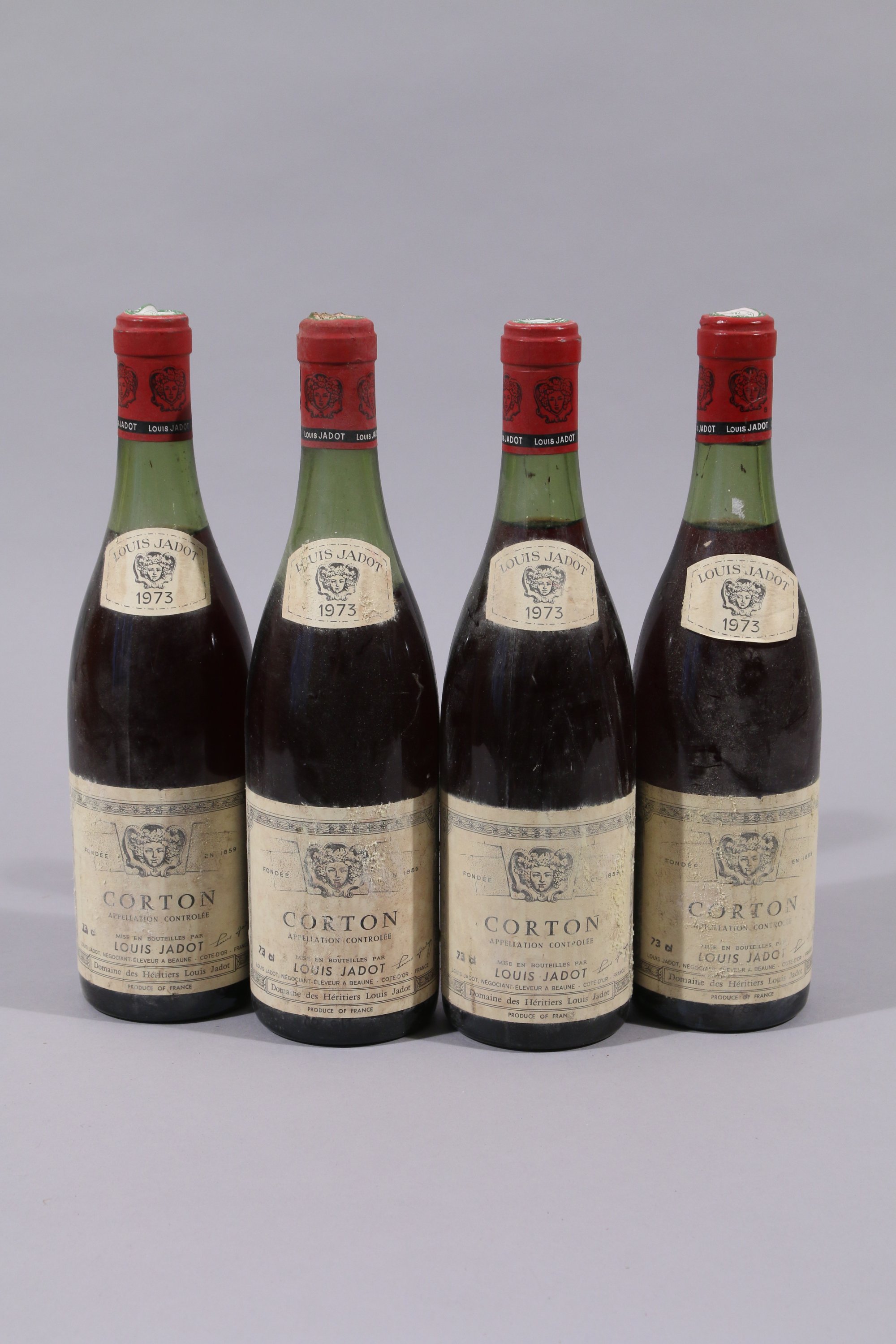 CORTON, Louis Jadot, 1973, 4 bouteilles, 3 à 6 cm, étiquettes abimées.