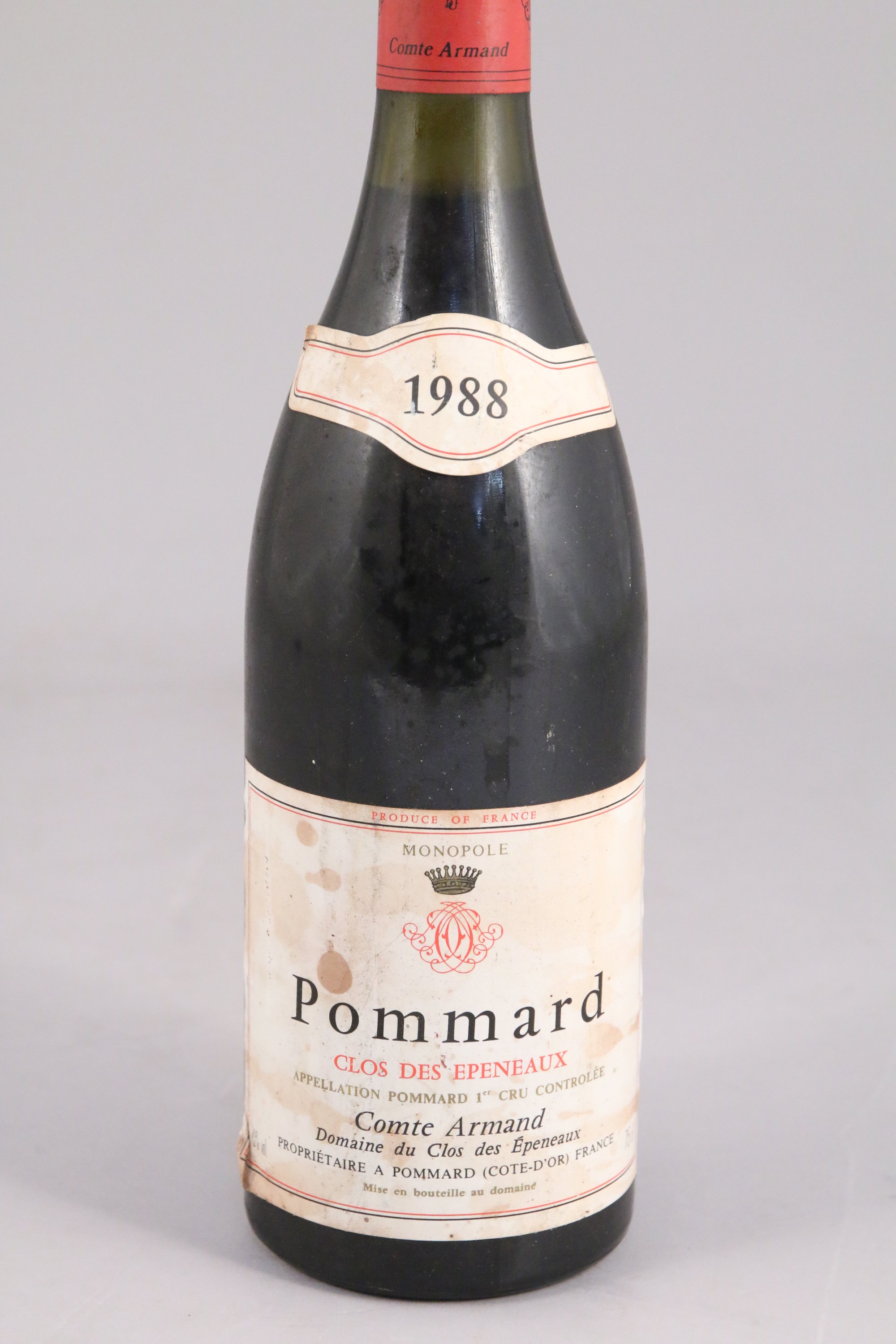POMMARD, Clos des Epeneaux, Comte Armand, 1988, 1 bouteille, 2 cm, étiquette abimée.