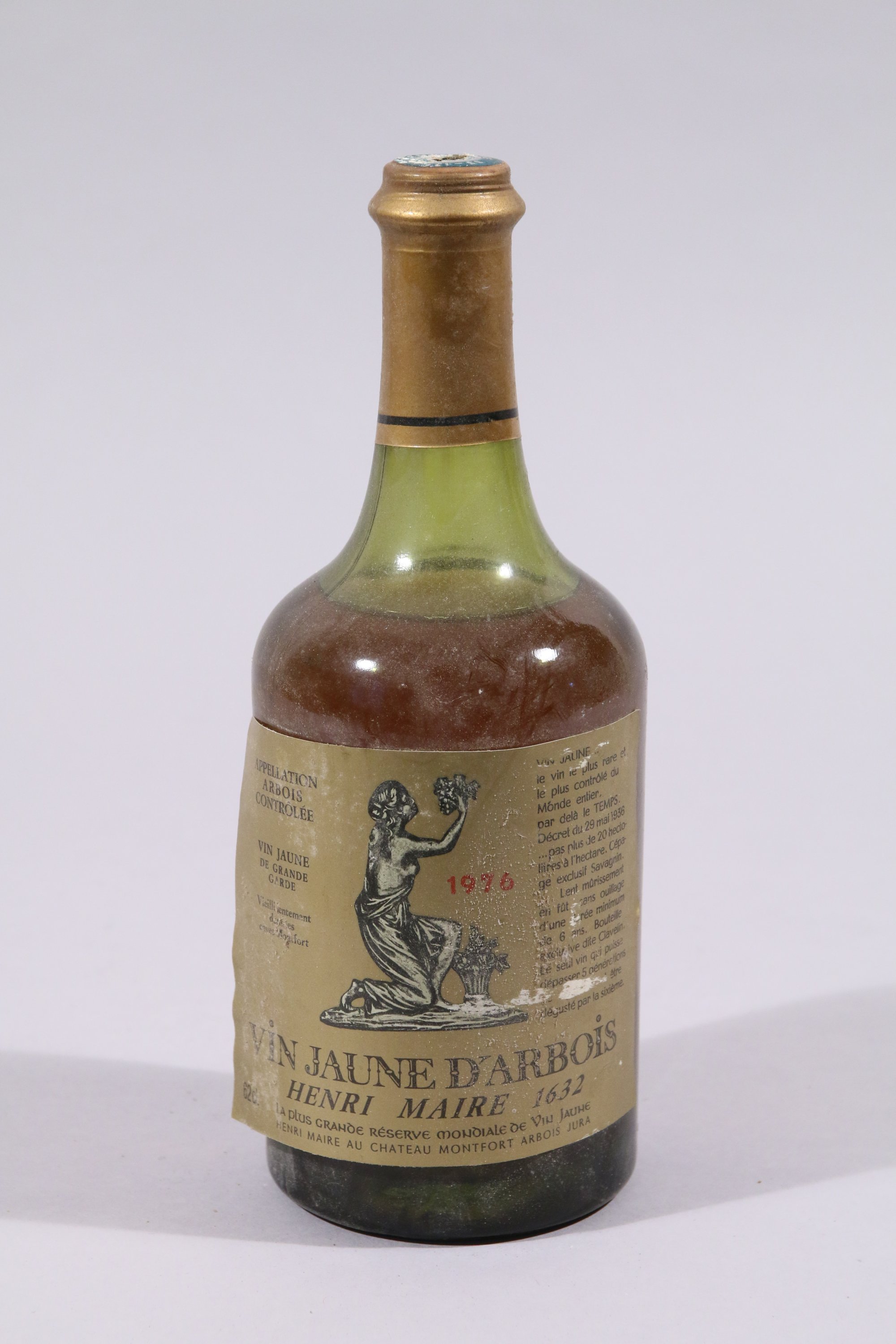 ARBOIS, Vin jaune d'Arbois, Henri Maire 1632, 1976, 1 bouteille, 4 cm, étiquette décollée.