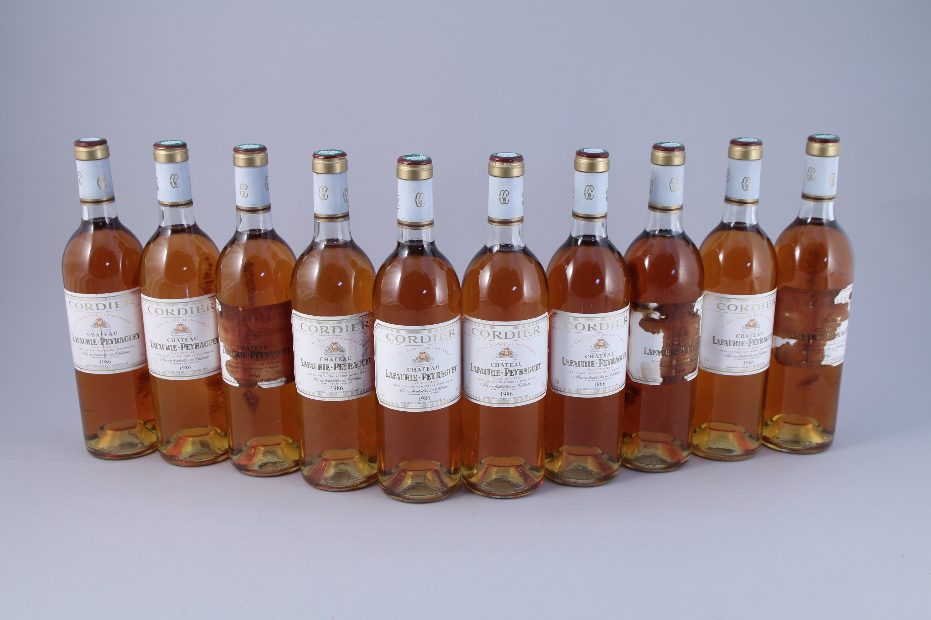 SAUTERNES, Château Lafaurie-Peyraguey, 1er Cru classé de Sauternes, 1986, 10 bouteilles, ,LB, trois étiquettes très tachées.