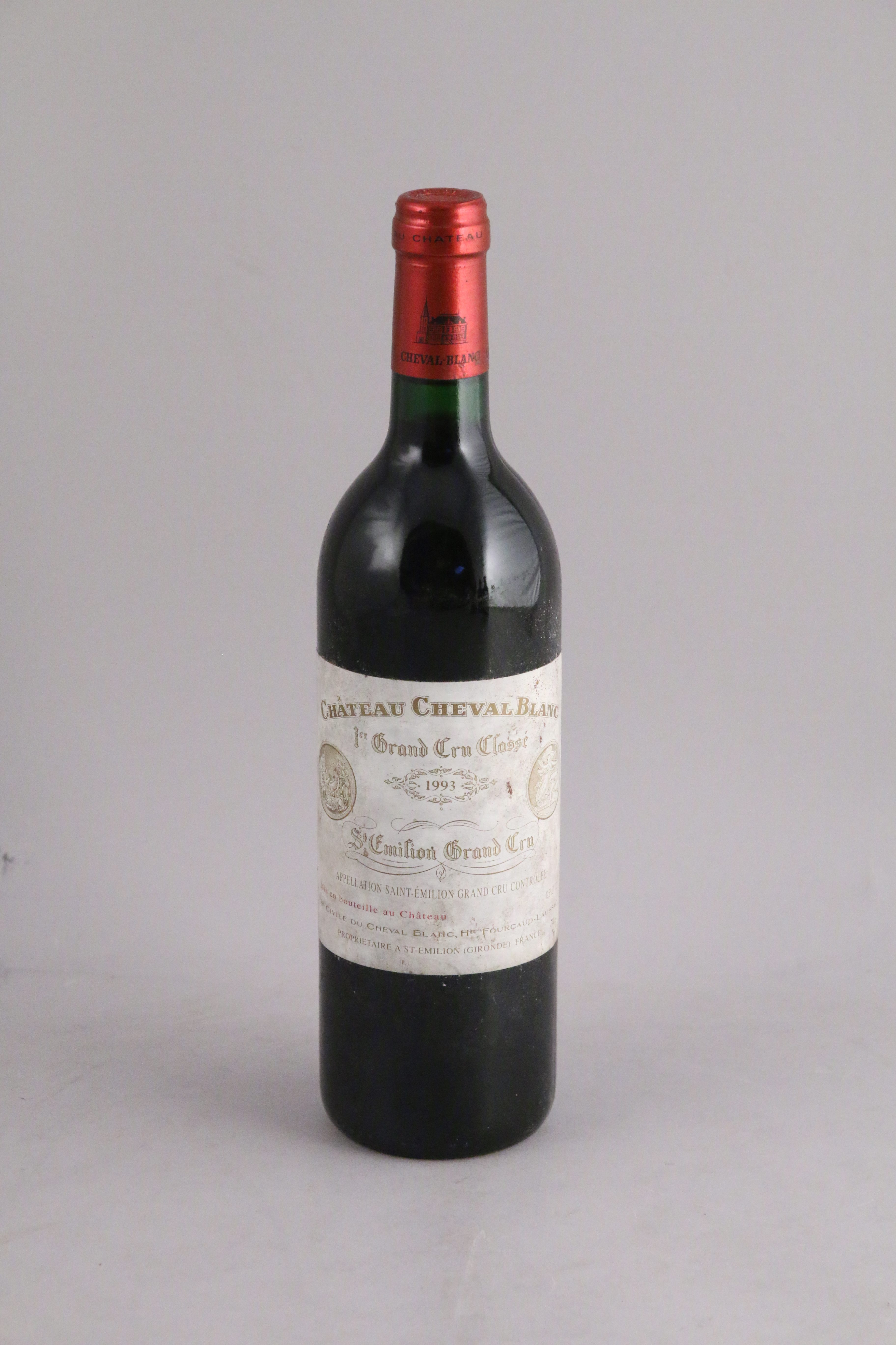 SAINT-EMILION, Château Cheval Blanc/1er Grand Cru Classé, 1993, 1 bouteille, BG, étiquette sale.