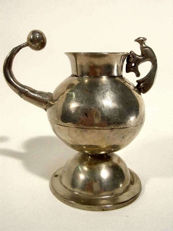 MATÉ en argent à anse. Décor d'un phénix et de feuillages. Piédouche à doucine. Haut. 10,5 cm. Poids: 115 g.