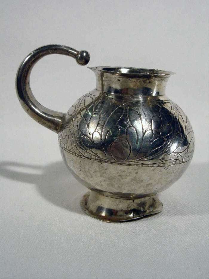 MATÉ en argent, à anse. Décor de feuillages. Piédouche. Haut. 8,5 cm. Poids: 100 g.