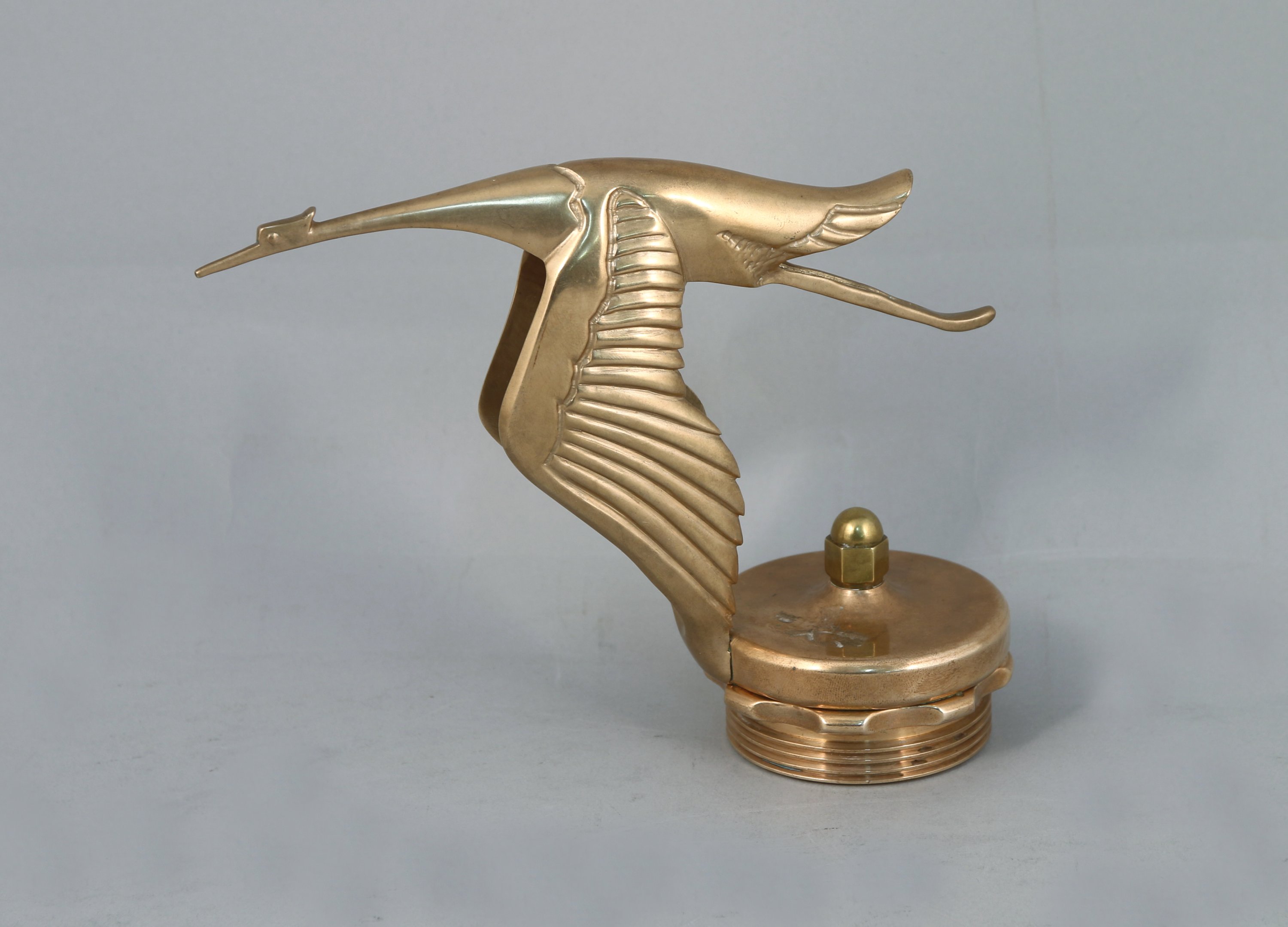 Bouchon de radiateur en bronze doré. Marqué "5" au revers, non signée, (d'après un modèle de Frédérick Bazin).