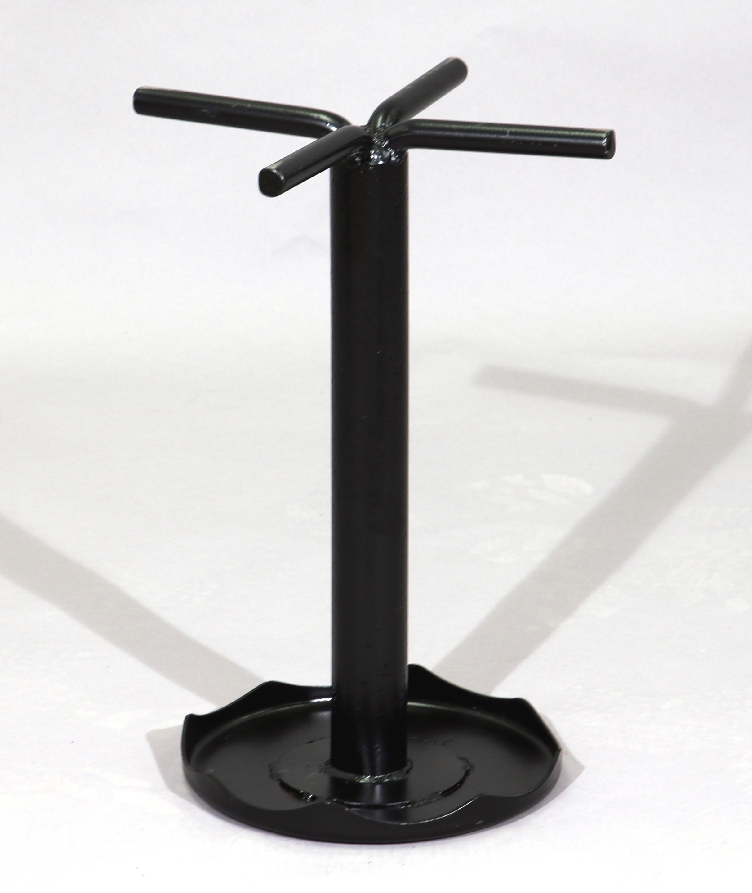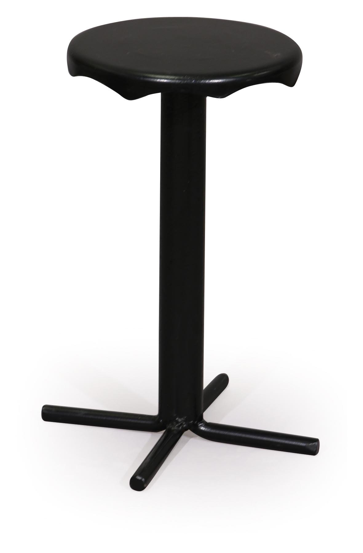 en métal laqué noir. Assise de forme ronde à bords inférieurs chantournés. Piètement quadripode.