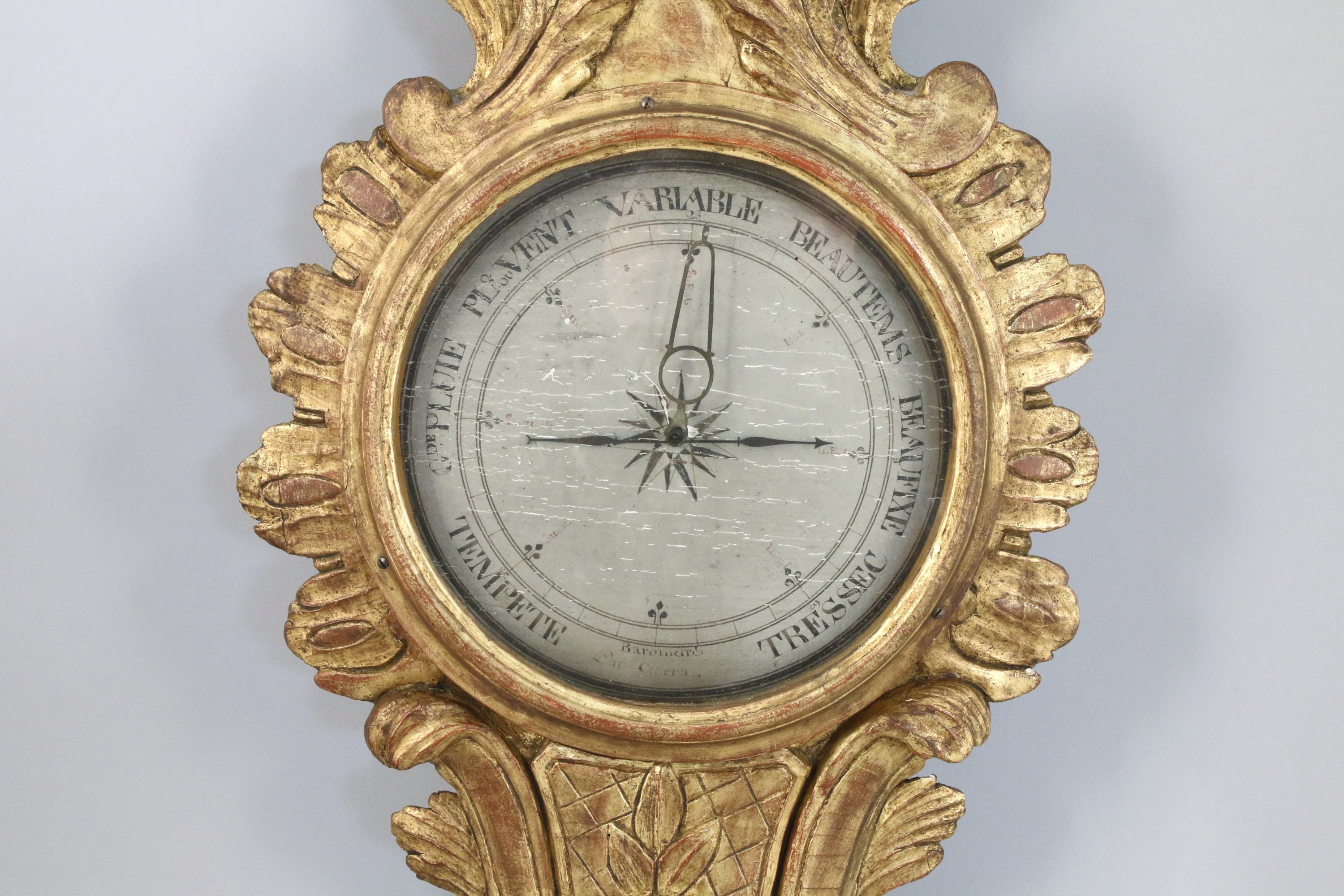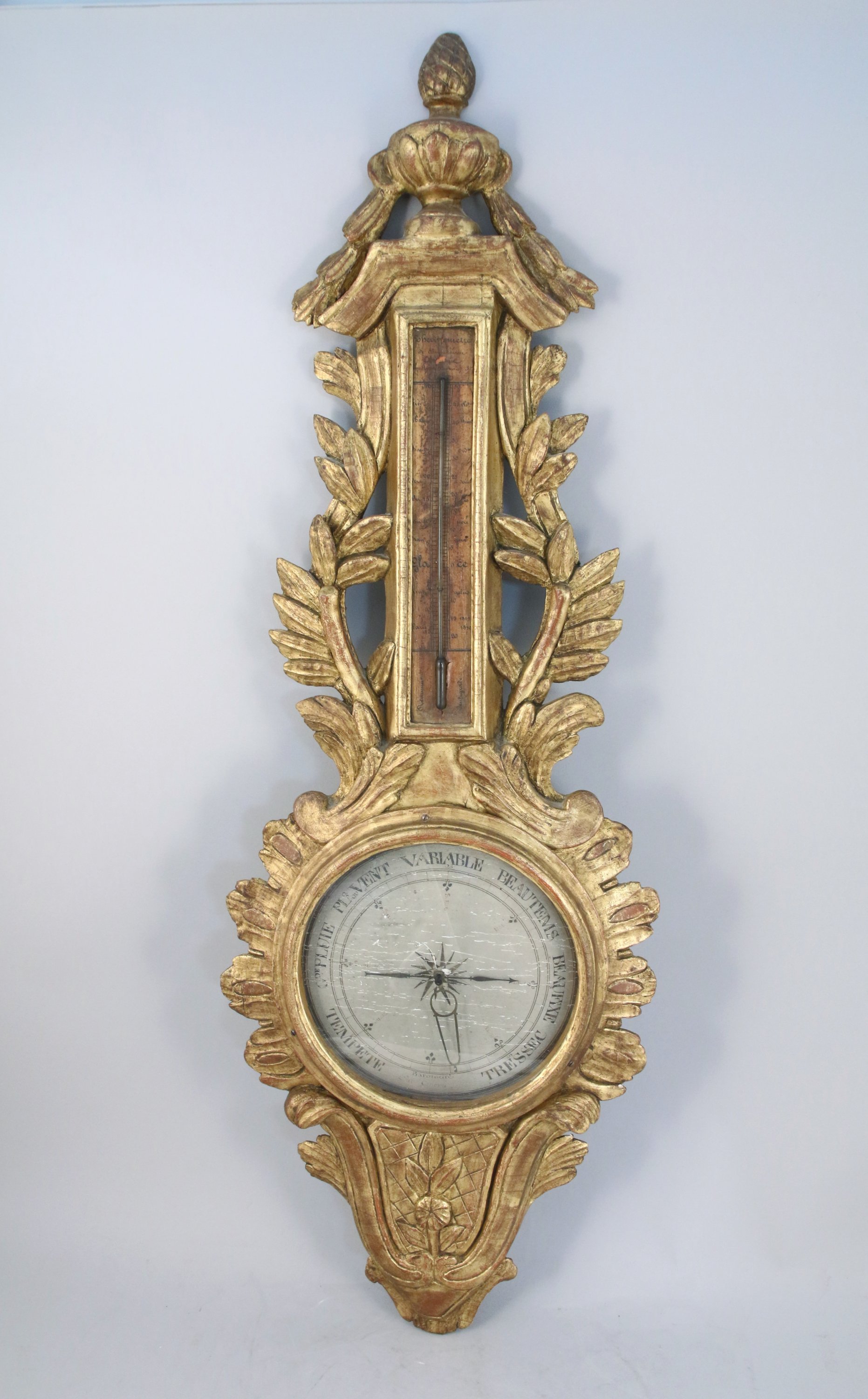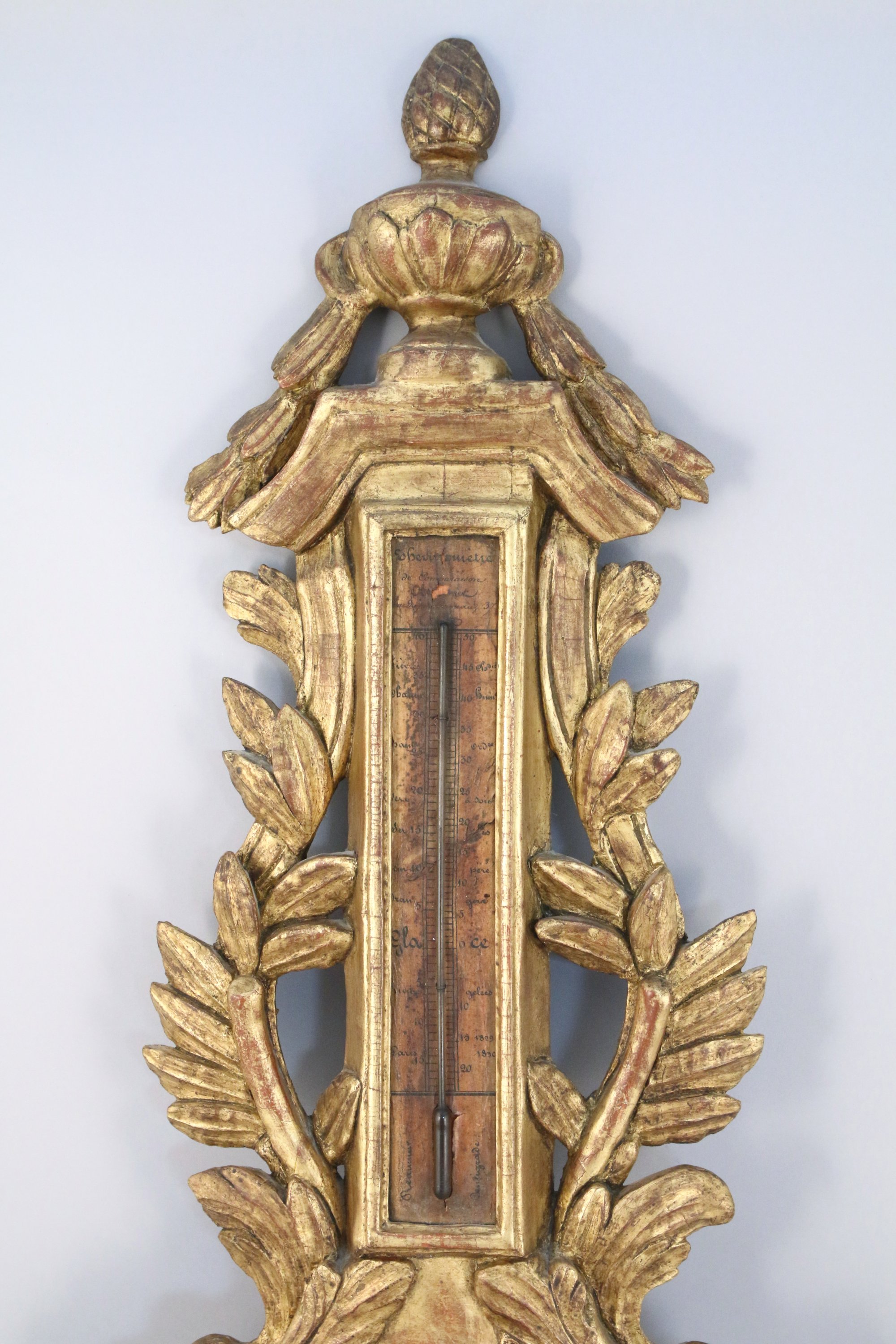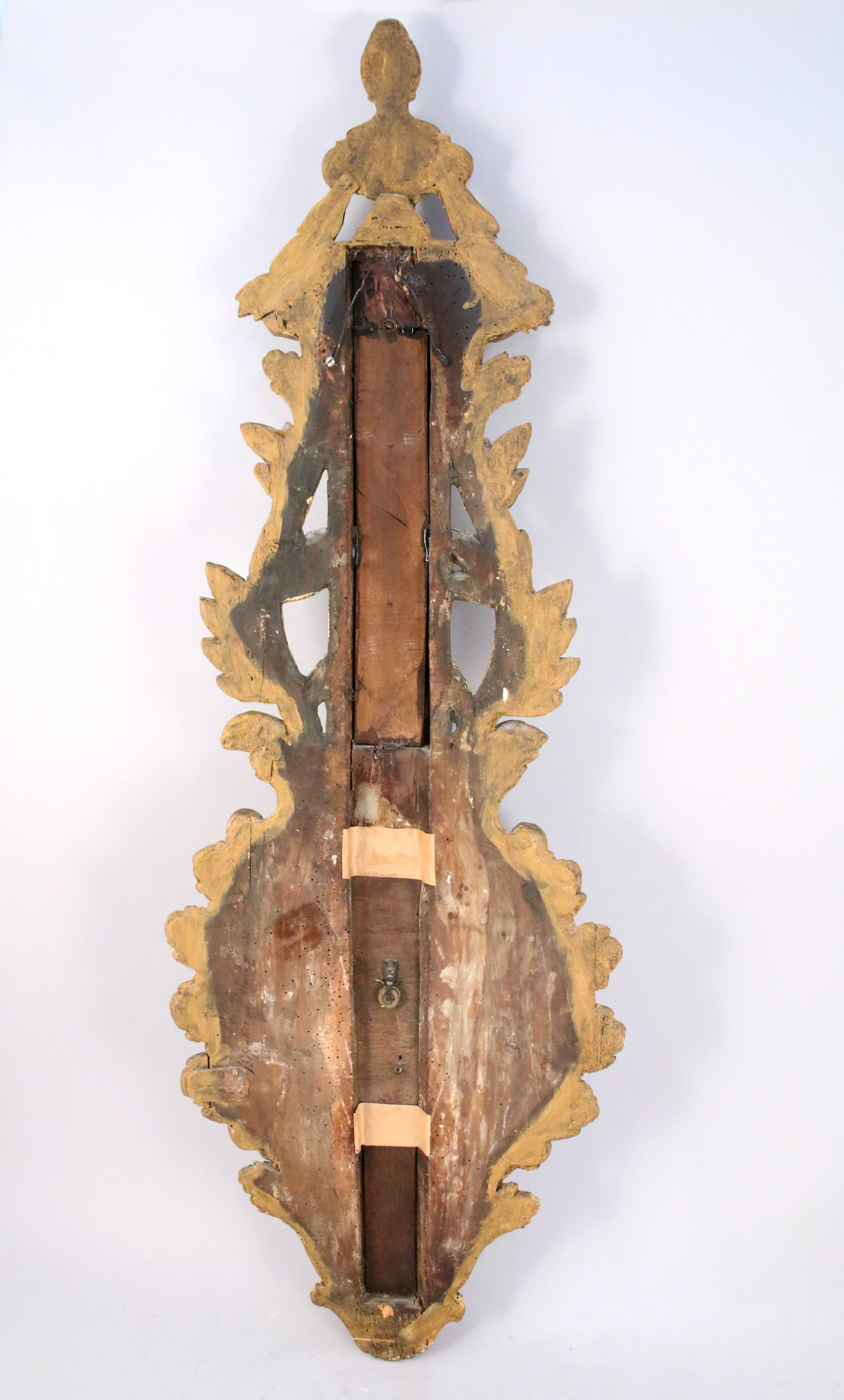en bois mouluré, sculpté et doré surmonté d'un vase godronné avec une prise en pomme de pin, et motifs de feuillage et croisllons ajourés. Sans son mécanisme.