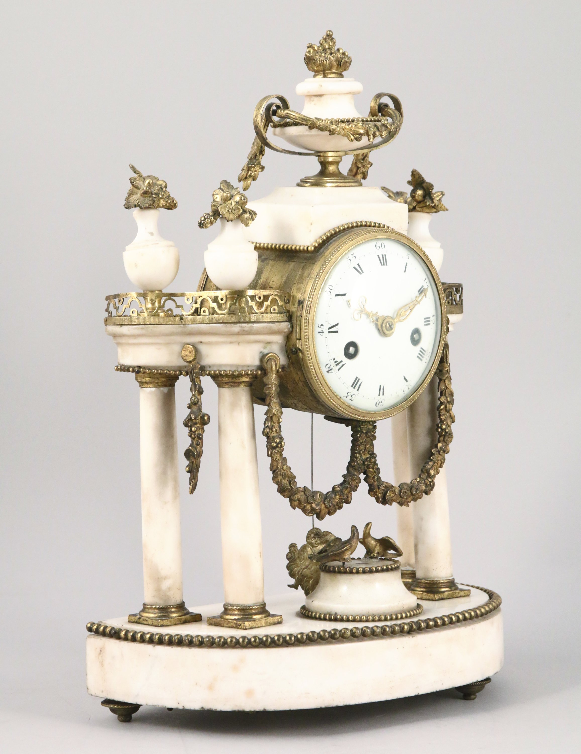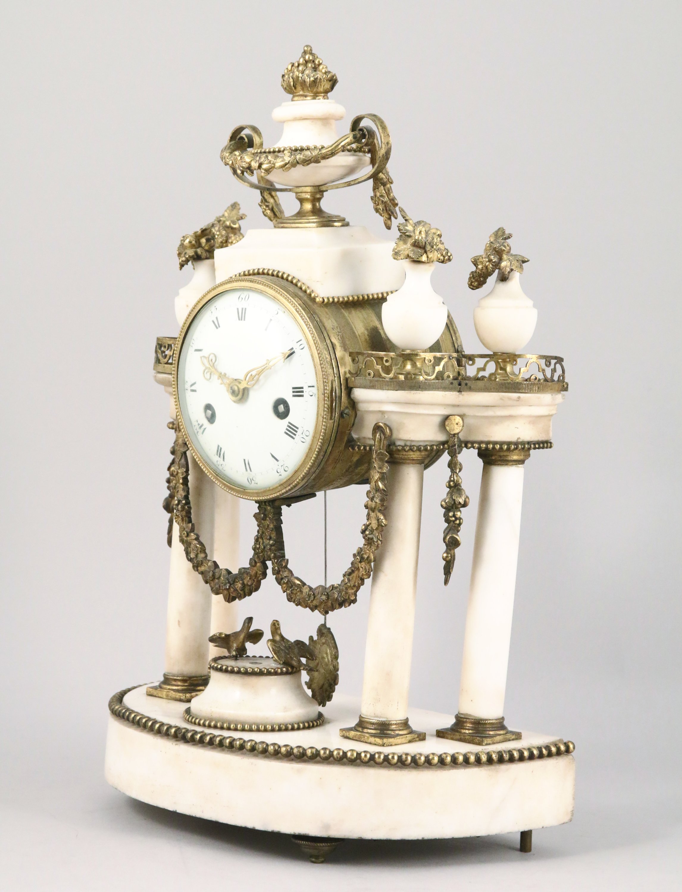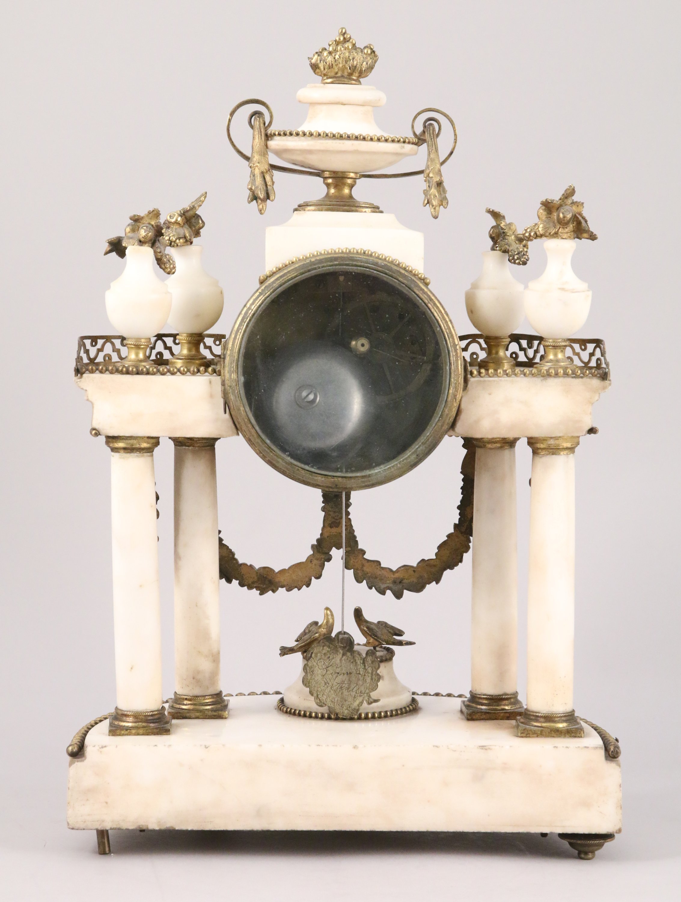 PENDULE PORTIQUE en marbre blanc et bronze doré,