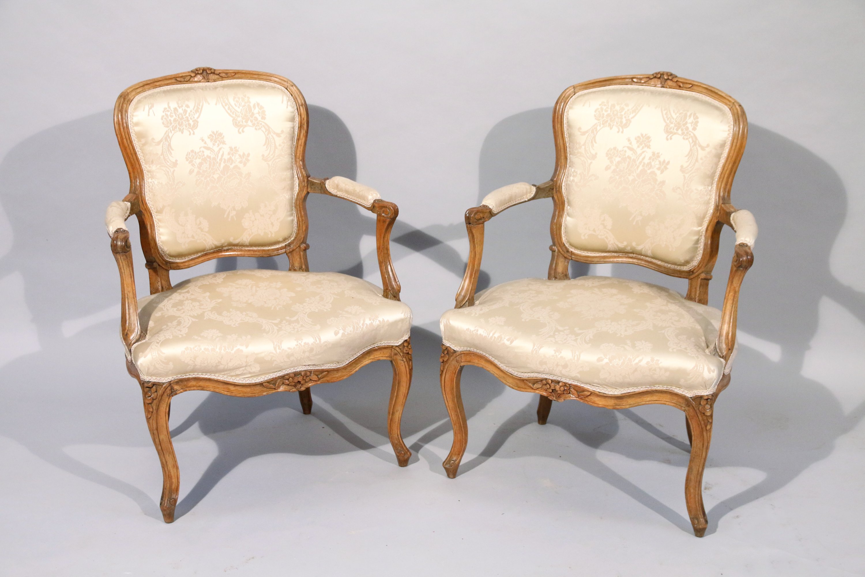 en hêtre mouluré et sculpté. De forme mouvementés, le sommet du dossier, la ceinture et les pieds sculptés de marguerites. Ils reposent sur des pieds galbés.