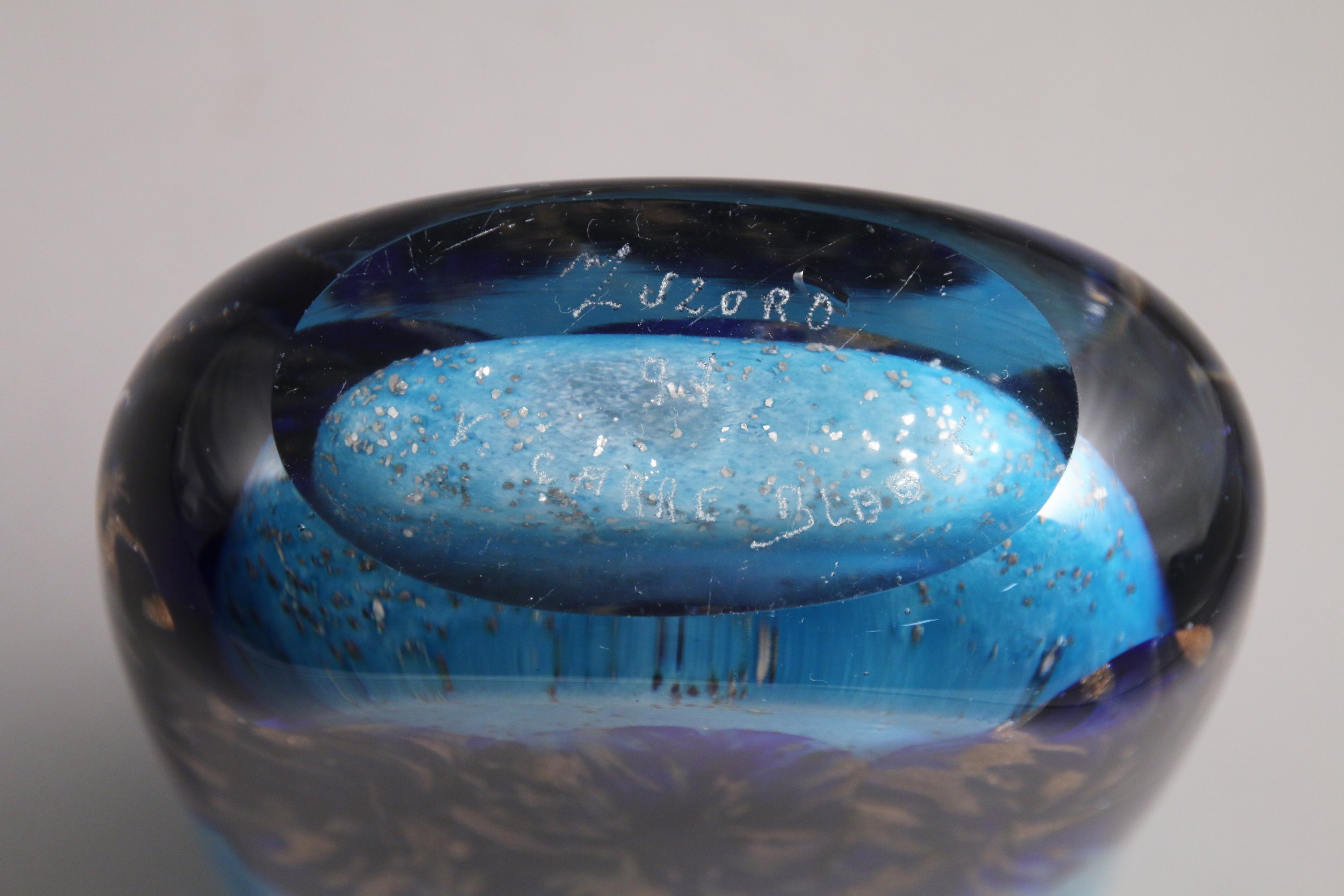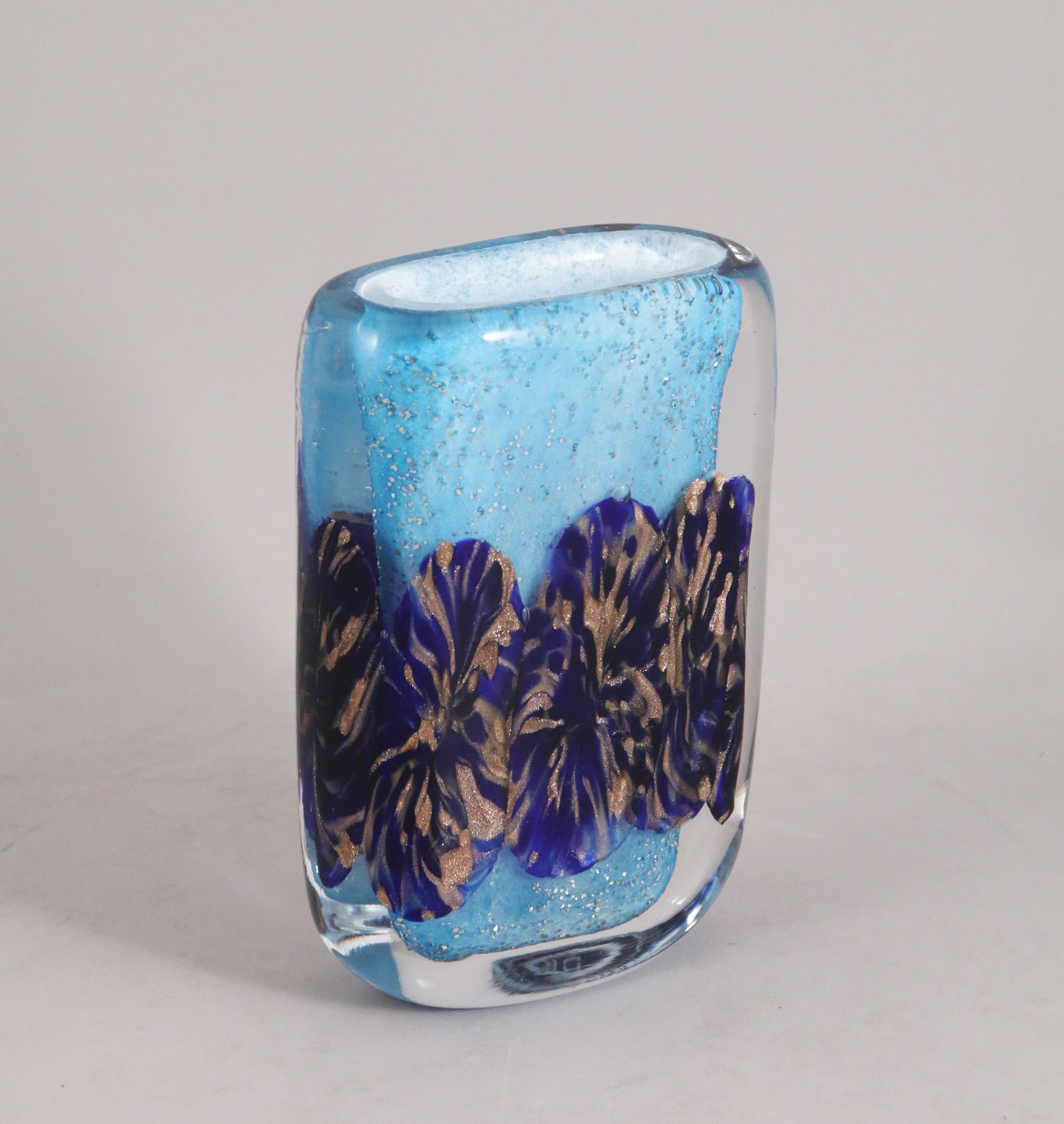 Vase méplat en verre soufflé à inclusions de paillettes d'argent et aventurine.