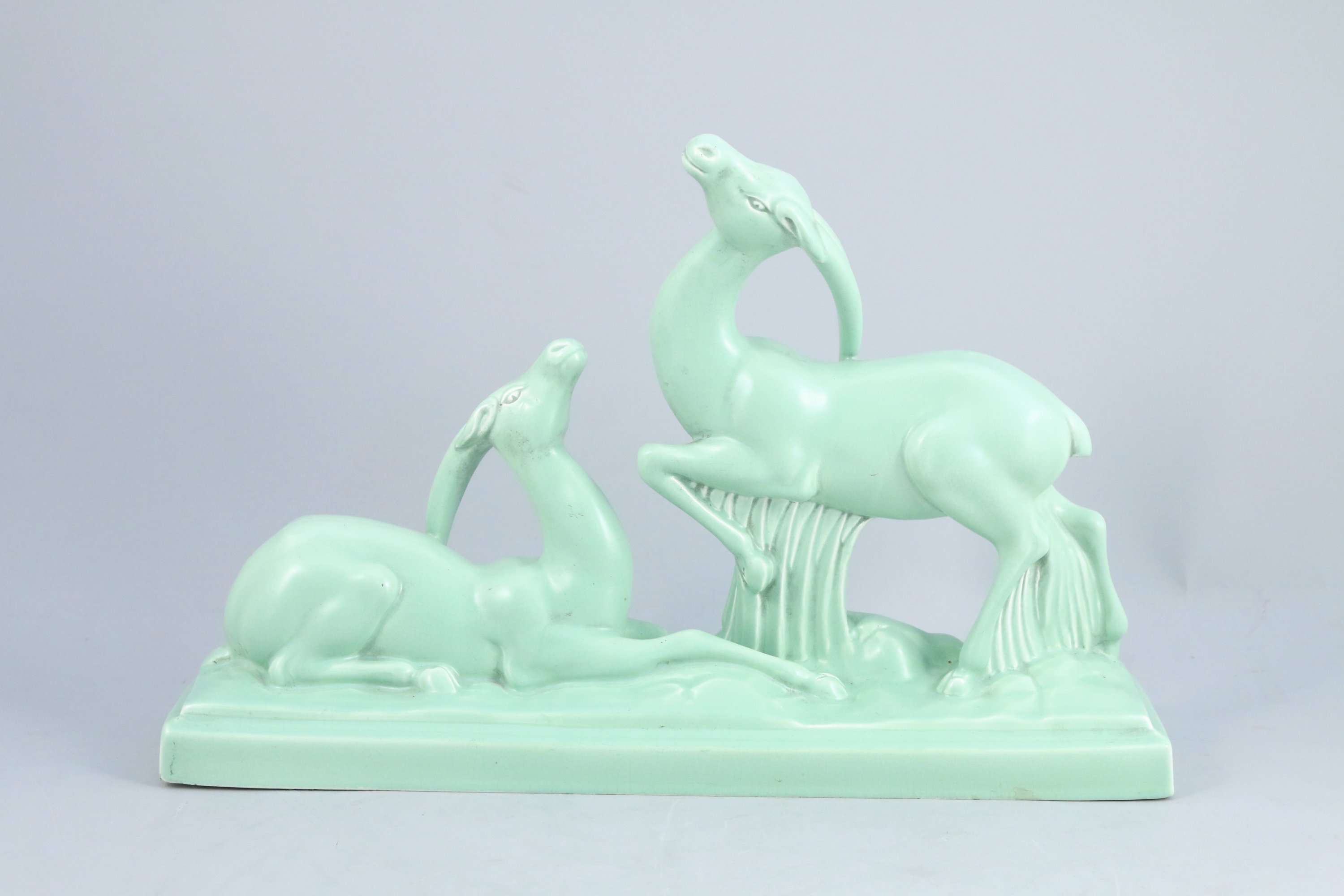 "Couple de gazelles", céramique céladon craquelée, circa 1930.