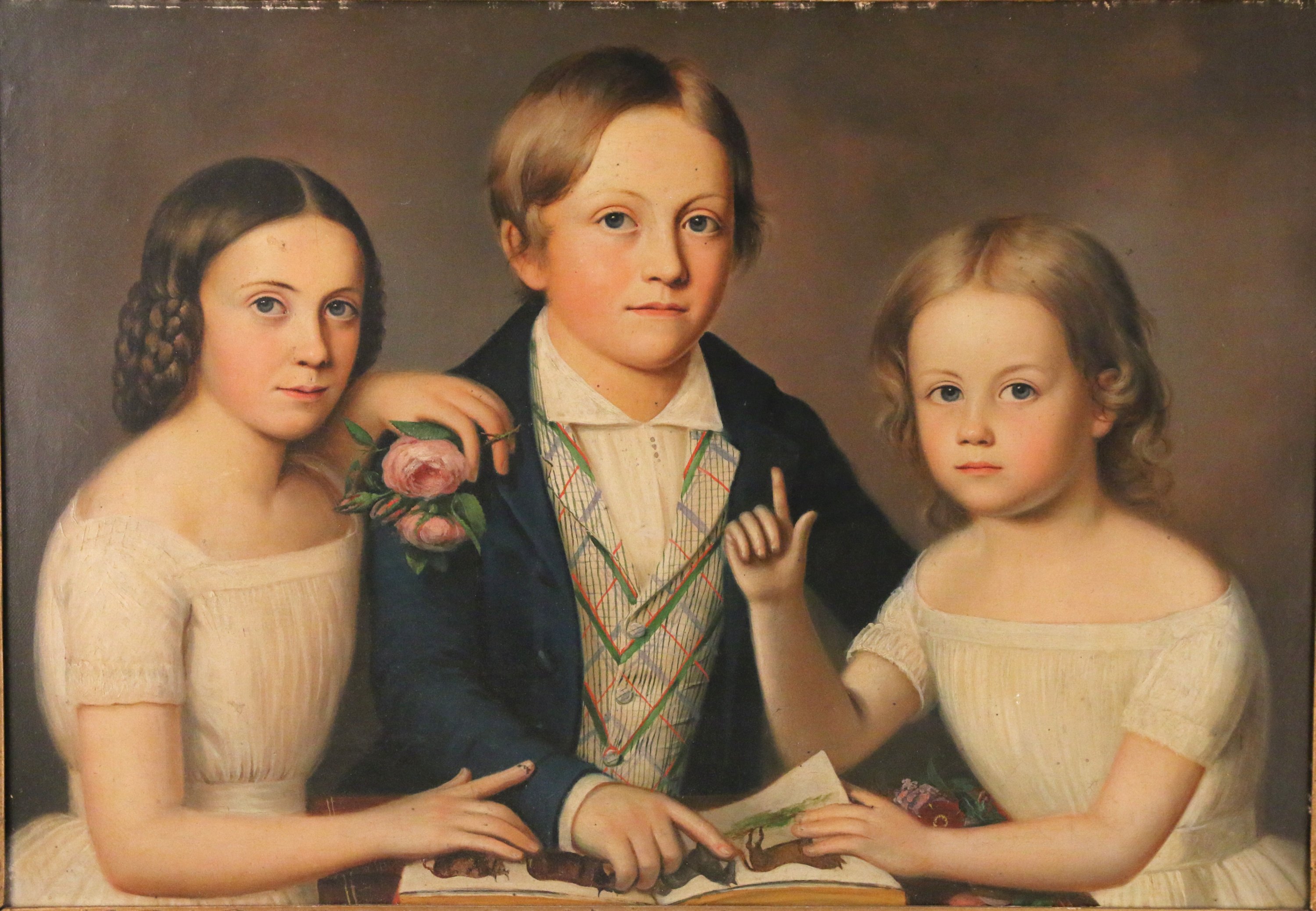 Toile datée au dos "1853" avec inscriptions, annotée Fritz (né én 1839), Emelia (née 1844) et Hilda (née en 1849).