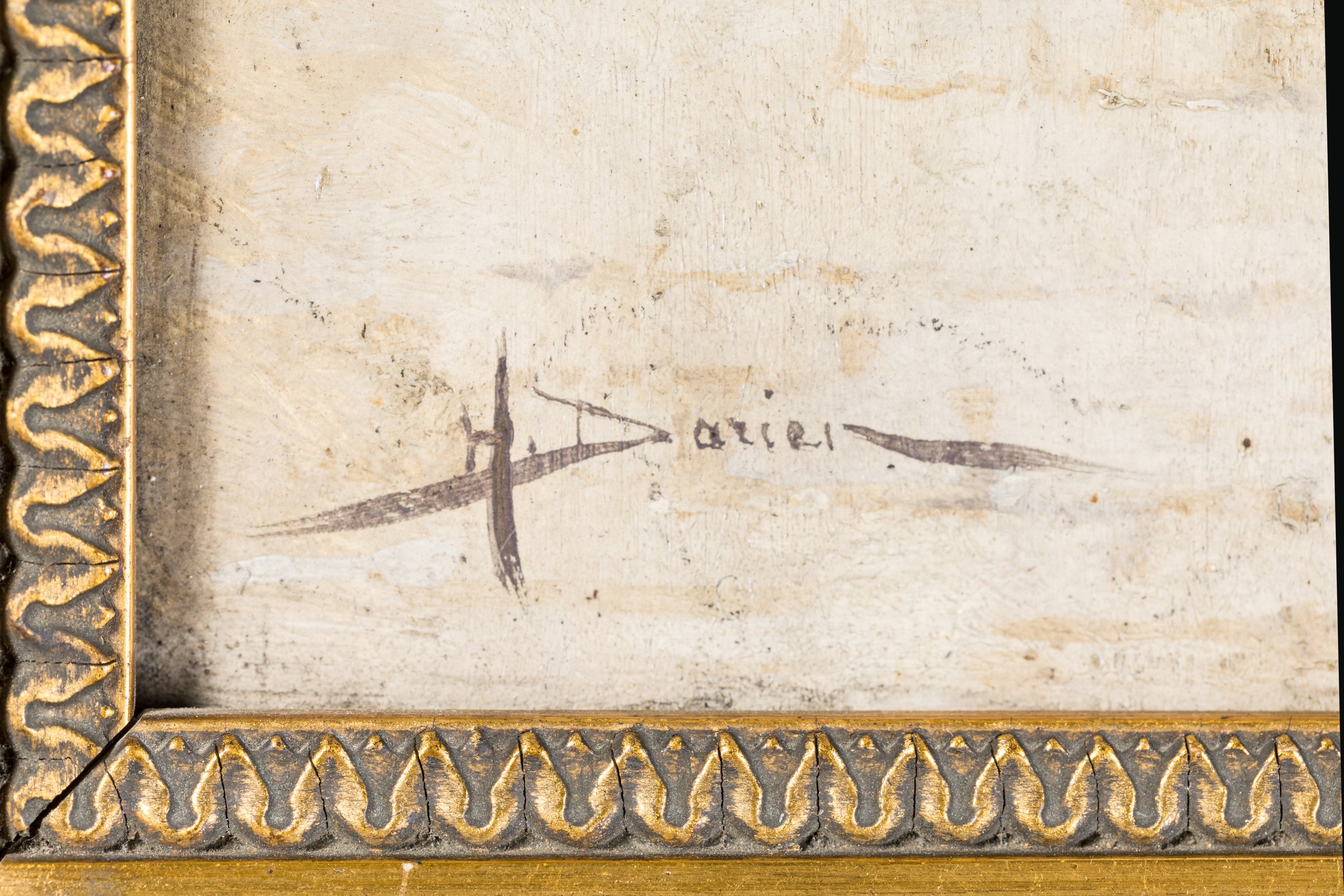 Panneau signé en bas à gauche.