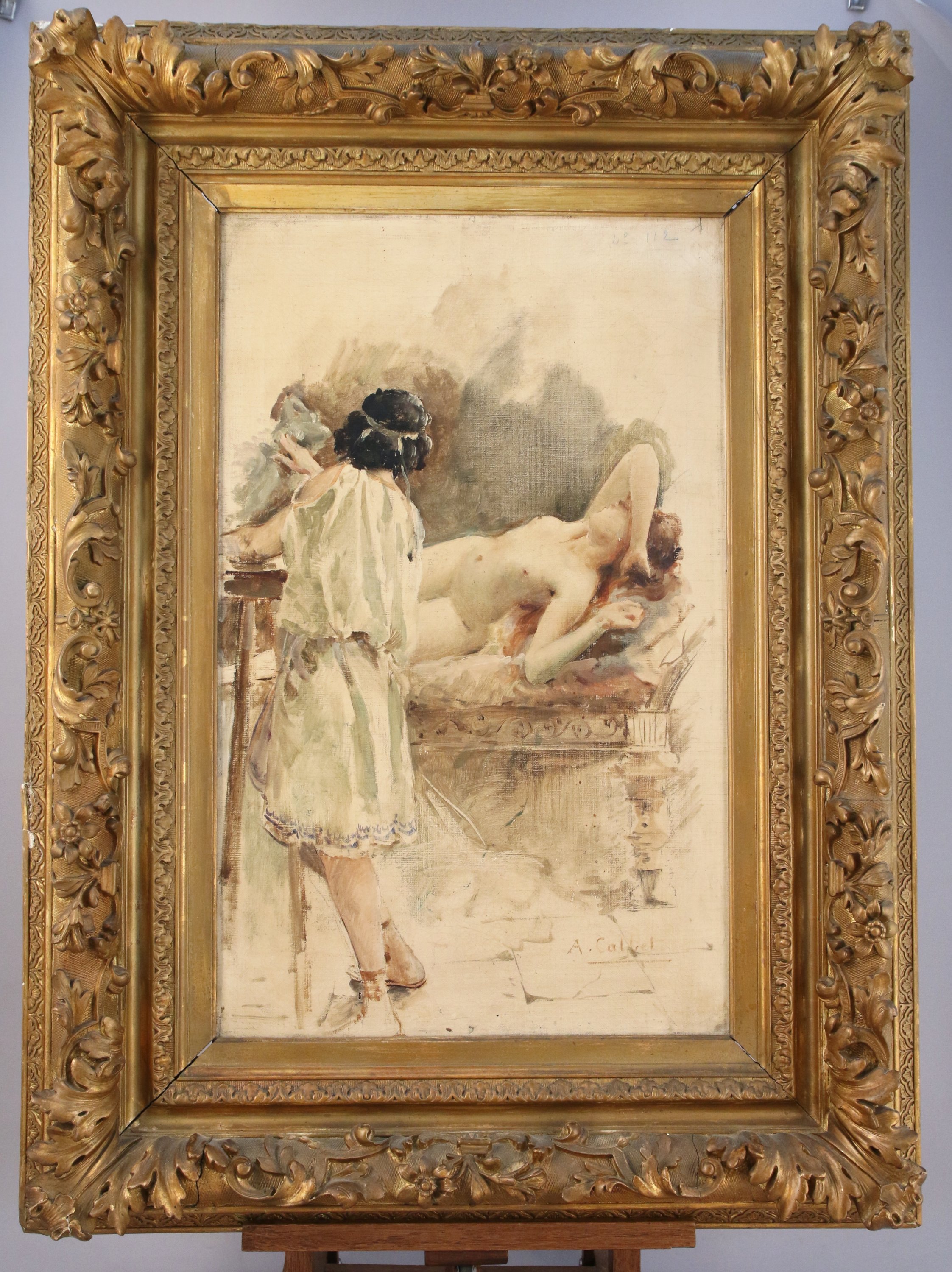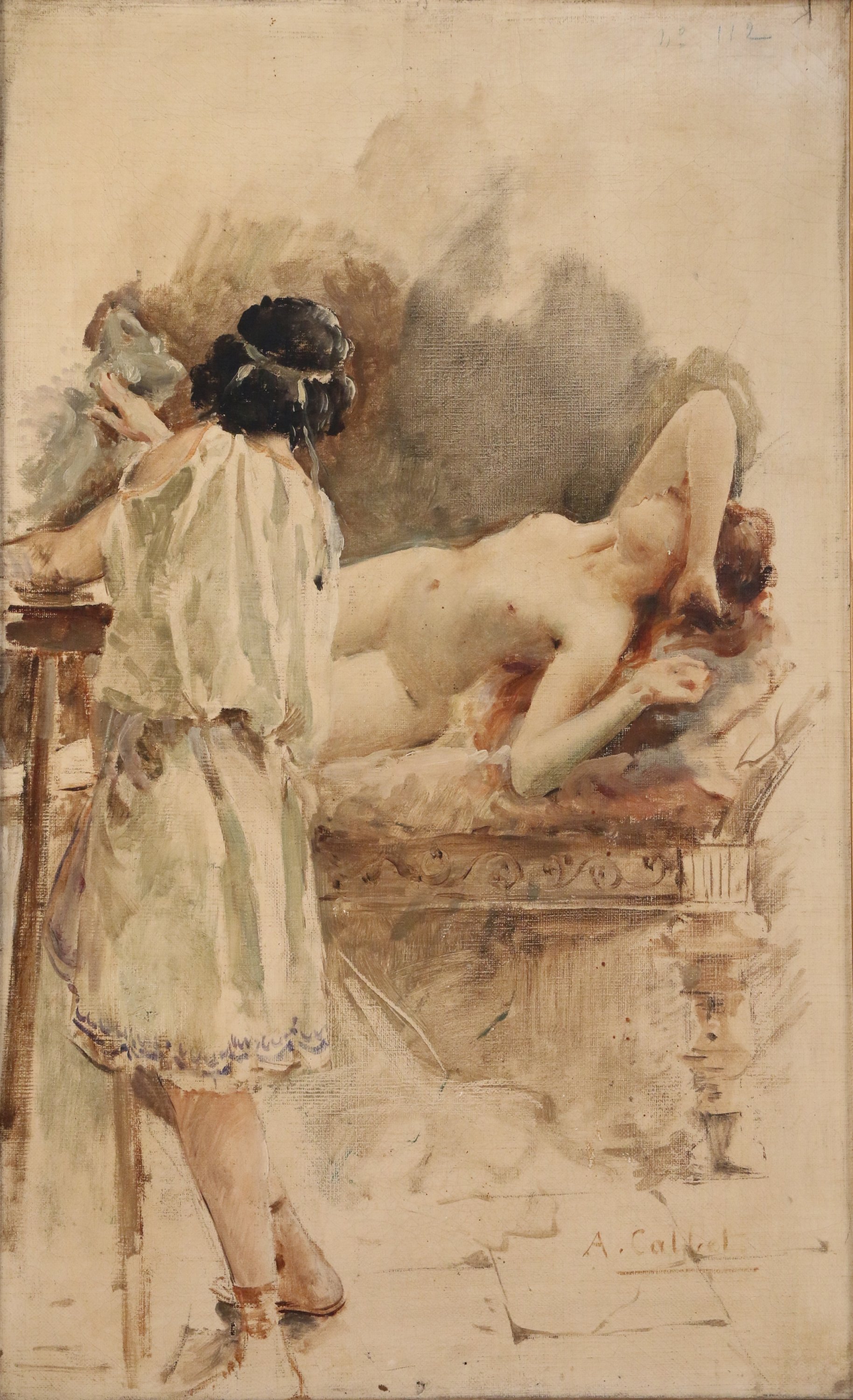 Antoine CALBET (1860-1944)Vestale nue posant devant une sculptrice Toile signée...