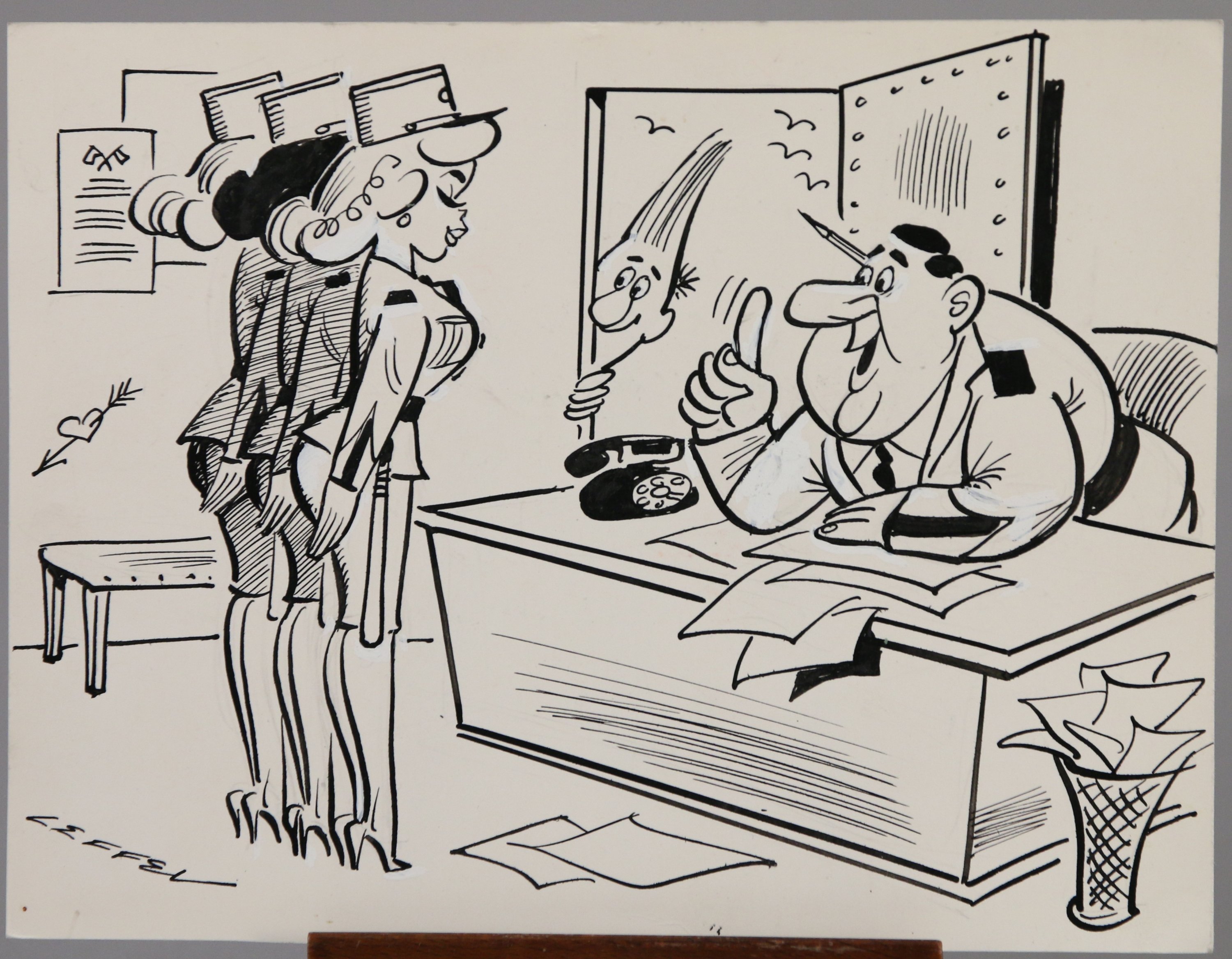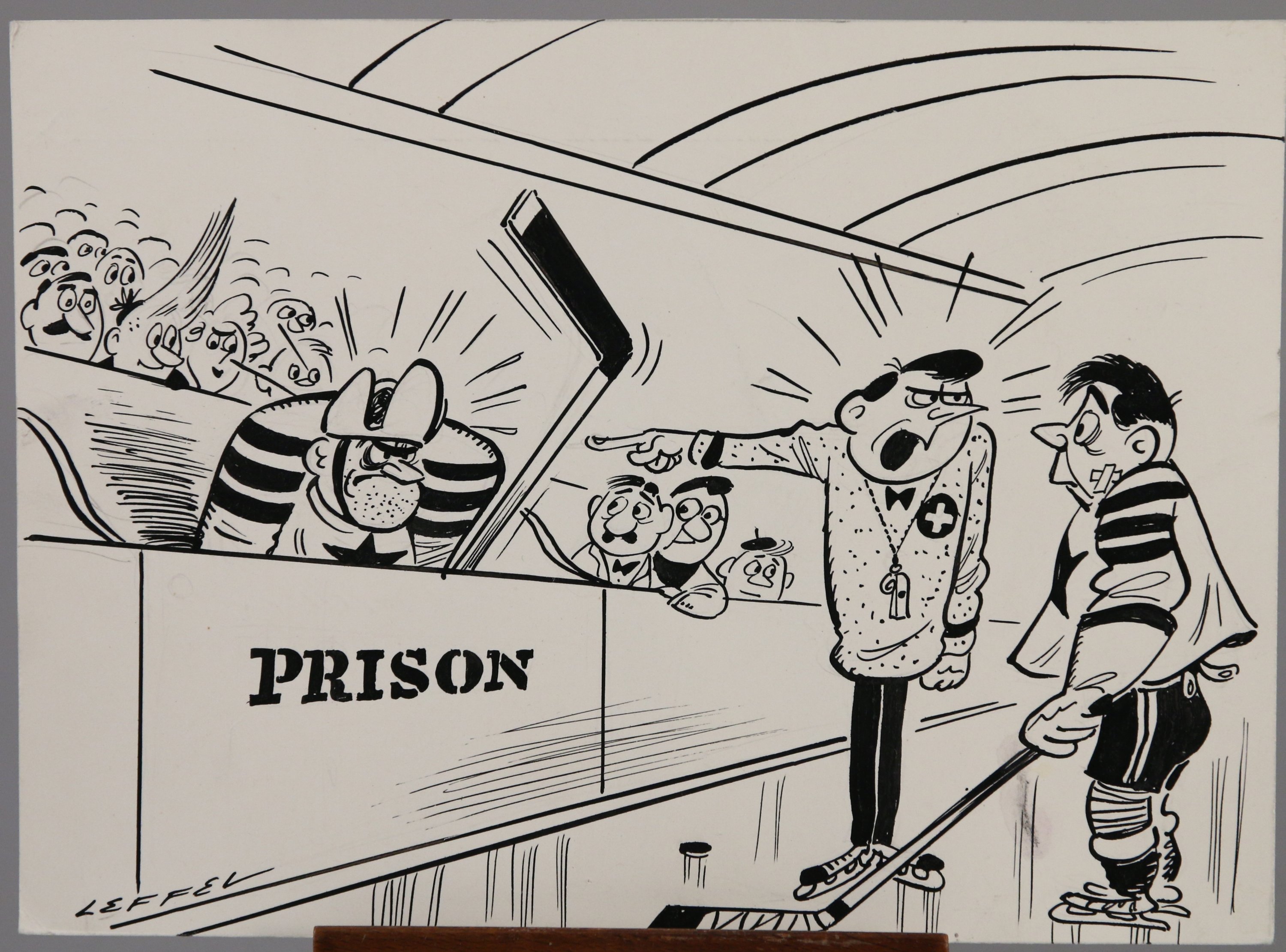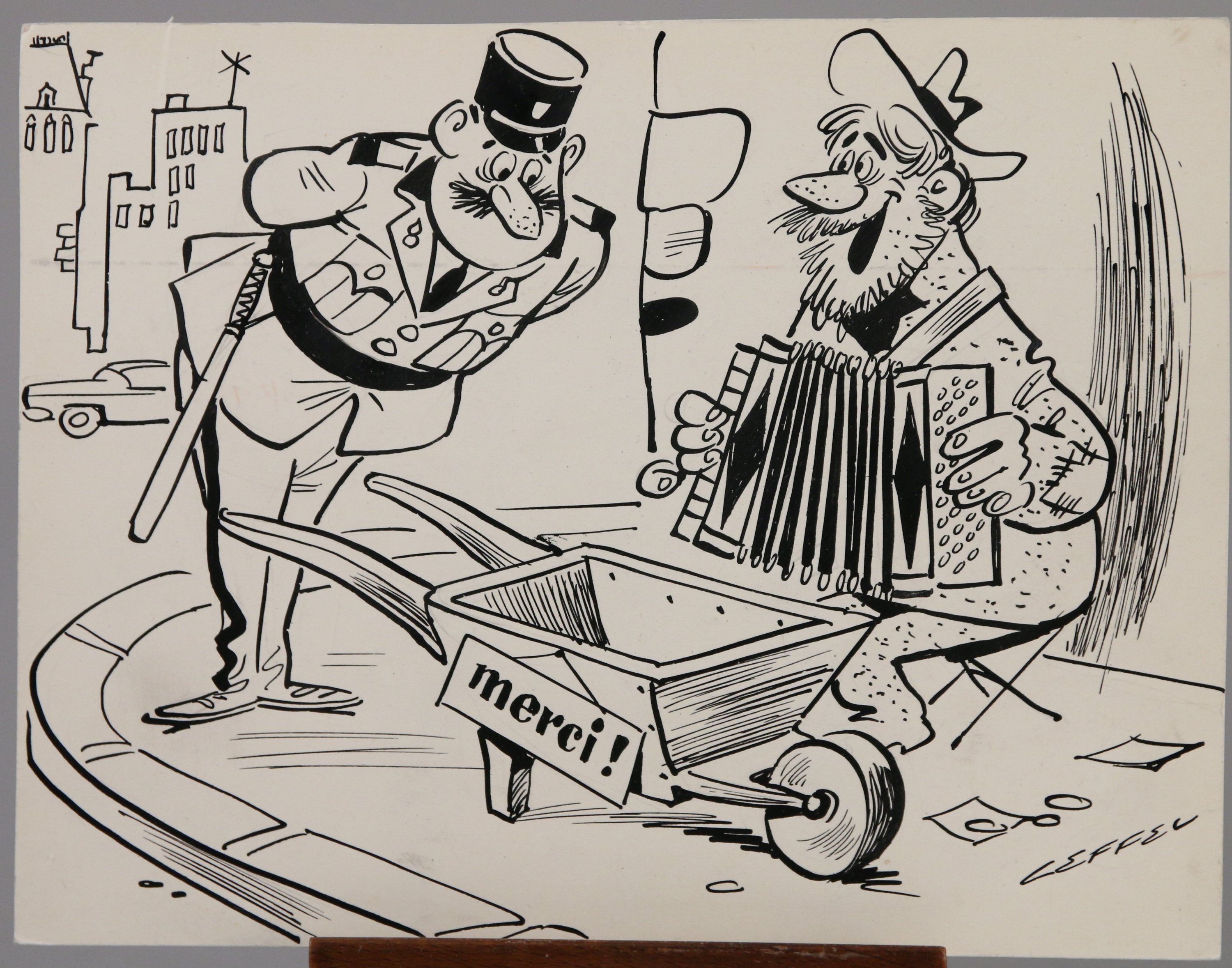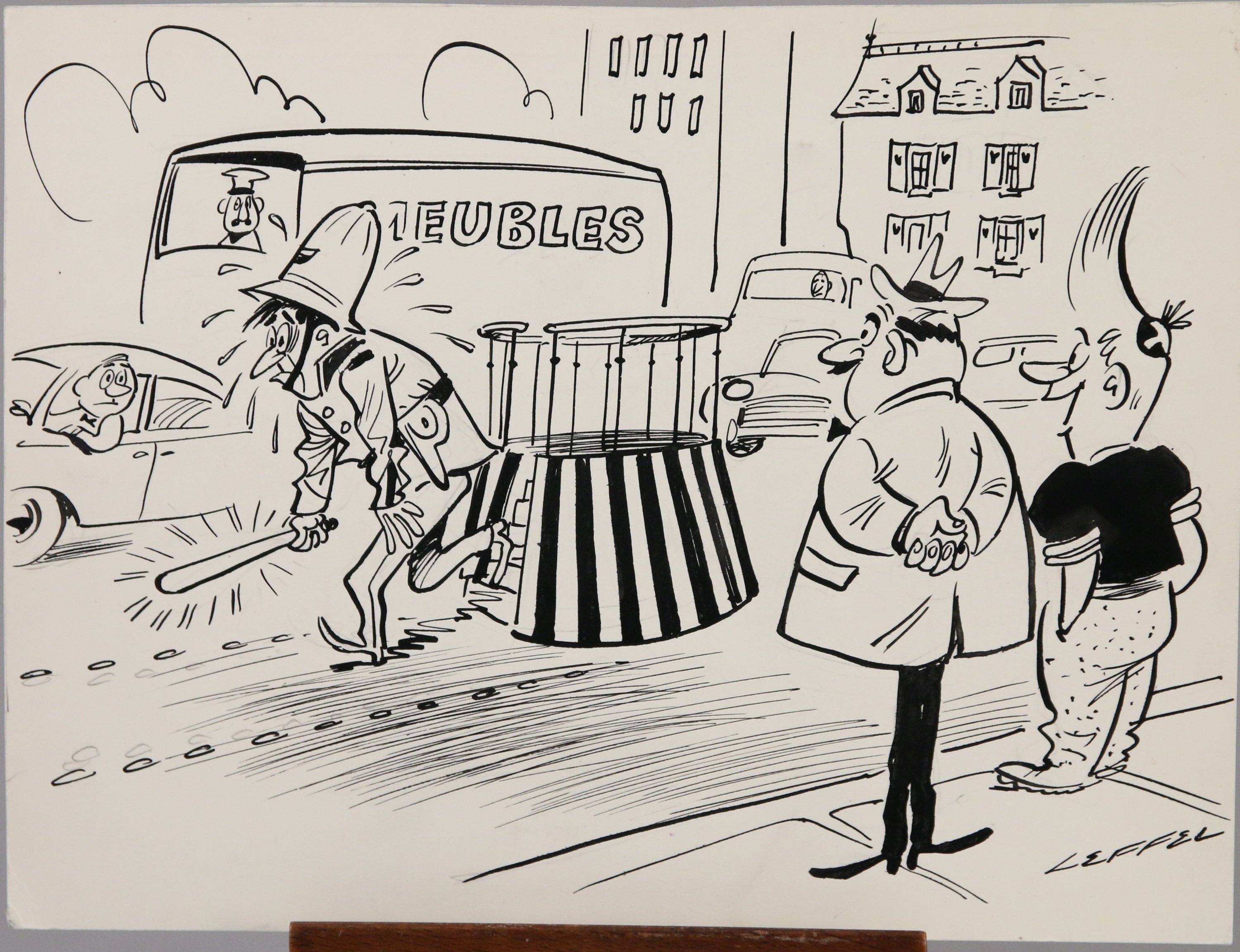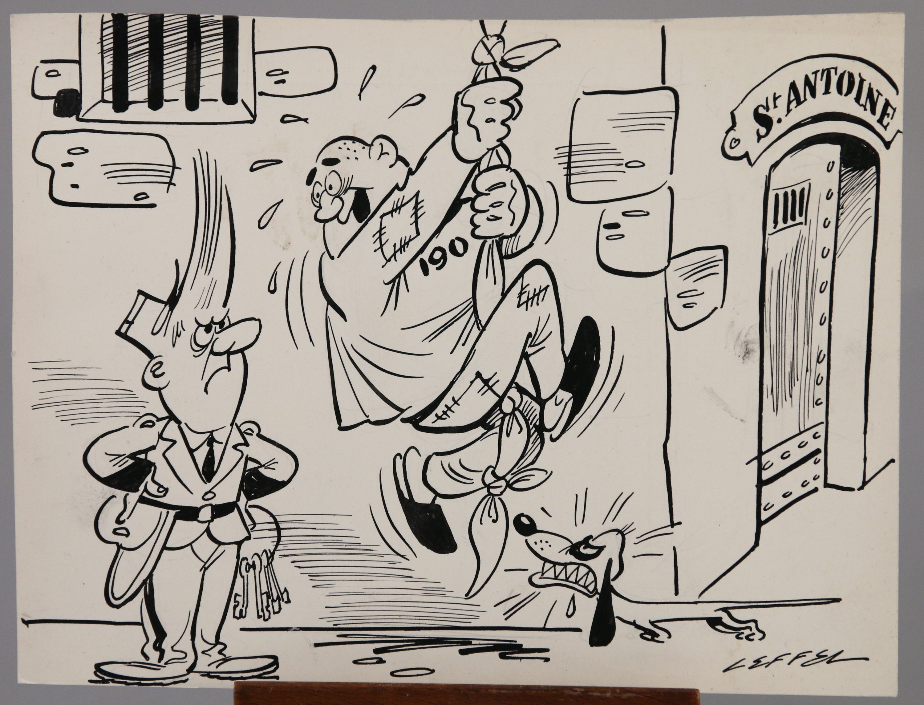 Dessinateur suisse, LEFFEL qui débute en 1944, collabore a bien des magazines dans son pays, et est un pilier de Nebelspalter. Par courrier, il travaille pendant près de 20 ans au Canard Enchaîné sans jamais y metttre les pieds mis à part quelques apparitions en certains mois d'août. S'est adonné à la caricature dans un style nettement inspiré par Cabrol dans une facture plus nerveuse. Le Canard Enchâiné (1964-182), le Crapouillot (1981), Paris-Presse, le Dauphiné Libéré, France Soir.