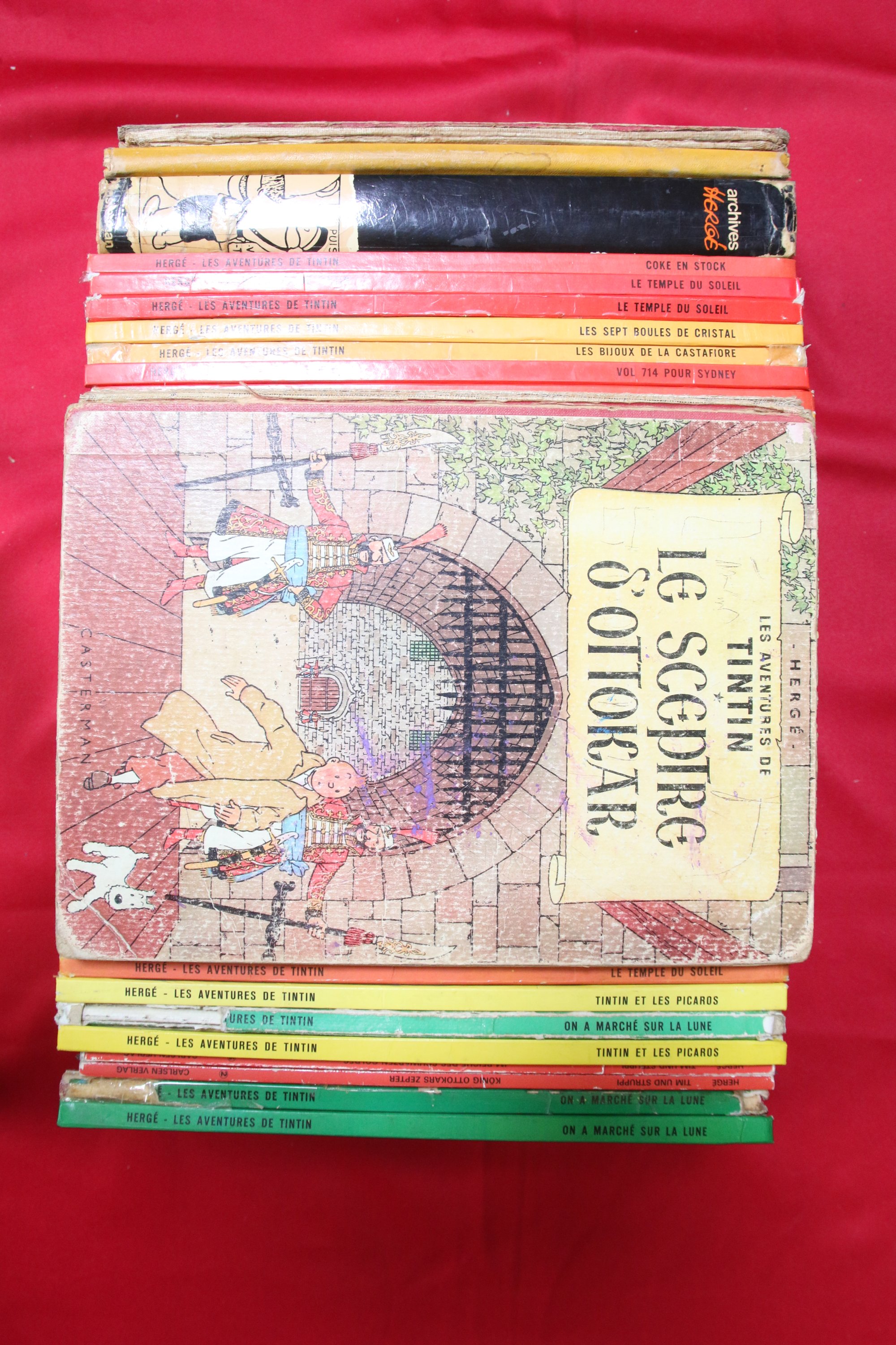 ENSEMBLE d'environ 40 ALBUMS de TINTIN dont "Le sceptre d'Ottokar", "Le lotus bleu" ou "Les bijoux de la Castafiore".