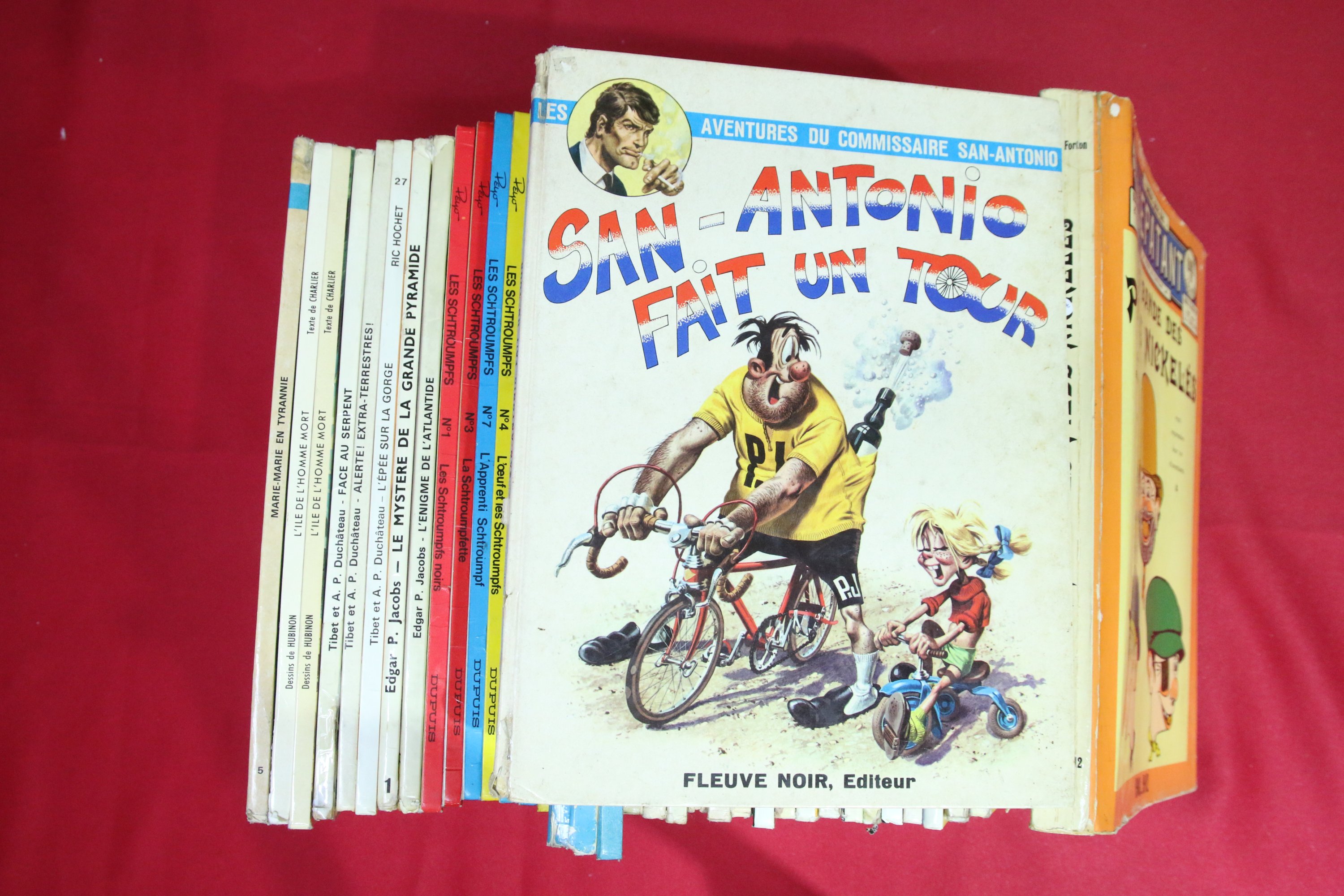 ENSEMBLE d'environ 35 ALBUMS des SCHTROUFS, SAN ANTONIO, ACHILLE TALON, BICOT ou LA BANDE DES PIEDS NICKELÉS.