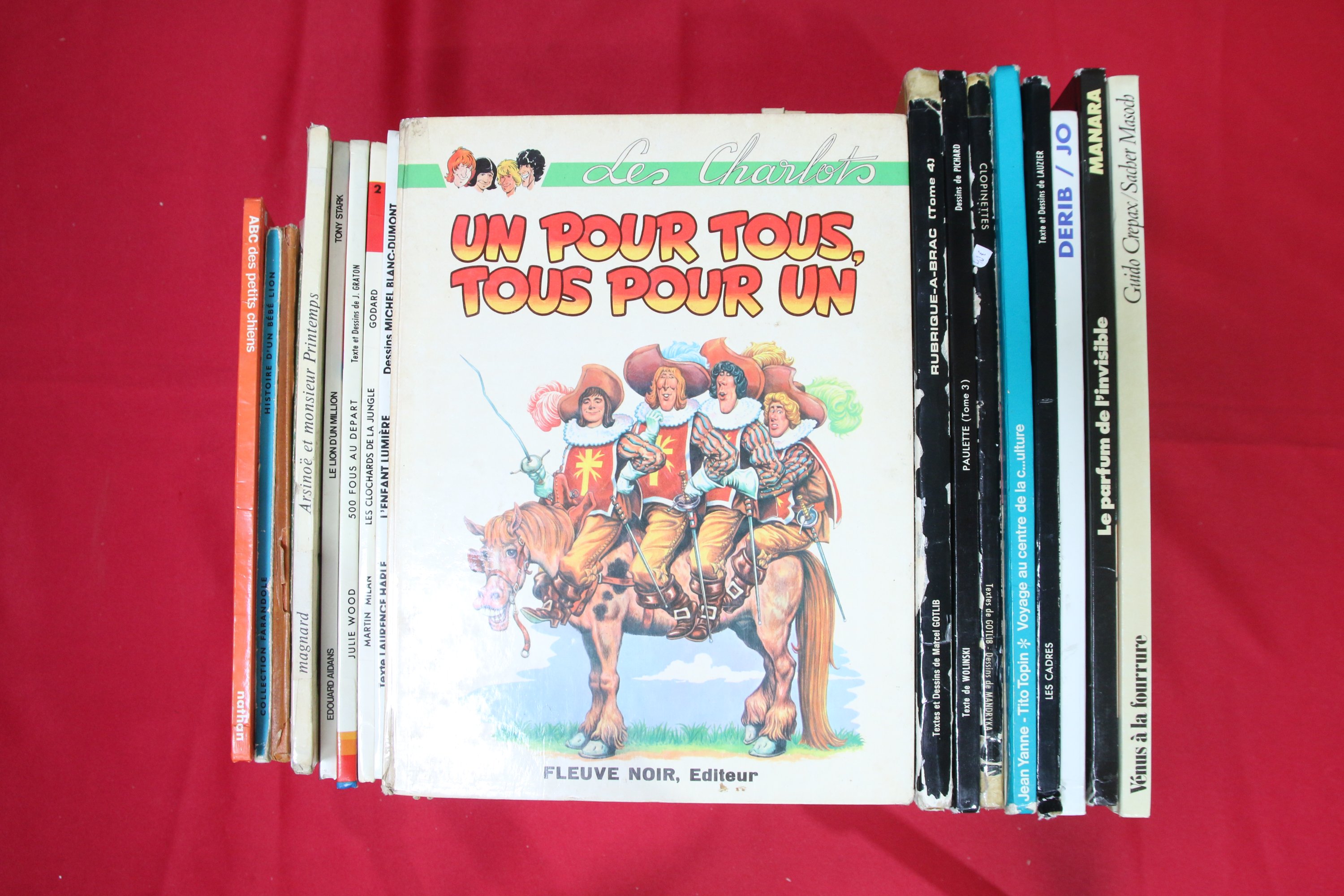 ENSEMBLE d'environ 40 ALBUMS pour enfants et adultes dont LES CHARLOTS, THORGAL, MANARA et autres.