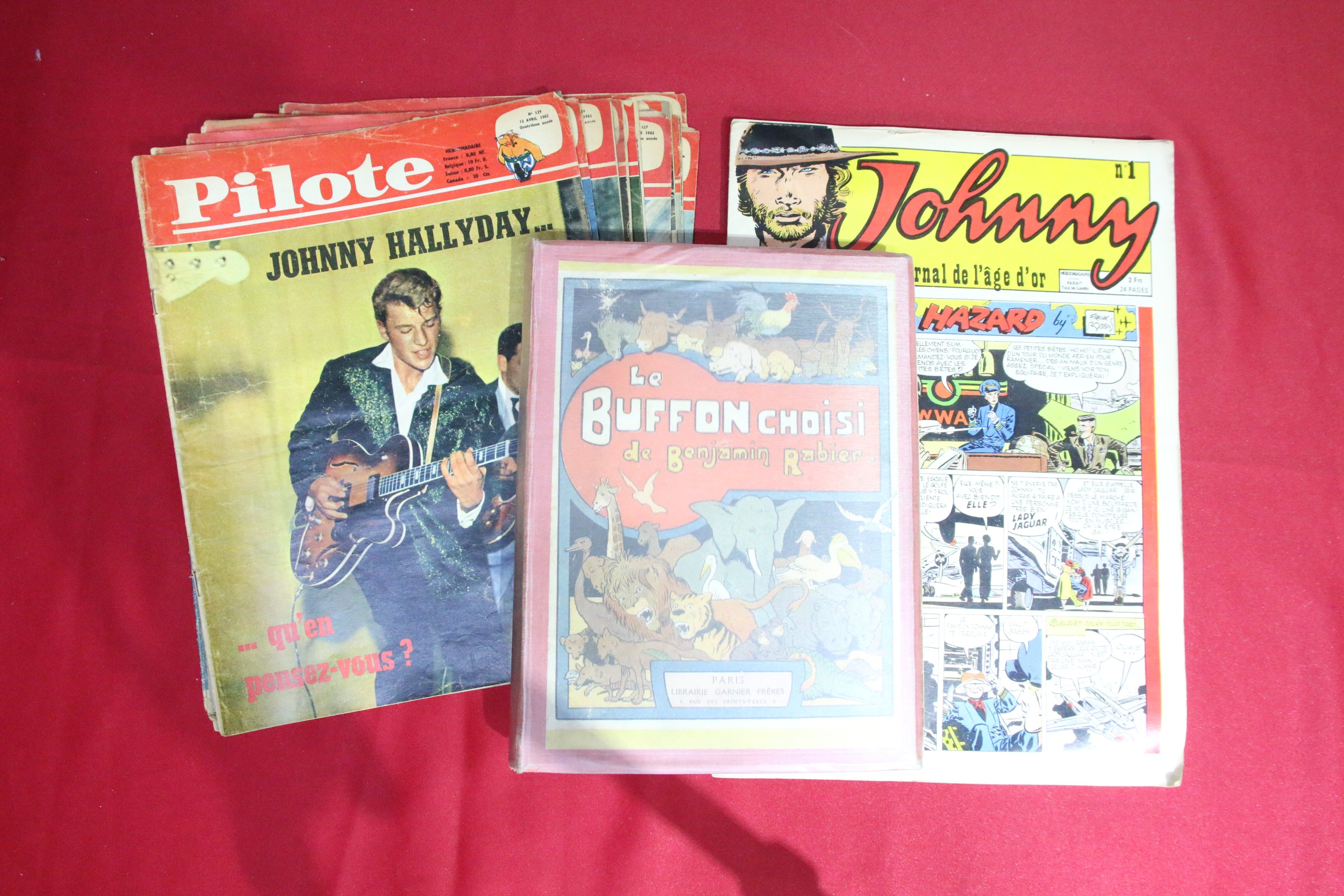 ENSEMBLE d'environ 33 REVUES, ALBUMS et LIVRES dont PILOTE, JOHNNY JOURNAL DE L'ÂGE D'OR, ou "Le buffon choisi" par Benjamin Rabier.