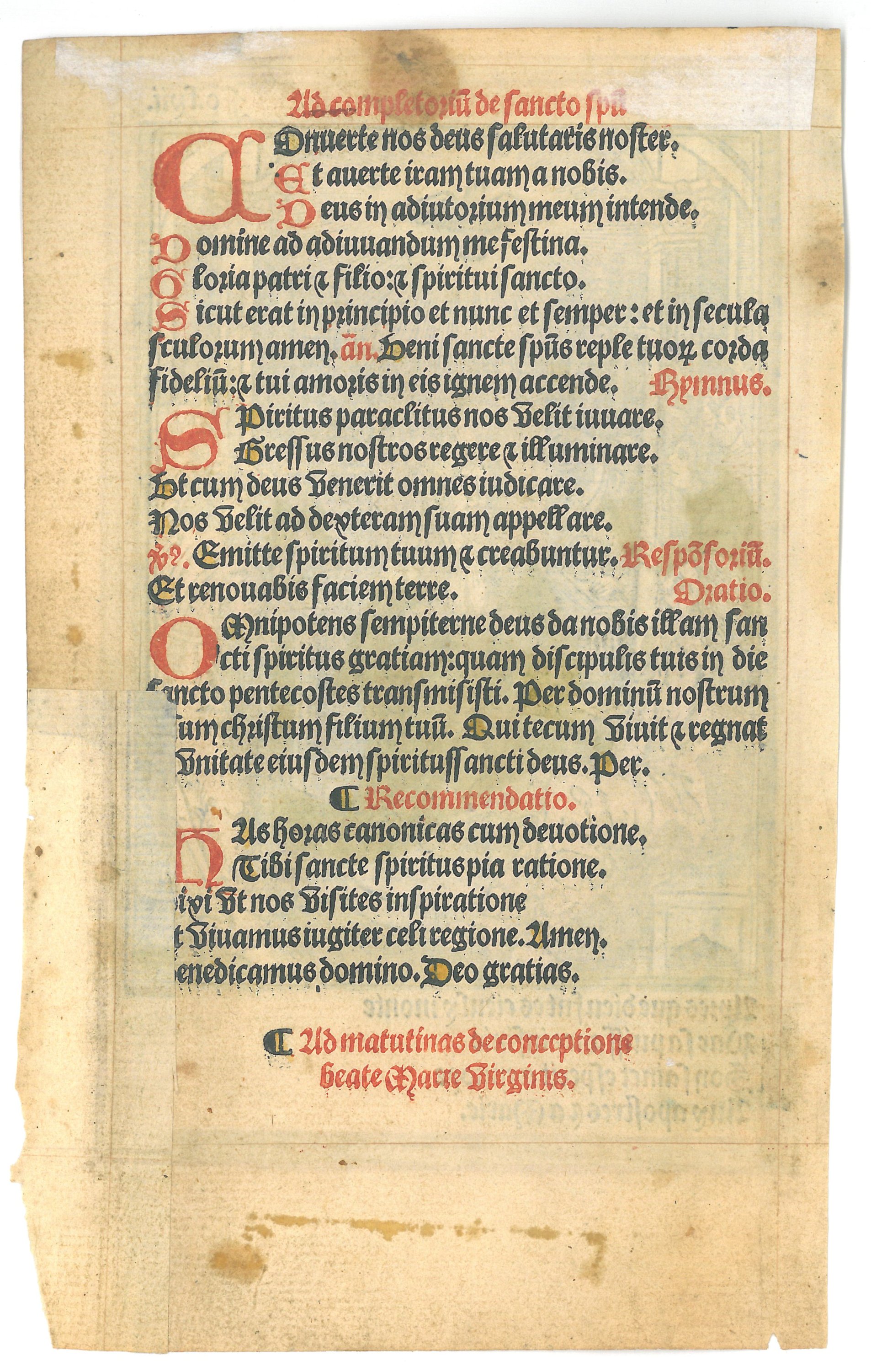 La descente de l'Esprit Saint, peinture extraite d'un livre d'heures imprimé 16éme.