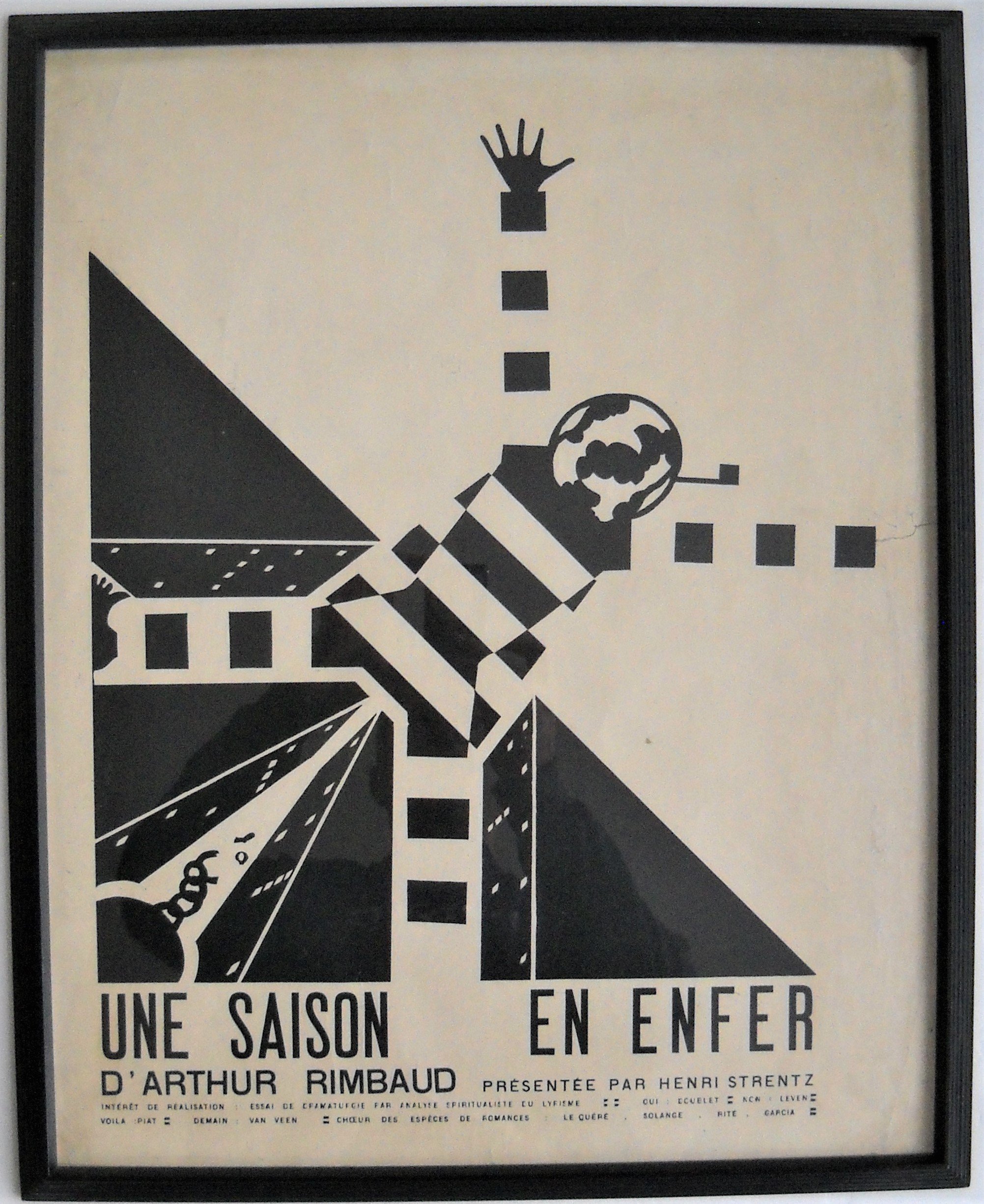 - affiche-programme de la pièce " Une saison en enfer d'Arthur Rimbaud, présentée par Henri Strentz ", bois gravé par Claude AUTANT-LARA, 1928, 55 x 38 cm (petits accdts), sous cadre (60 x 48 cm).