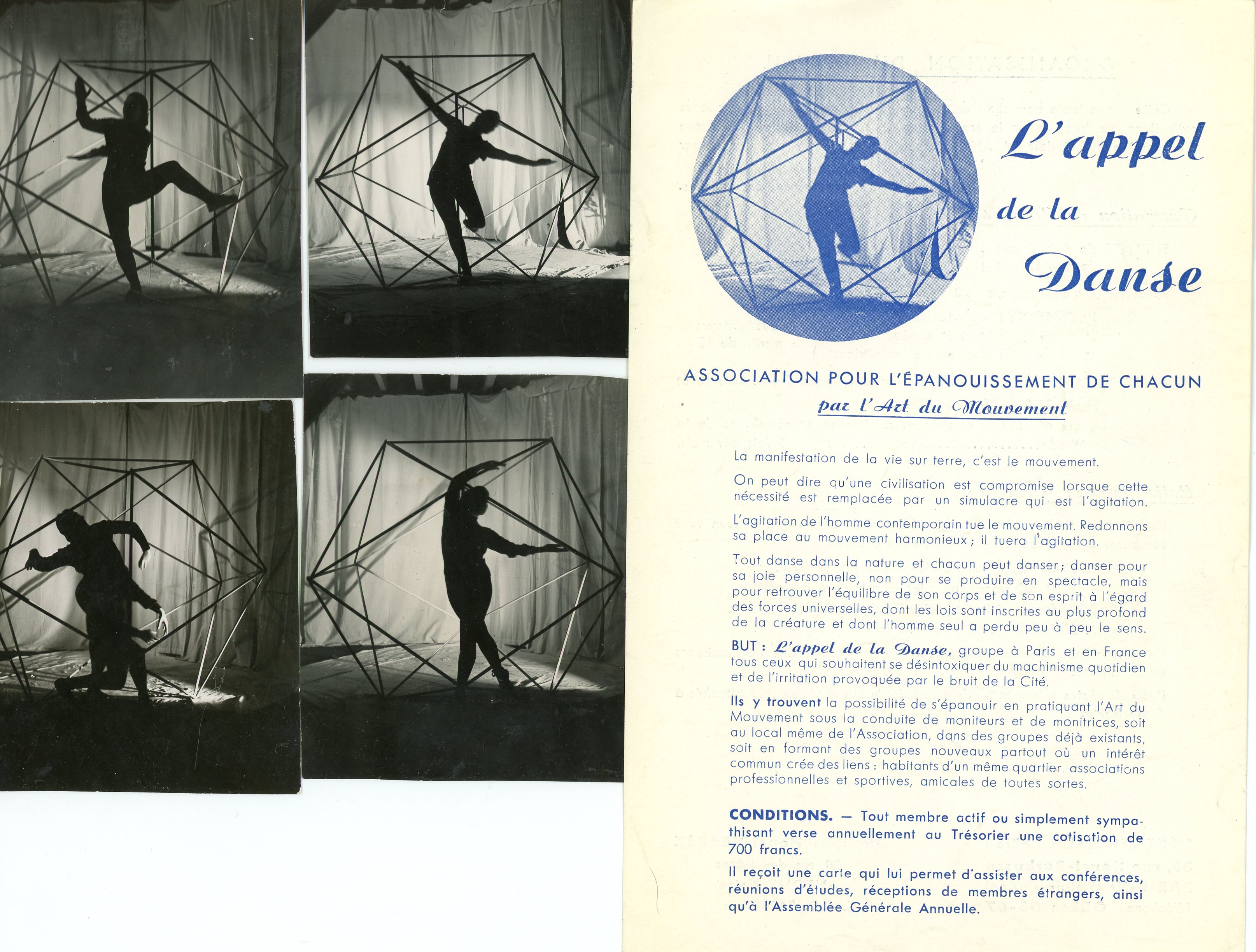 Joint: carte promotionnelle de l'édition du volume Art & Action Laboratoire de Théâtre, 10 x 14 cm. - Marie Louise Van VEEN: affiche, prospectus promotionnels et 4 clichés photographiques 8 x 7 cm relatifs à son activité de danseuse.