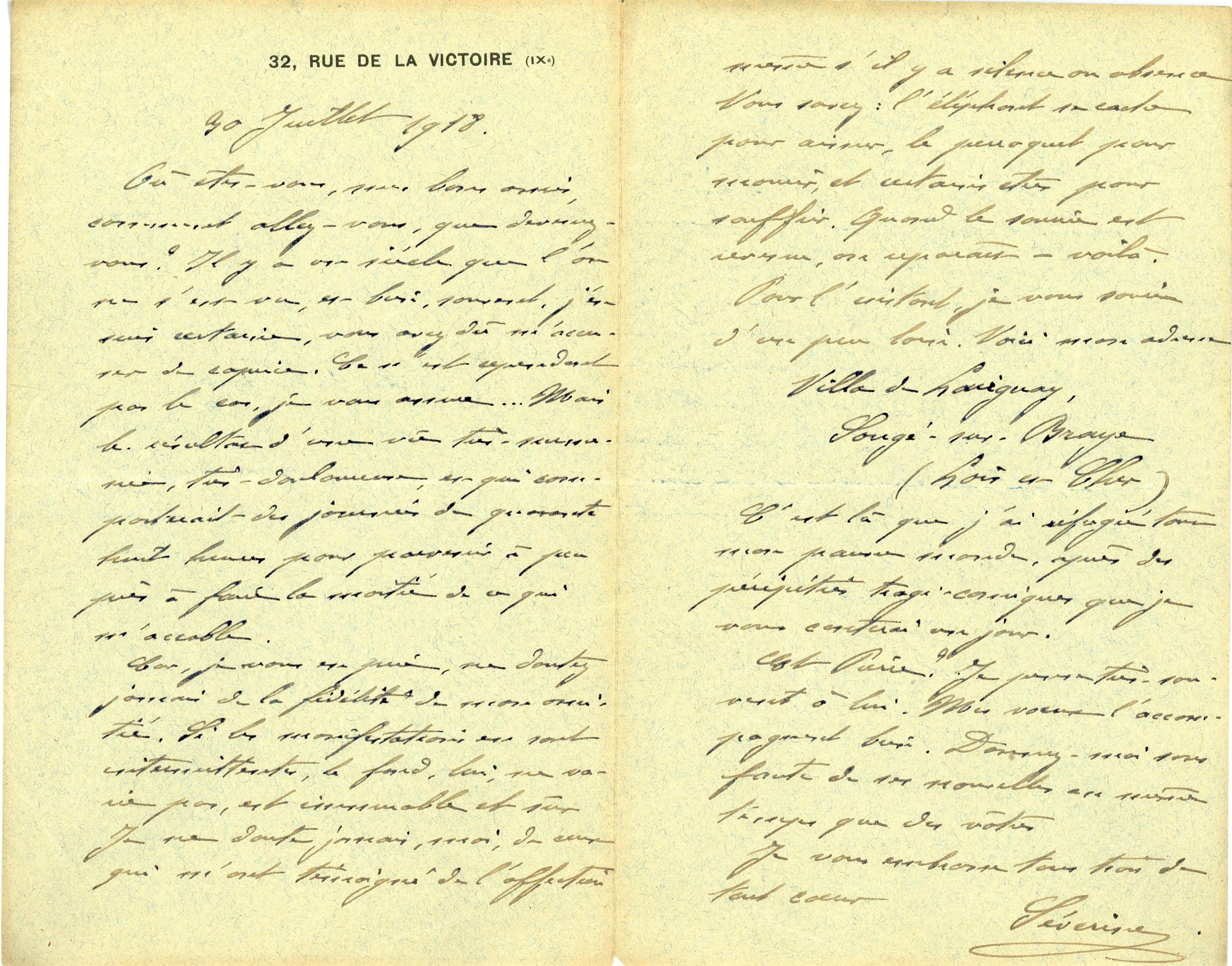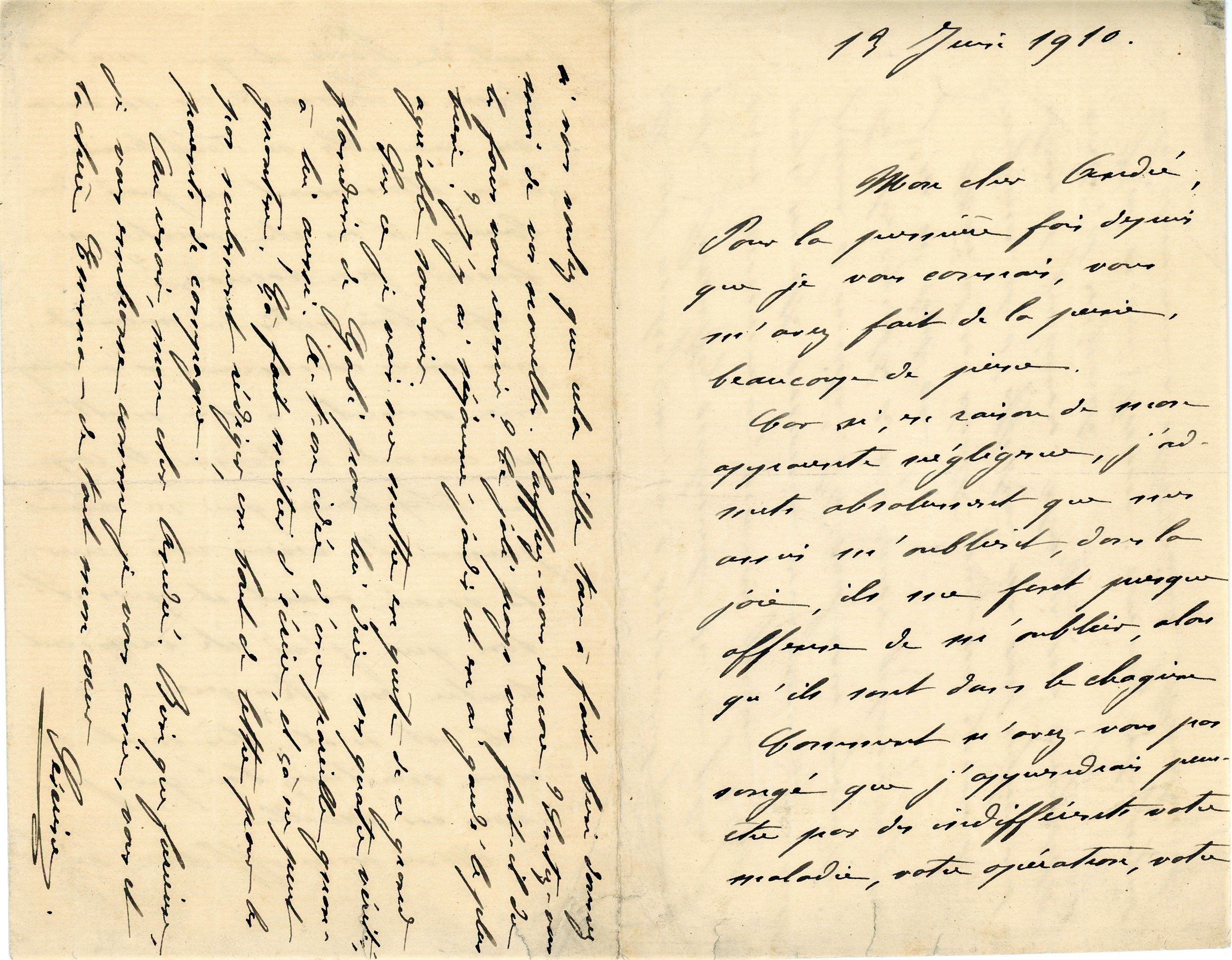 Lot de 15 L.A.S., 2 P.A.S. et carte de visite, 1904-1927 ; correspondance adressée à André et à son fils Pierre Taponier, photographes, passant commande de tirages photographiques, proposant des invitations à déjeuner, ou écrivant de son exil en province en 1918