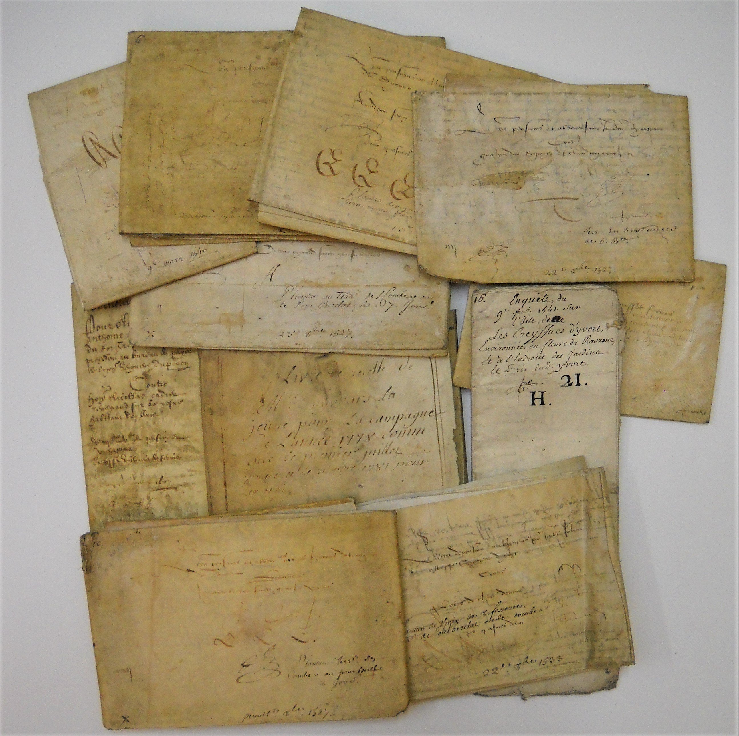 [Bugey et Lyonnais] Lot d'actes notariés, procédures judiciaires, correspondances, divers documents papiers et parchemins, XVIe au XVIIIe siècle. Concernent les familles Buynand, Curtet, Leclerc et les paroisses de Saint-Rambert, Ambérieu, Montferrand, Oullins, Bourg-en-Bresse, Chambéry, etc. Dont testament d'un échevin de Lyon (1694), " livre de recettes de Mde d'Yvours " (ventes de 1782 à 1799), etc.