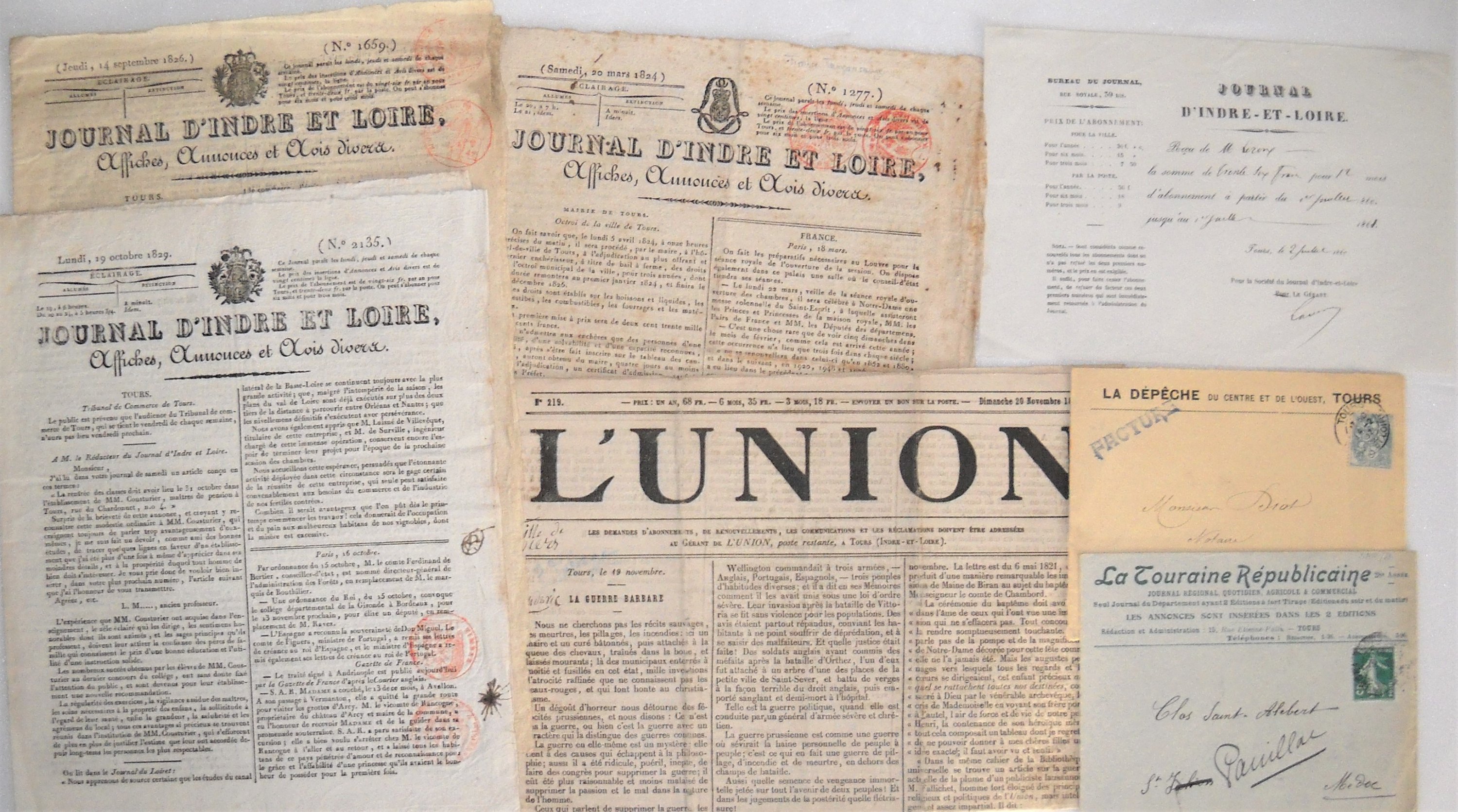 Joint: 10 pièces dont 6 exemplaires du " Journal politique et littéraire d'Indre-et-Loire ", XIXe siècle.