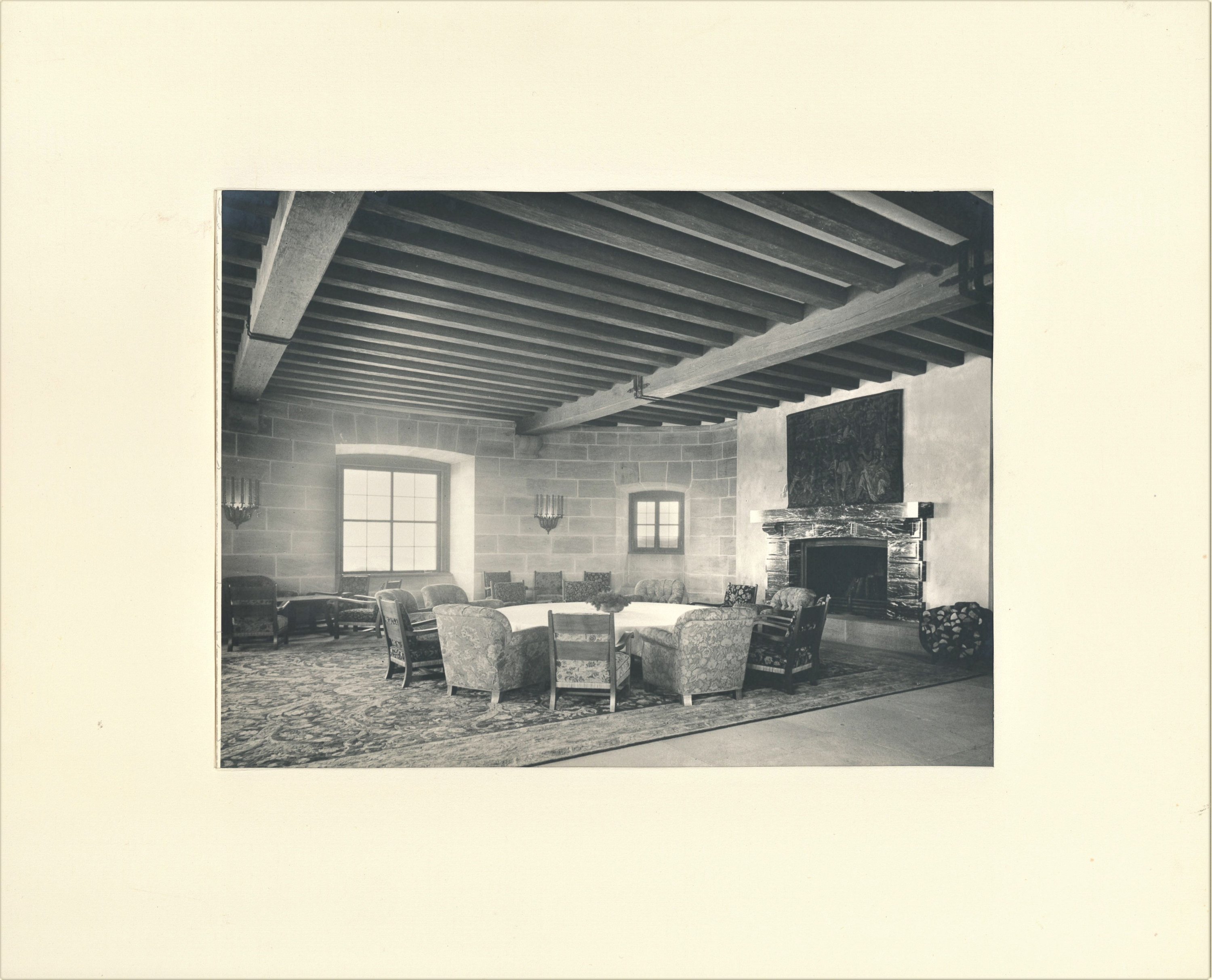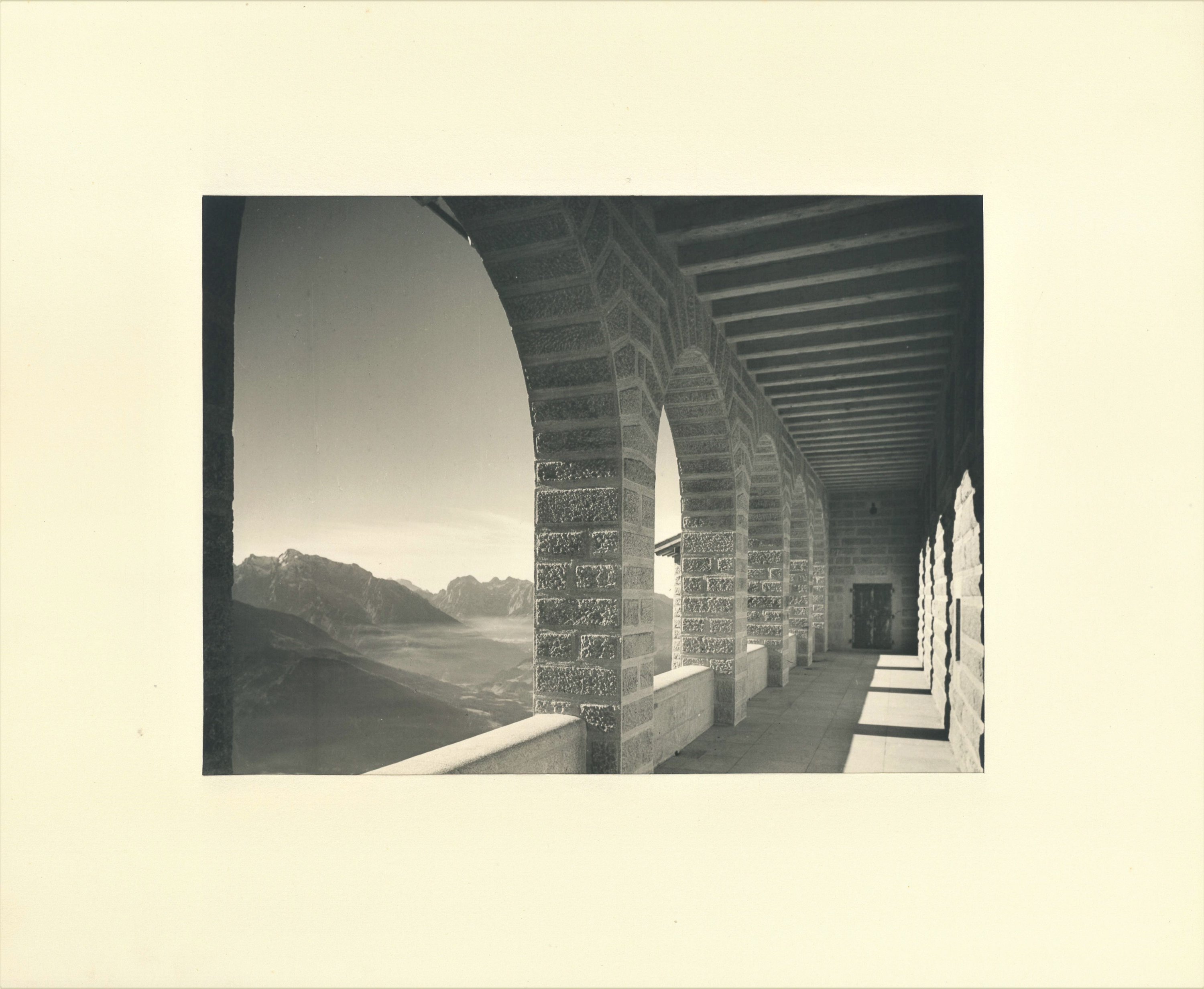 Réunion de 30 photographies, en noir et blanc, 17 x 33 cm, contrecollées sur papier fort (30 x 37 cm), chacune étant numérotée au verso, c. 1938-1939. Conservées dans un coffret gainé rouge, à décor central sur le plat supérieur de l'aigle doré, 32 x 39 cm (accdts, en l'état).