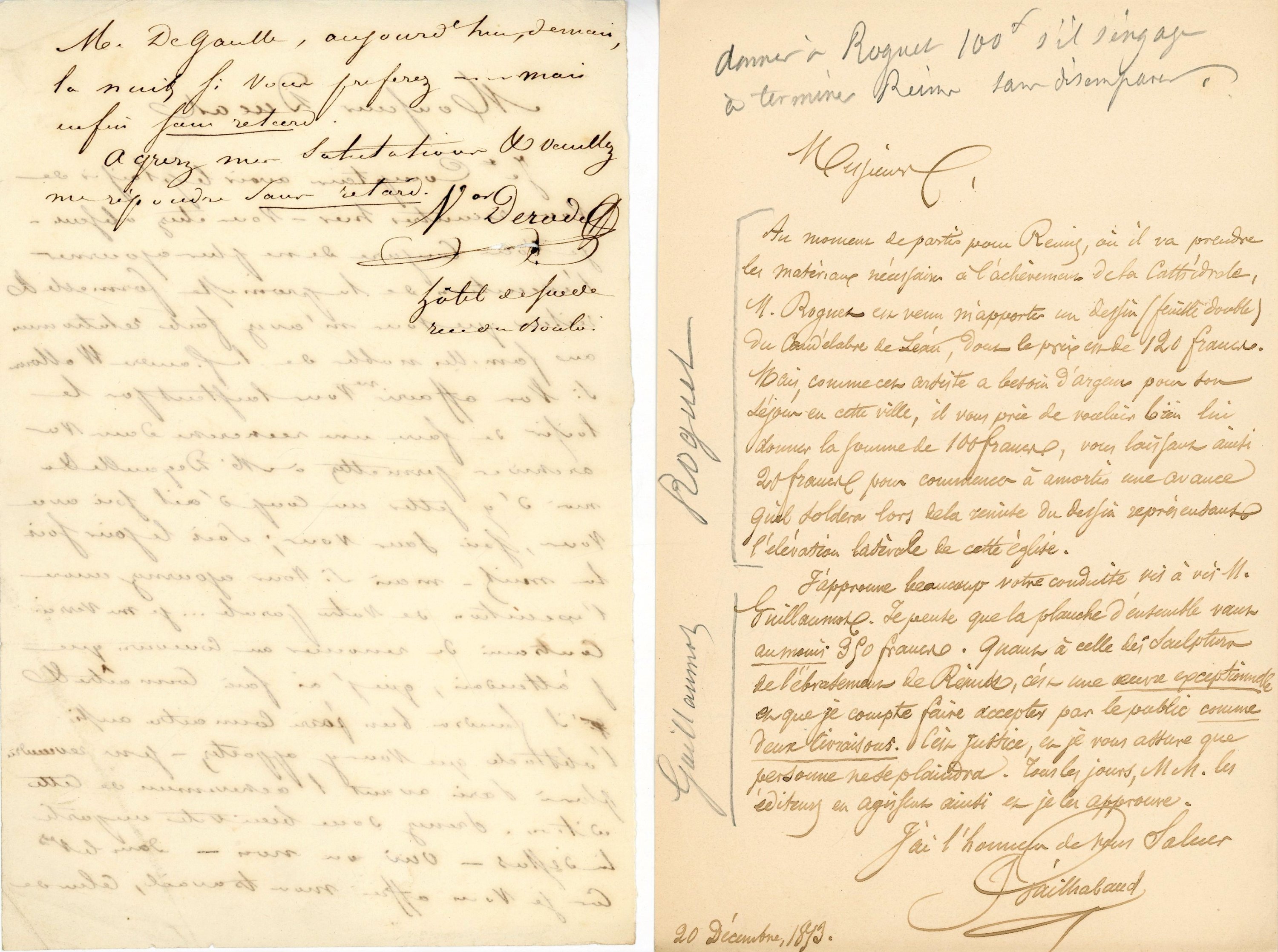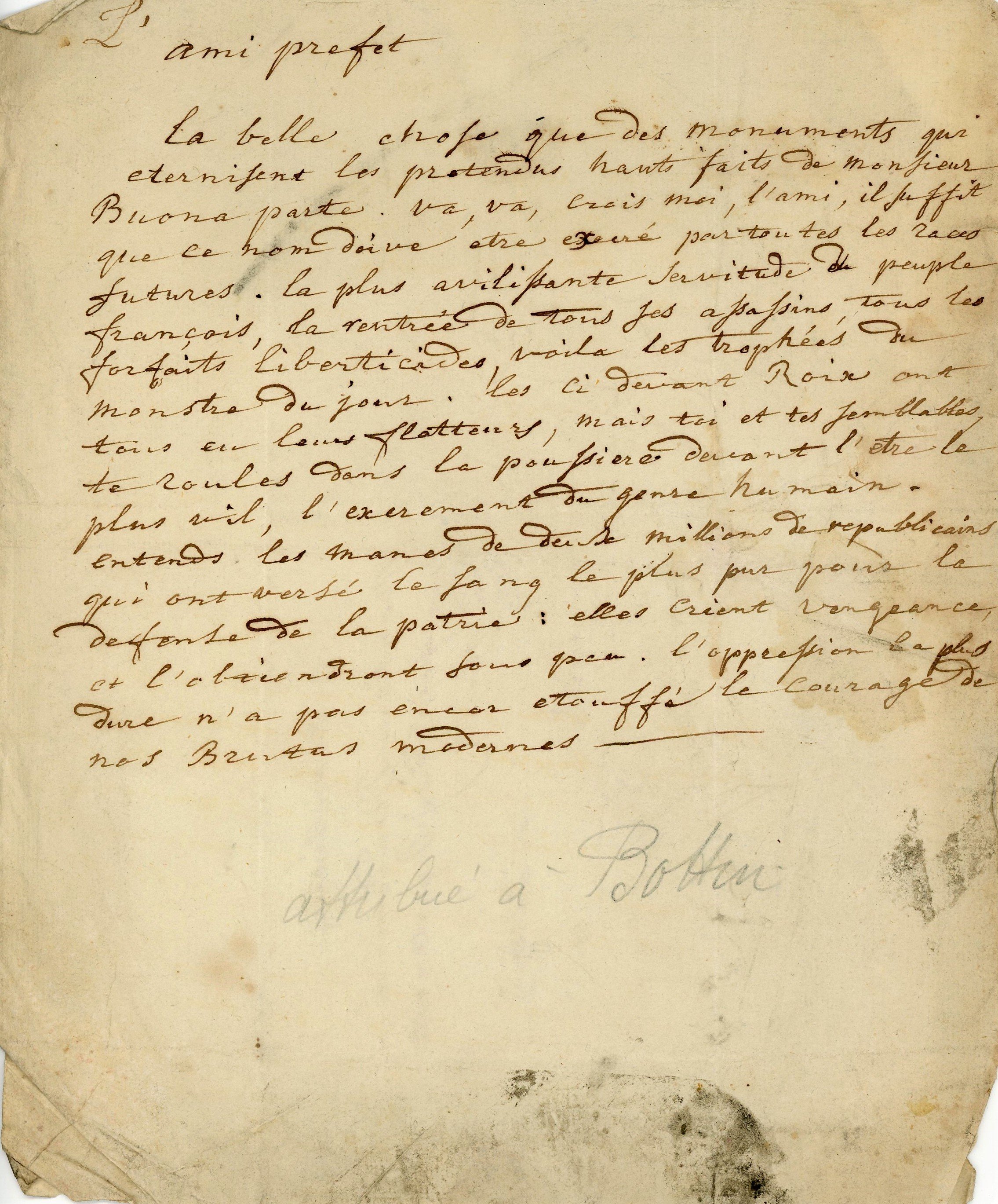Lot d'env. 40 pièces dont: 8 L.A.S., 1853-1858, Jules GAILHABAUD (1810-1888), homme de lettres et historien d'art lillois, adressées à son éditeur -4 L.A.S. Victor DERODE (1797-1867), historien - 6 L.A.S., 1797-1817, Pascal François Joseph GOSSELIN (Lille 1751-1830), géographe et bibliothécaire, dont L.A.S adressée au directeur général de l'imprimerie impériale - Brouillon de L.A. inachevée, Augsbourg, 2 juin 1800, Claude-Jacques LECOURBE (1759-1815) ...