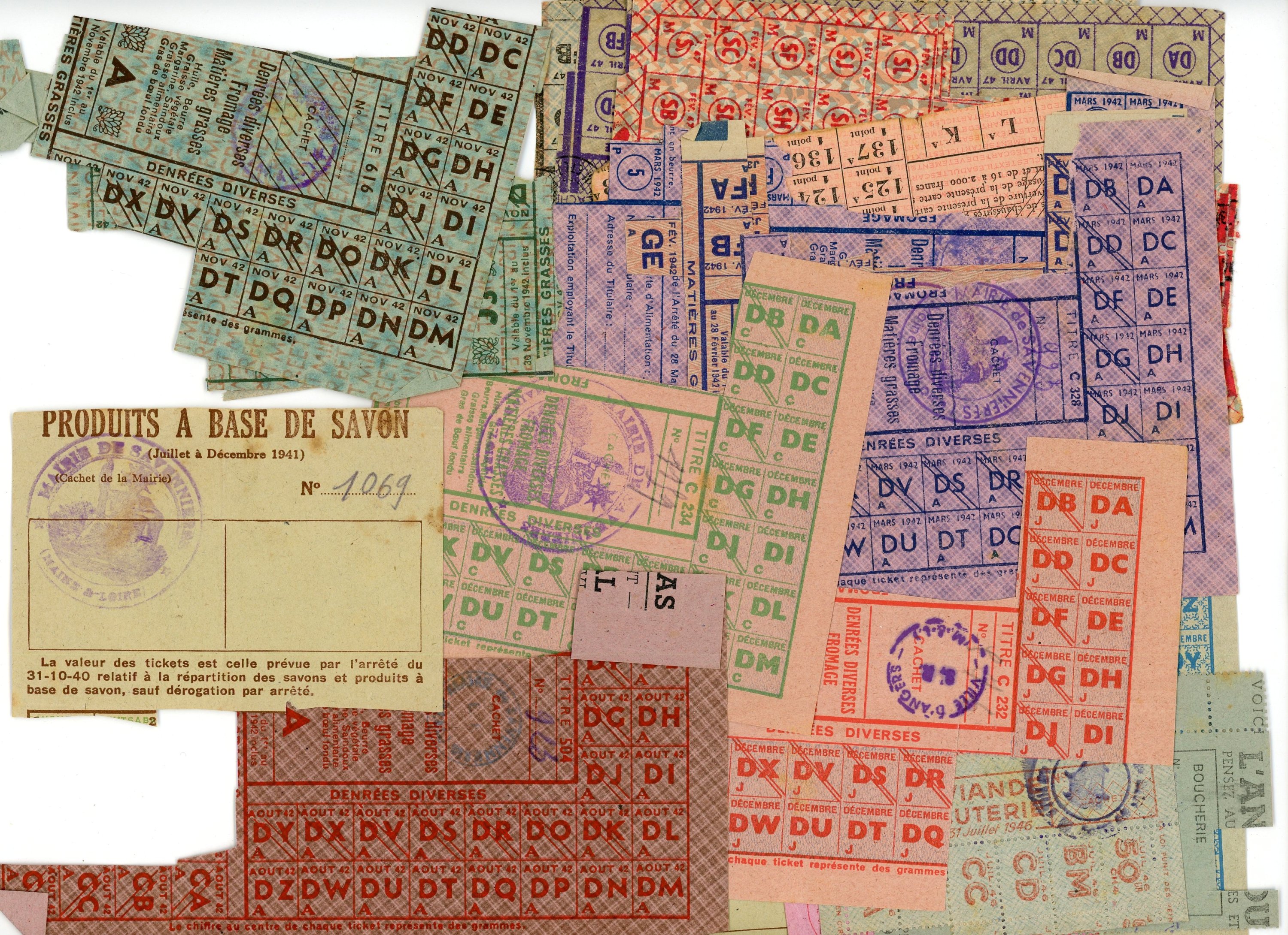 Lot de cartes de rationnements et de textile, et de tickets de ravitaillement, 1942-1947 ;