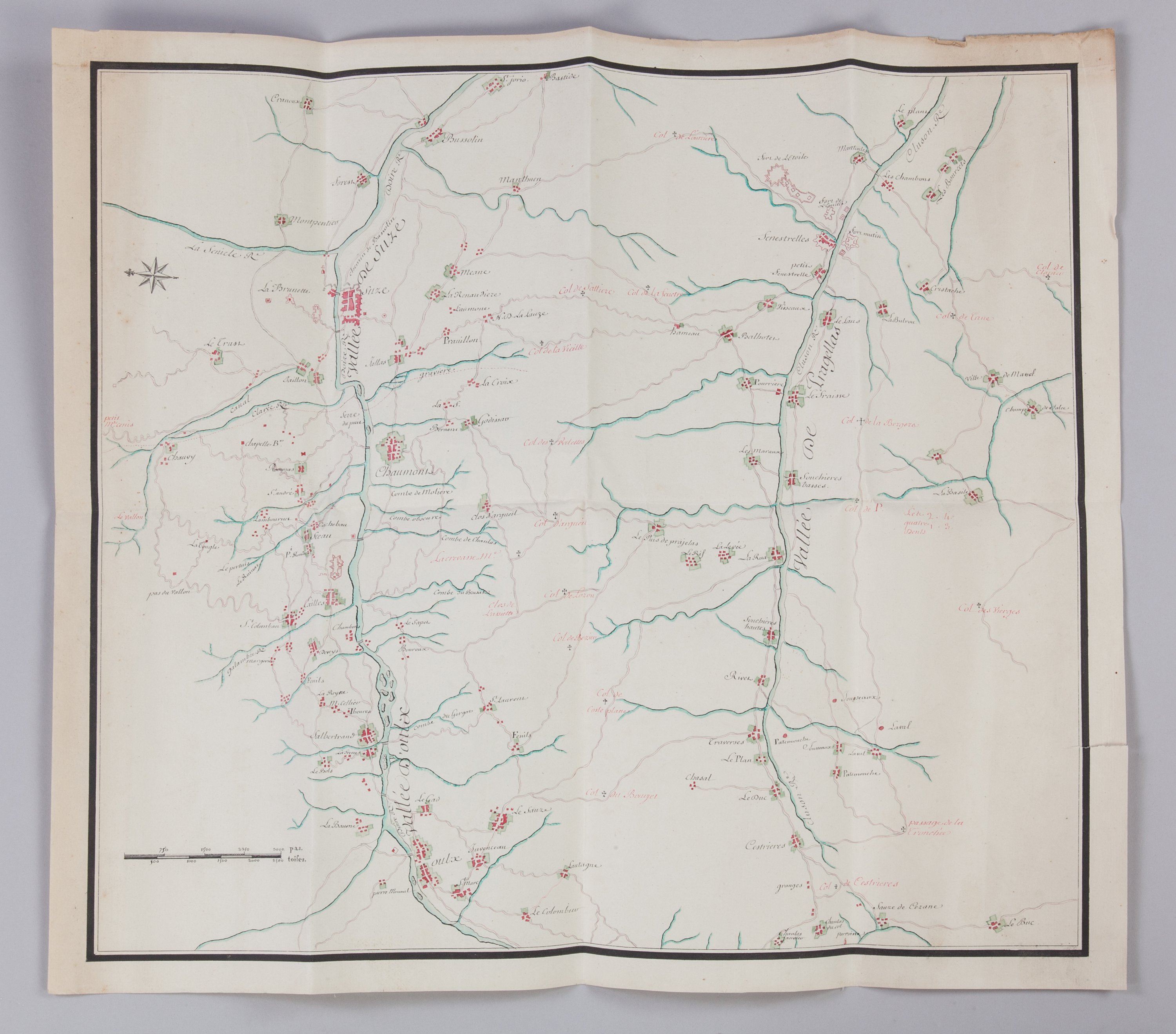 A manuscript PLAN of the SUZE VALLEY from the vicomte de Rochabeau collection.