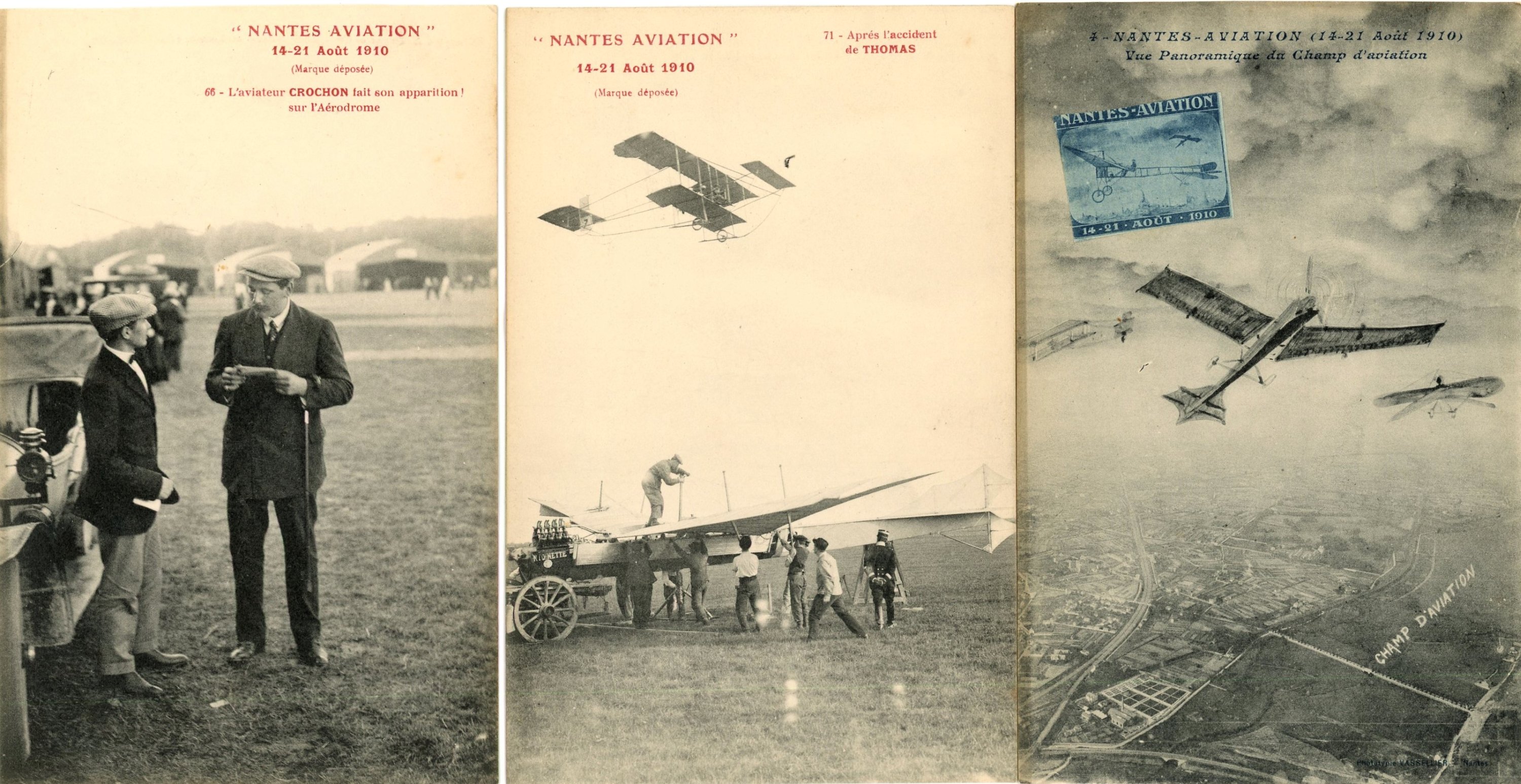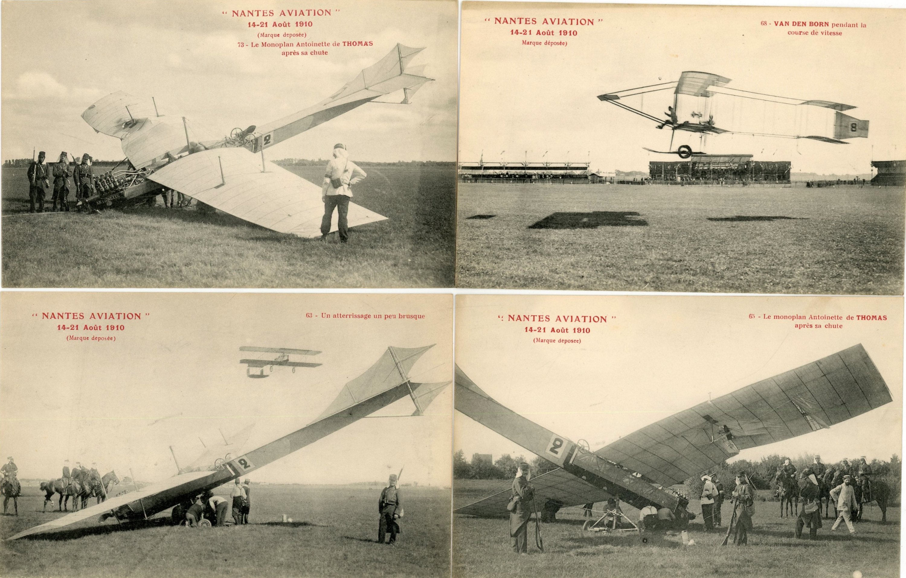 [Loire-Atlantique] Nantes. 28 cartes postales anciennes du meeting d'aviation des 14-21 août 1910, certaines avec vignettes, en majorité non circulées, TTB.