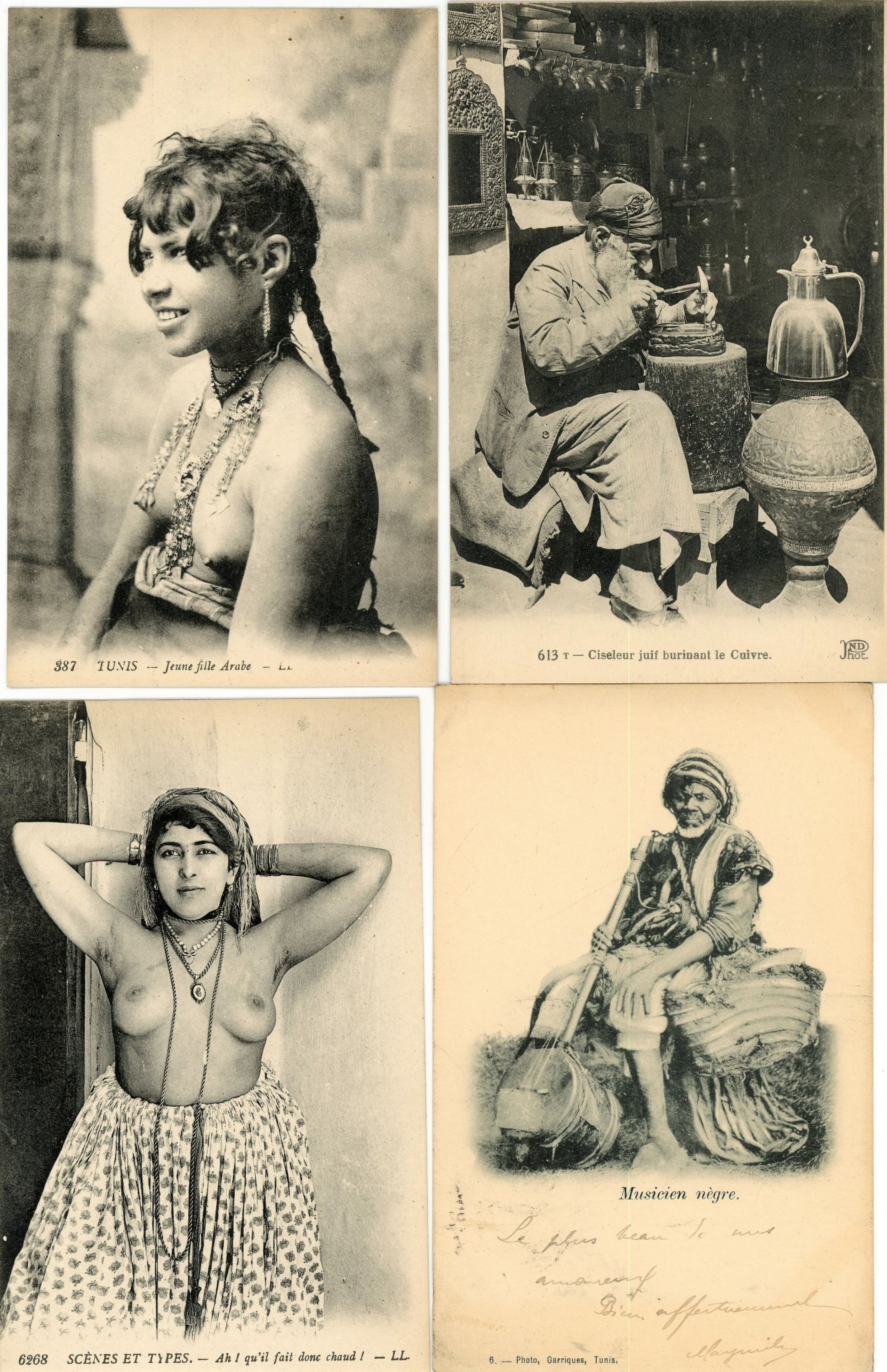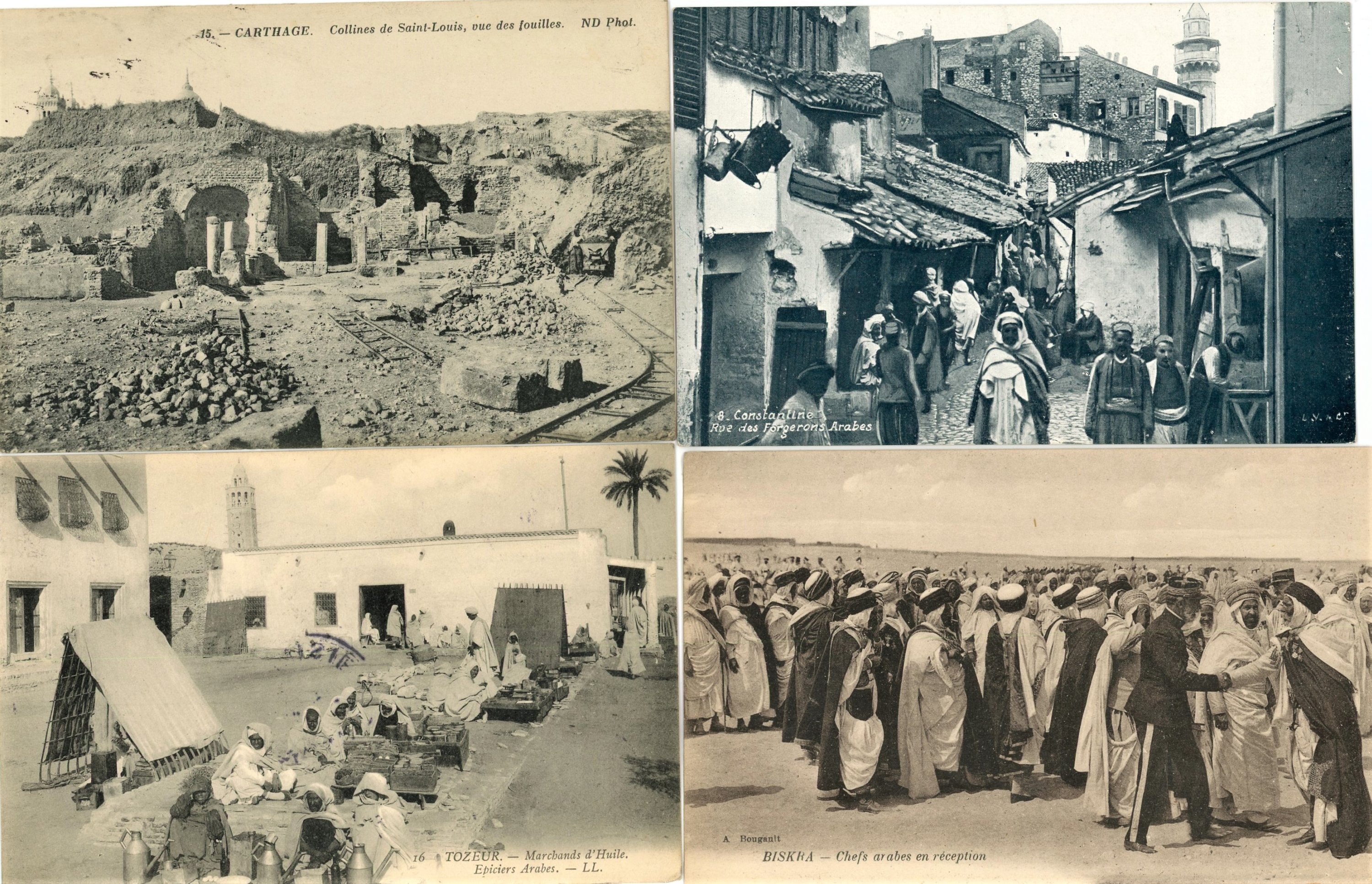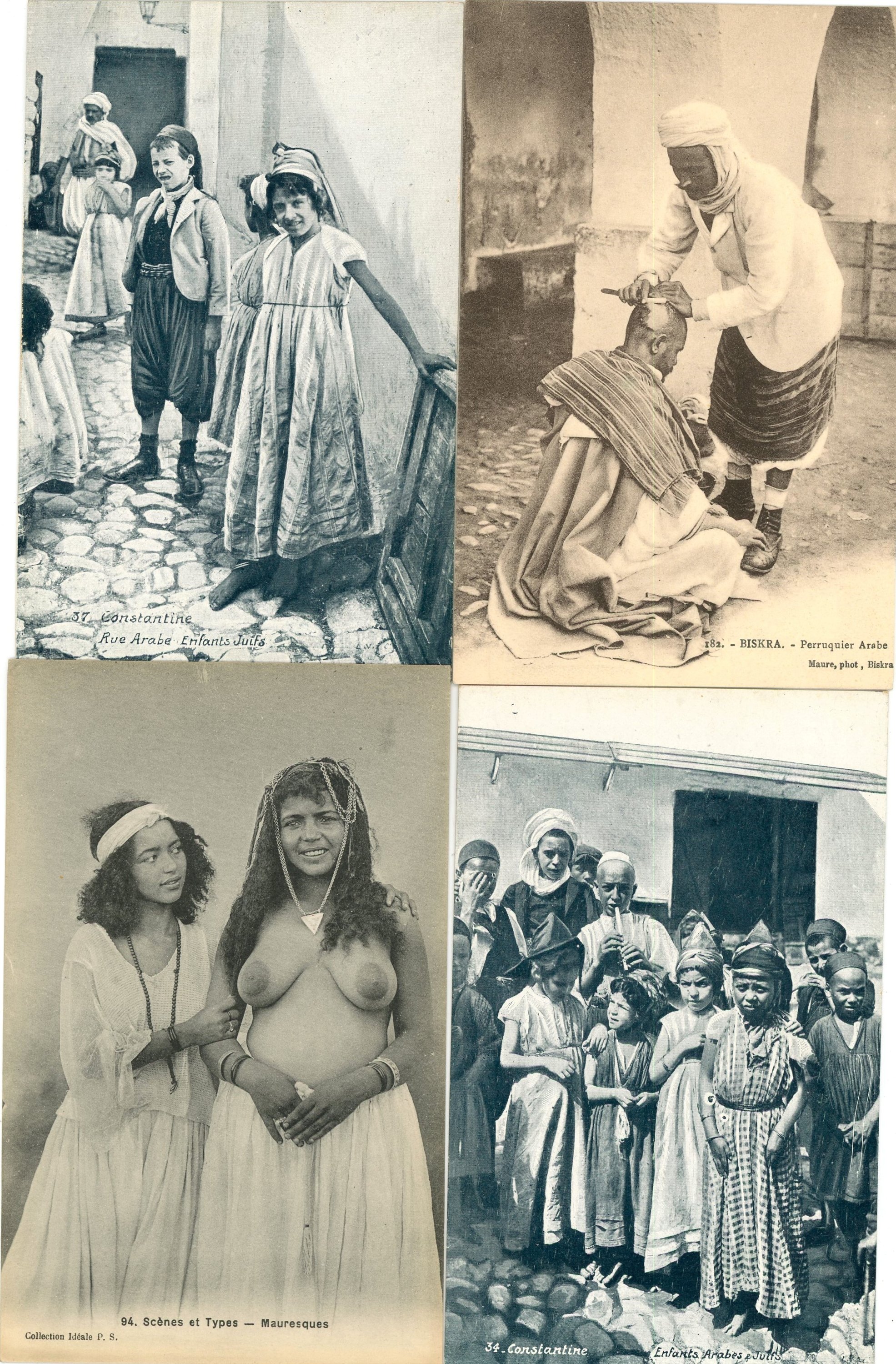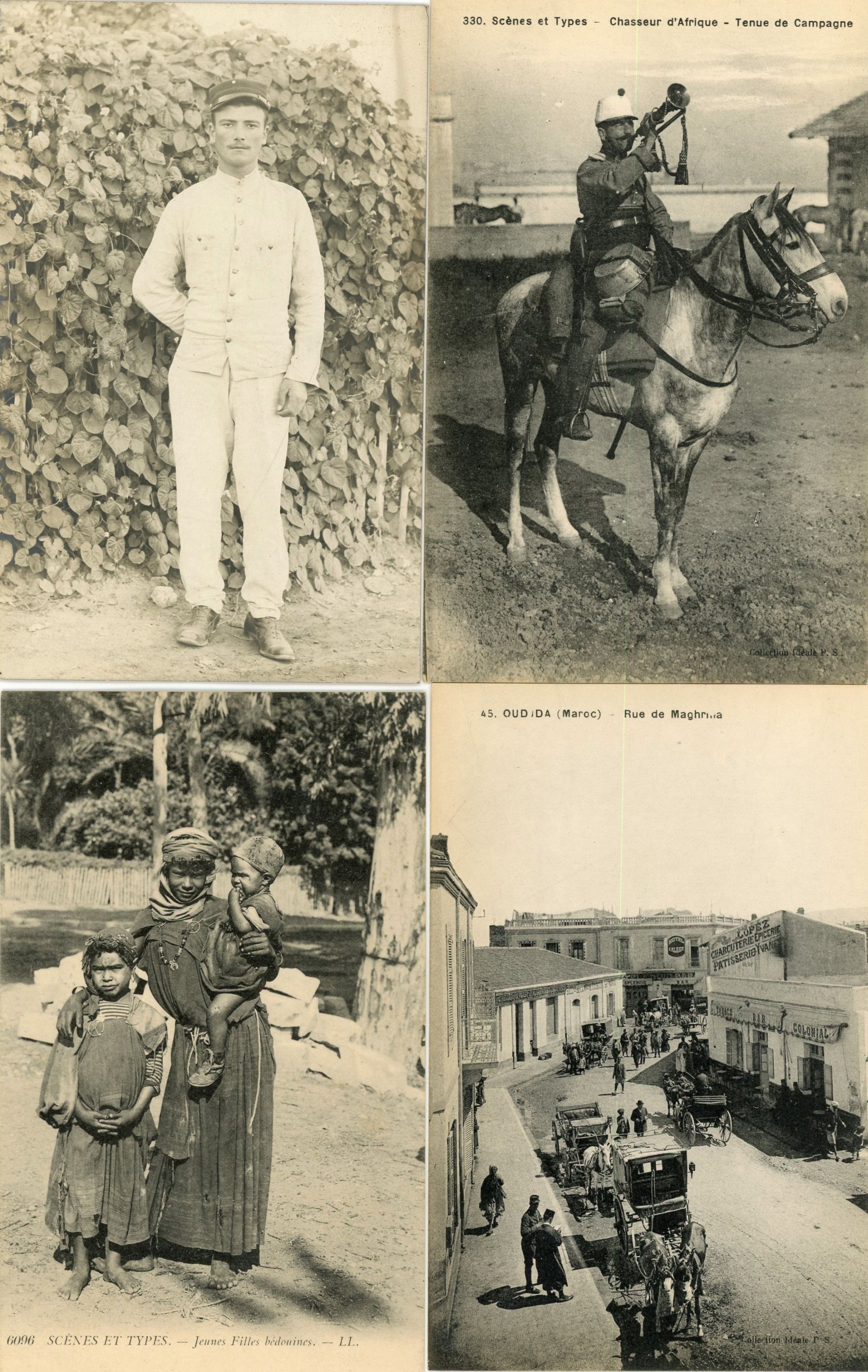 [Etranger] Afrique du Nord, env. 435 cartes postales anciennes et cpsm. Algérie, Tunisie et Maroc: villes, villages, animations, sites, musées et scènes et types (90 cp), dont carte photo de la cantinière militaire du camp d'Oudjda en janvier 1916.
