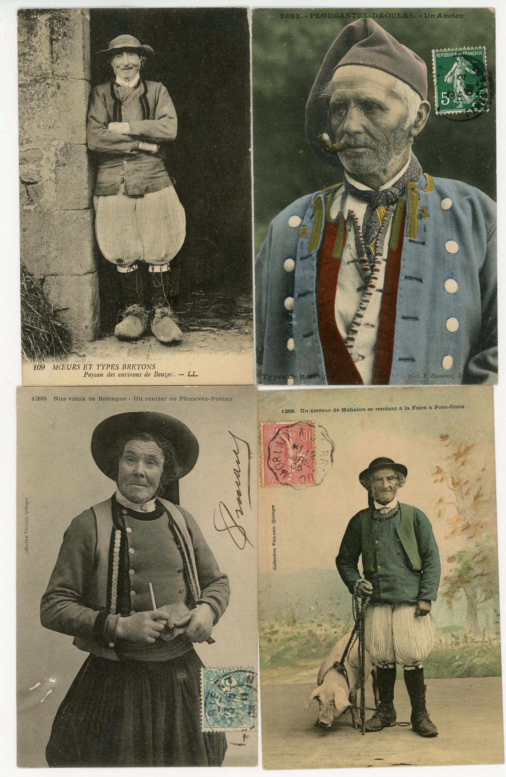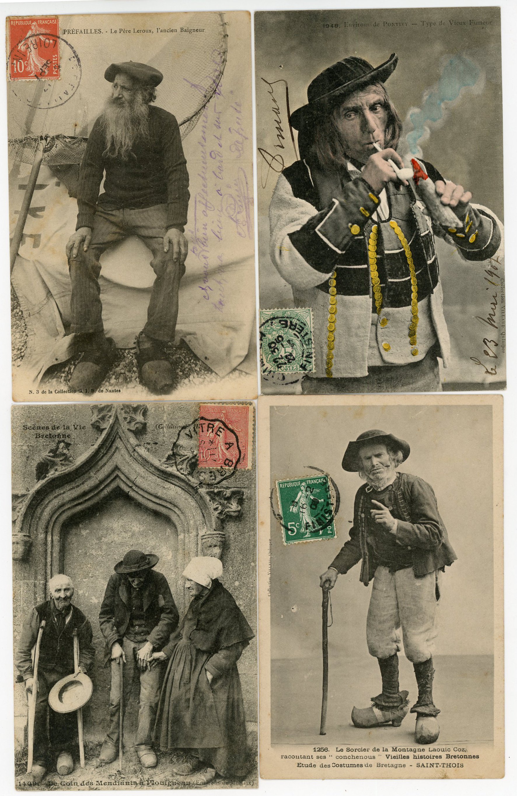 [BRETAGNE] env. 170 cartes postales anciennes et qqs cpsm, principalement scènes et types [env. 70 cp], et villes, qqs villages, ports, plages, animations, etc.