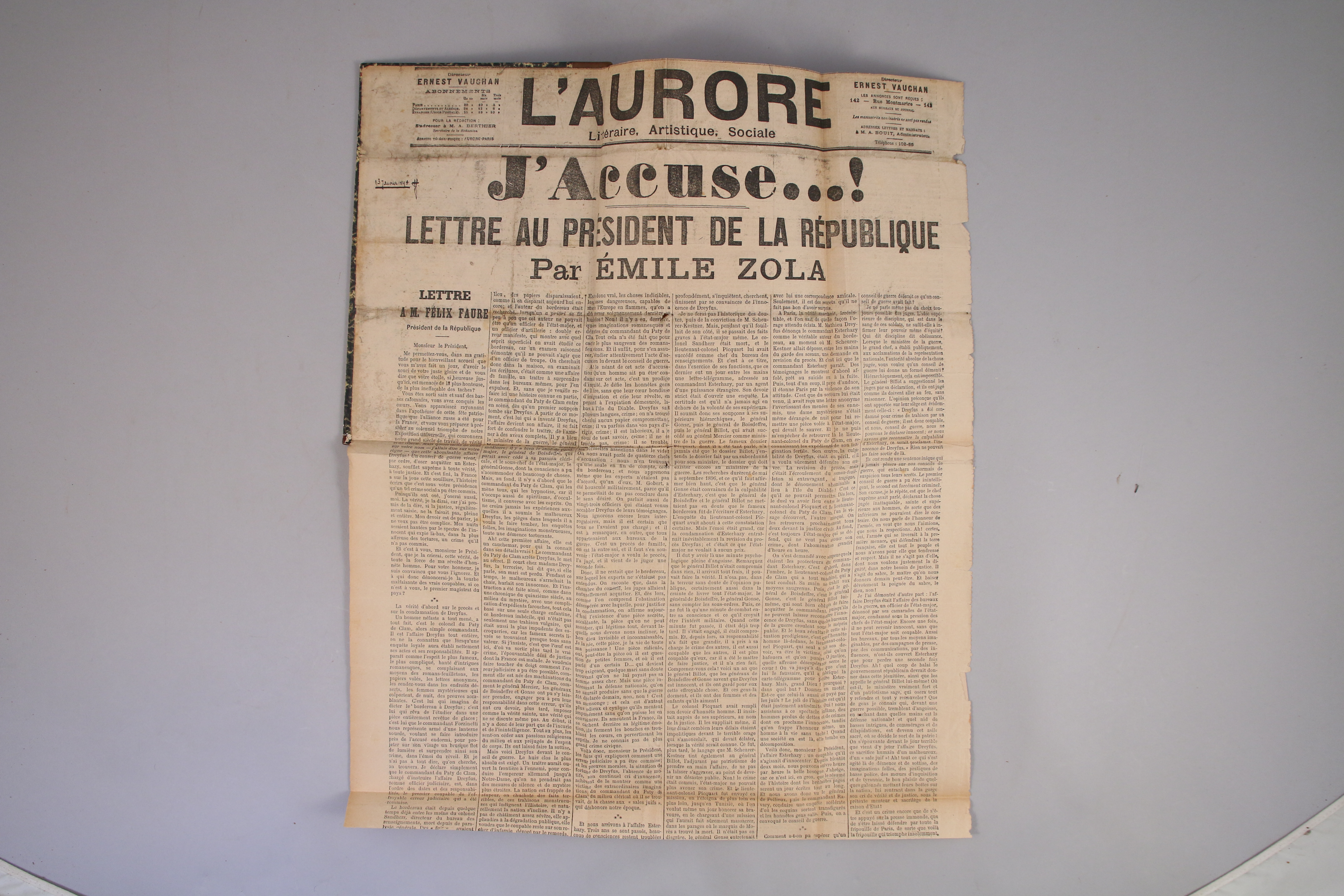 Haut. 56, Larg 46 cm pour la une de l'Aurore (pliures et petits accidents).