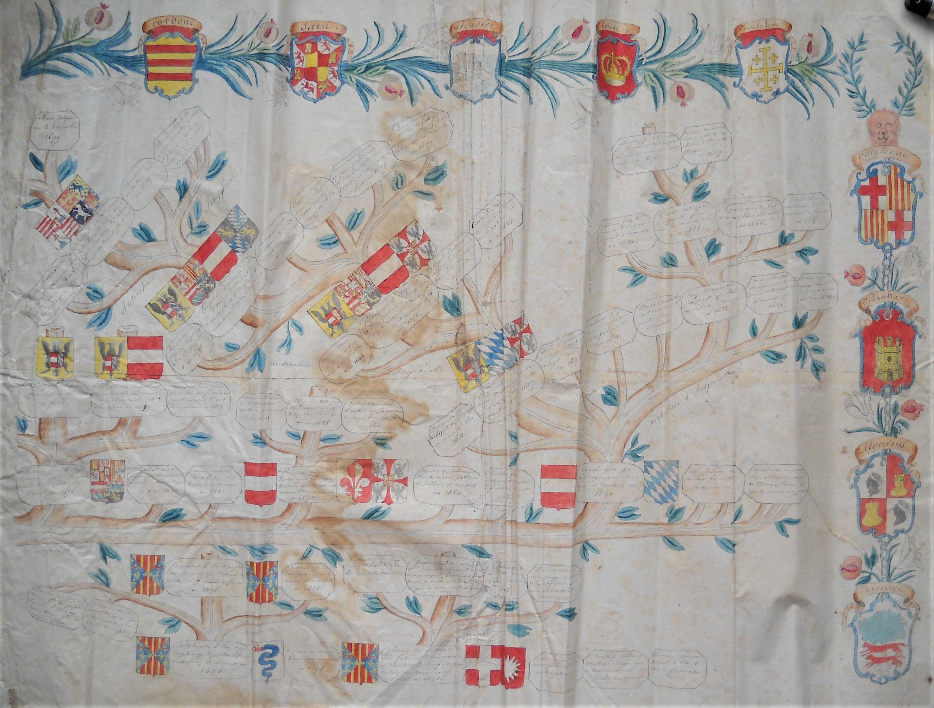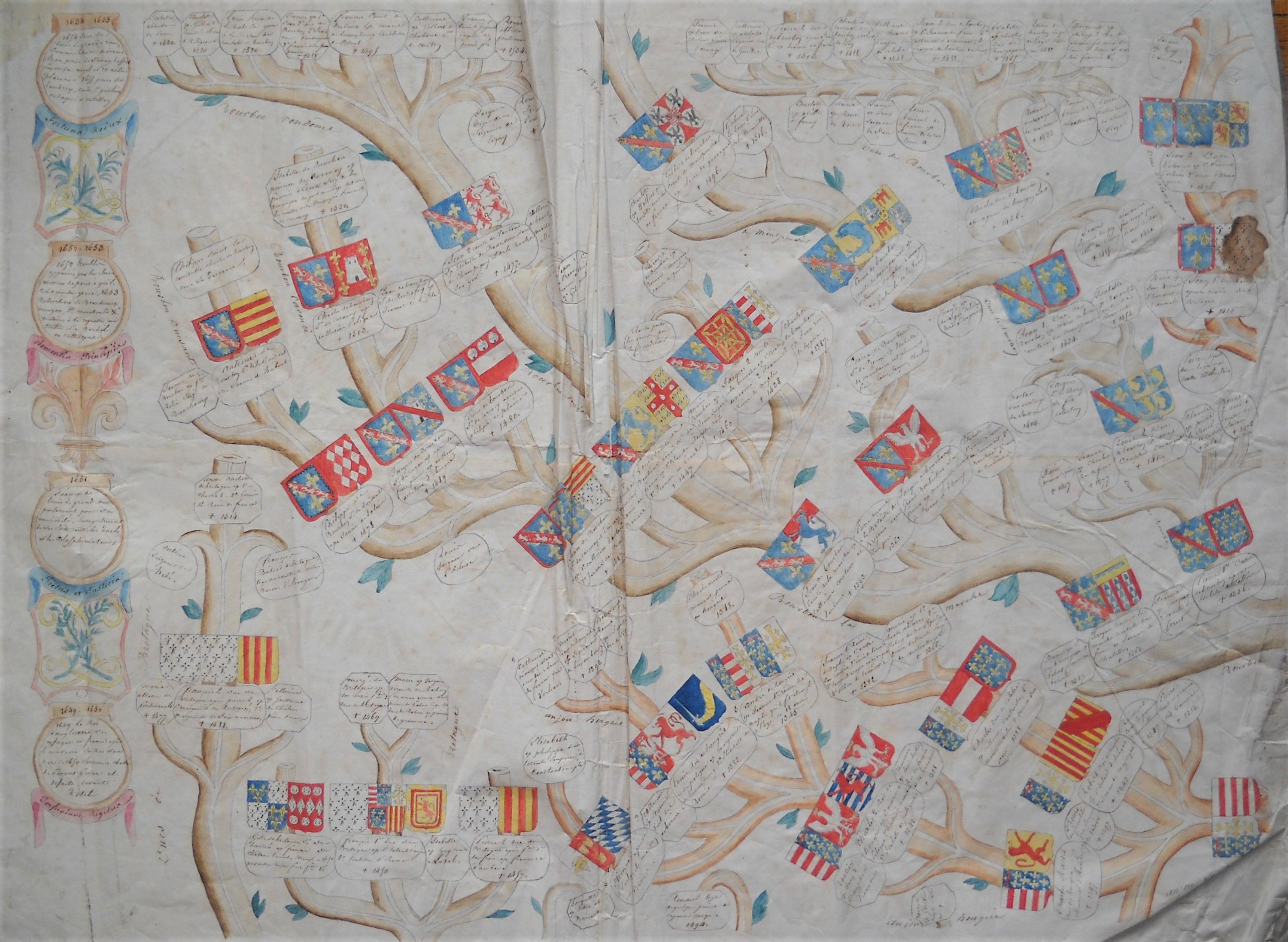3 planches d'arbres généalogiques, XVIIIe siècle