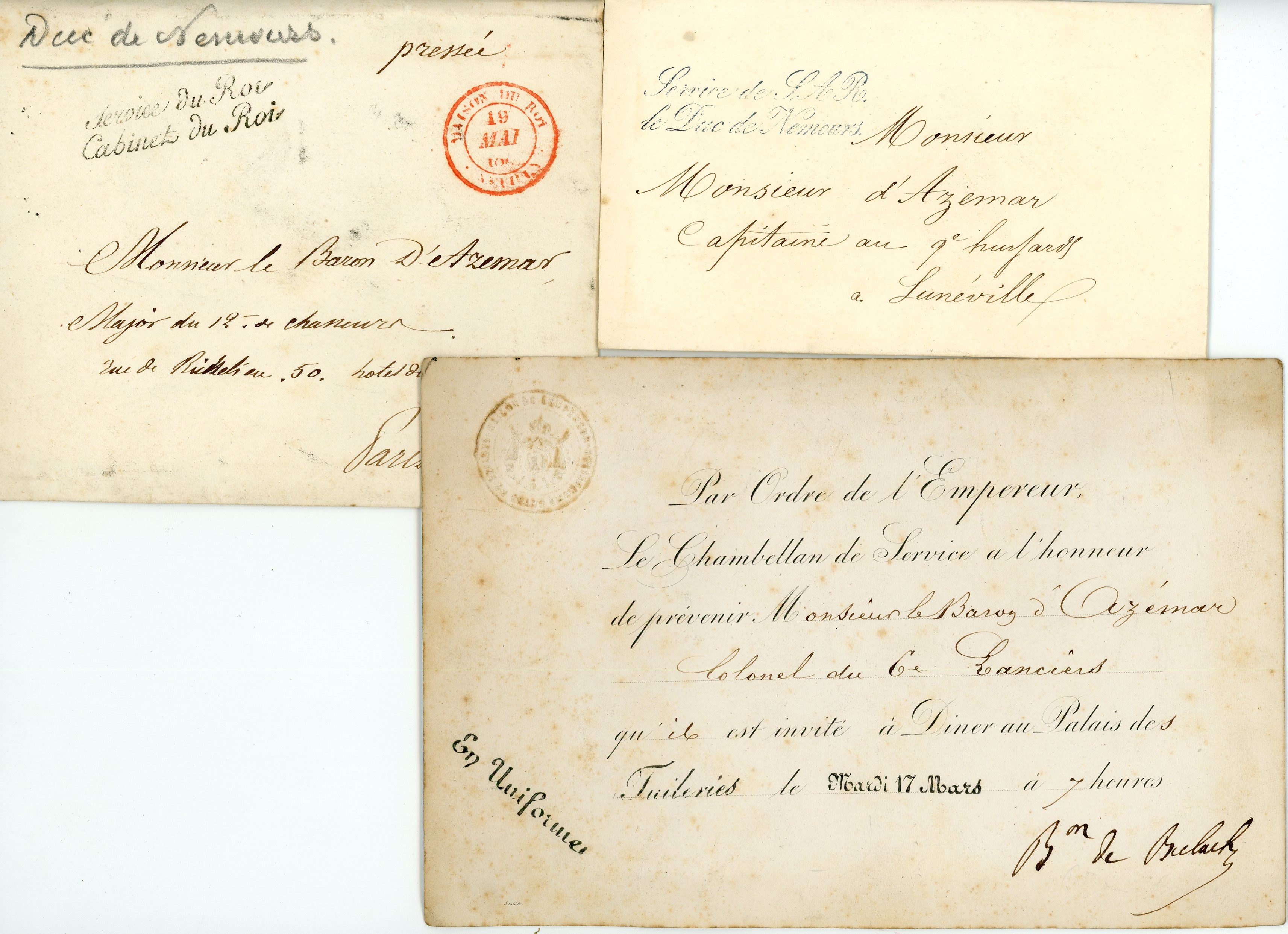 ![Lot 241 - [Militaria]Léopold baron d'AZÉMAR (1804-1888), général de brigade.Lot de + de... [Militaria]Léopold baron d'AZÉMAR (1804-1888), général de brigade.Lot de + de...](<150:ddoc-916371-7c304aedee5c26d18e8828bab7e7b5fb-241_3.jpg, <480:ddoc-916372-3ad3d258e2f5f07083e8e72bfdee719b-241_3.jpg, <640:ddoc-916373-2f30ca11d46e0210fdba87cd8567f7a9-241_3.jpg, <900:ddoc-916374-dfa6cc2dac807c7f7bc625da06530279-241_3.jpg, <1200:ddoc-916375-caedd122289874853f3c542b5ac1b6a2-241_3.jpg, >1200:ddoc-916370-e5767ddb32cf5f74bc94d3d99711b142-241_3.jpg)