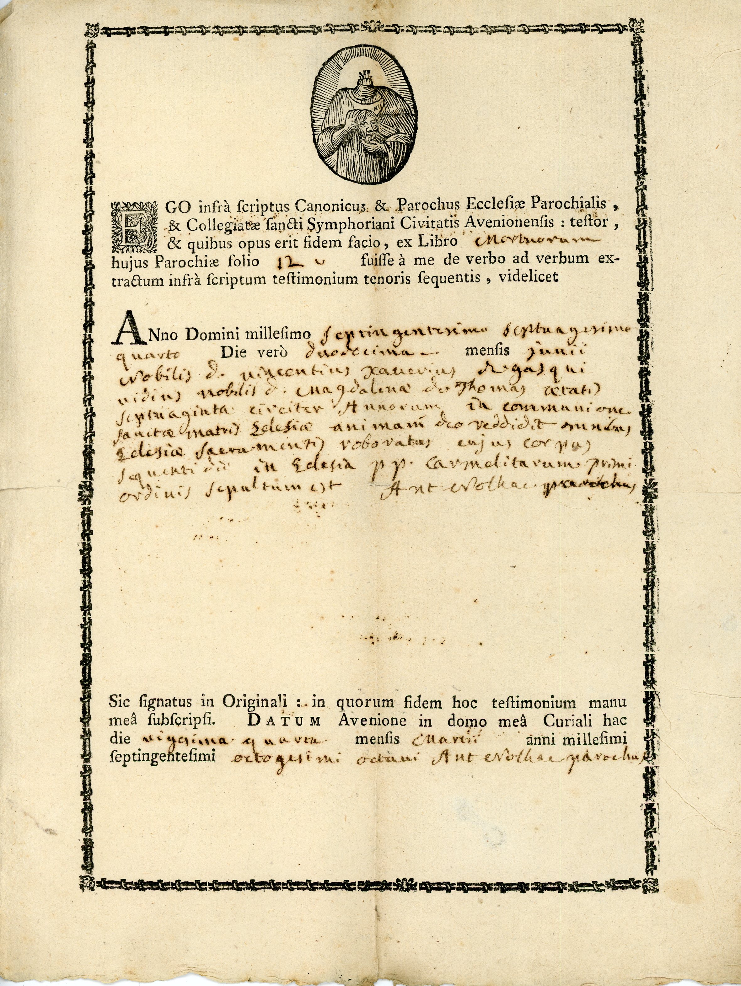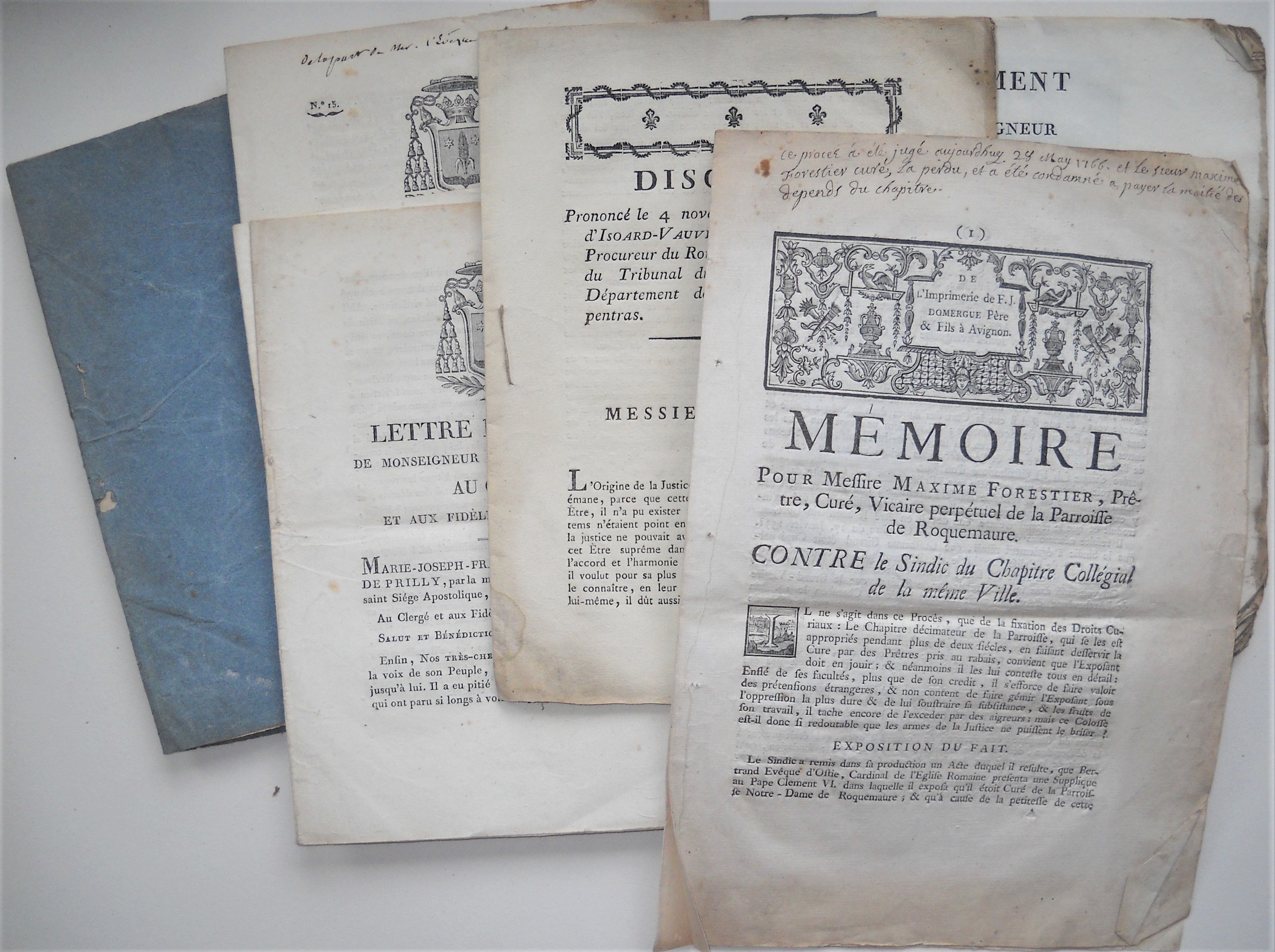 Lot de + de 70 pièces diverses relatives au clergé et à l'ordre de Malte dans le Comtat-Venaissin et autres provinces, XVIIe au XIXe siècle