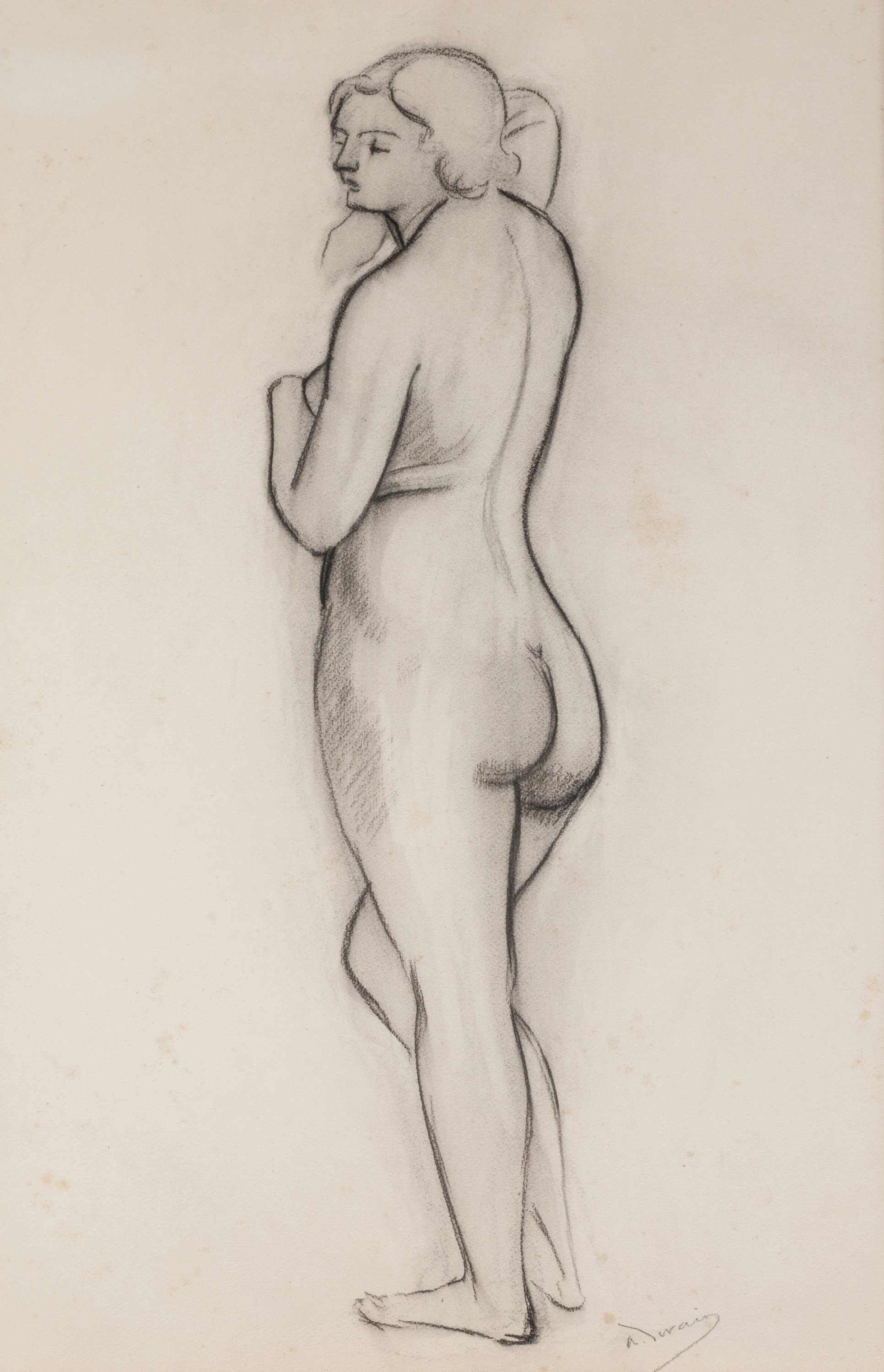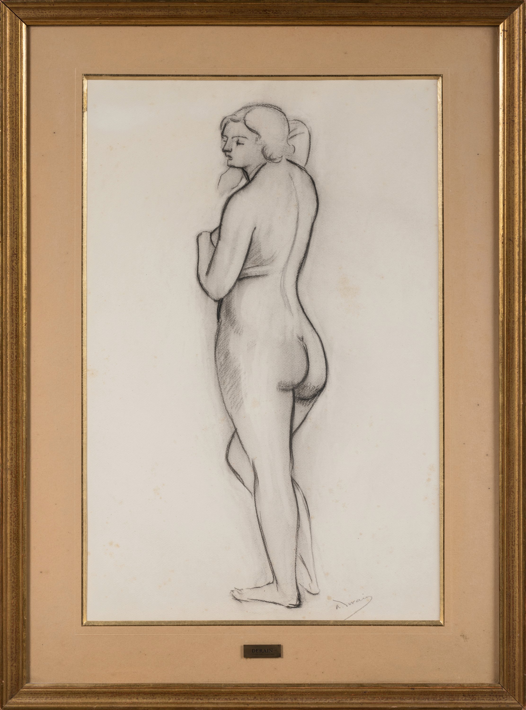 André DERAIN (Français, 1880-1954)Nu debout.Fusain signé en bas à droite.H....