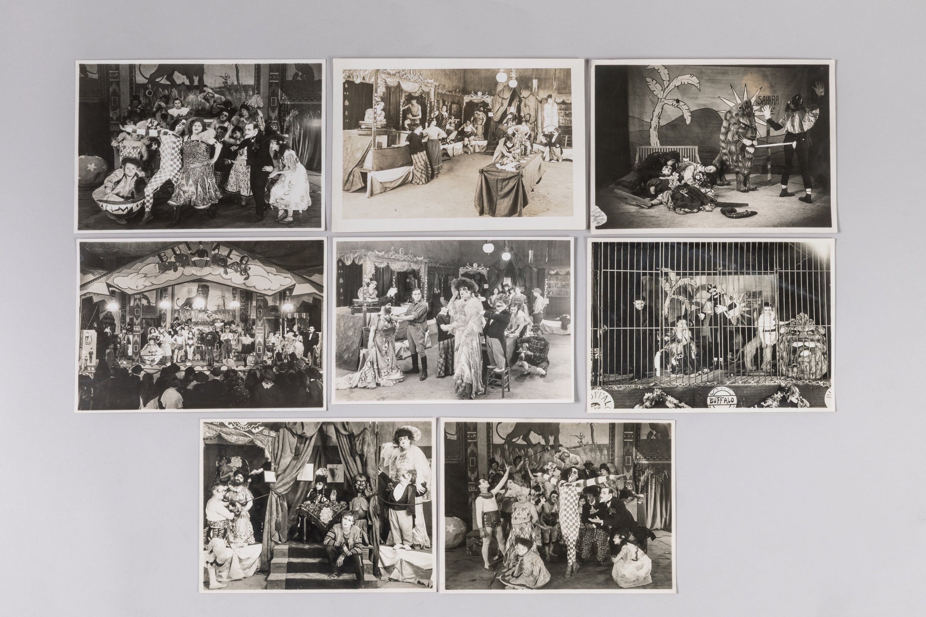 JOINT: ensemble de huit épreuves gélatino-argentiques dépoque de LA GALERIE DES MONSTRES, huit tirages de plateau du film réalisé en 1924 par JAQUE- CATELAIN. Atlantida Film : Cinégraphic. Format moyen : Haut. 16, Larg. 21 cm. ainsi que la photocopie du livret du film.