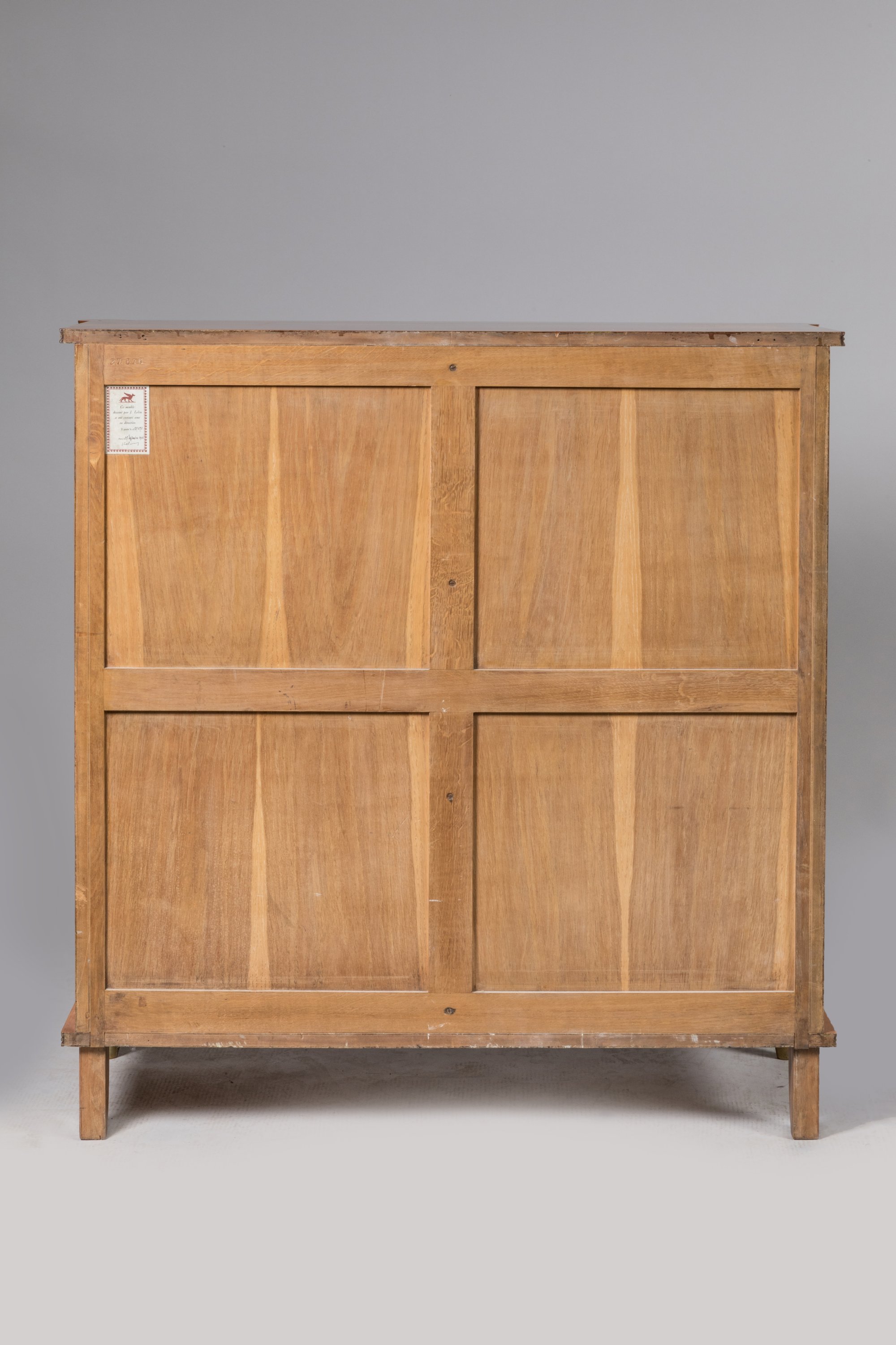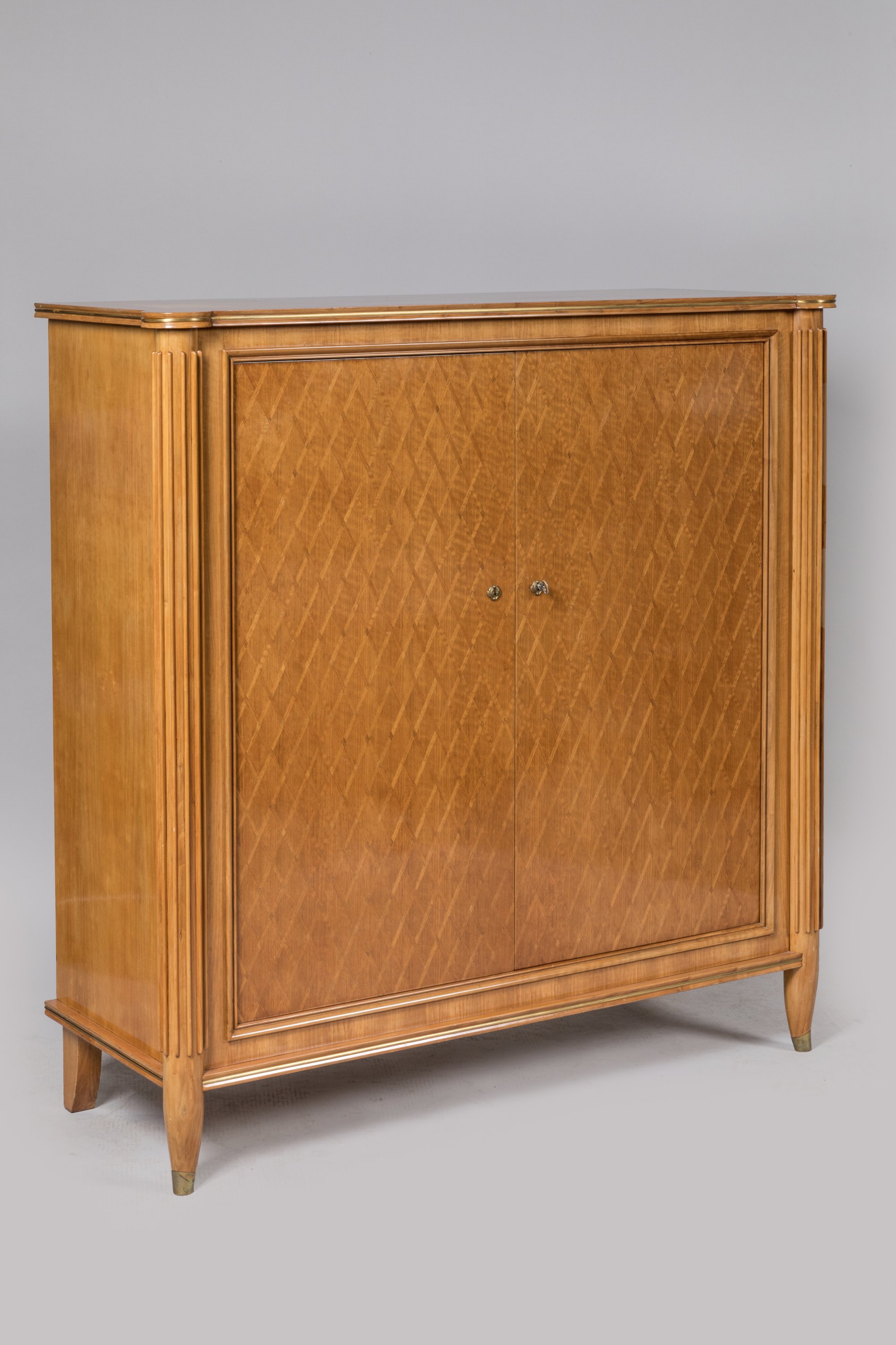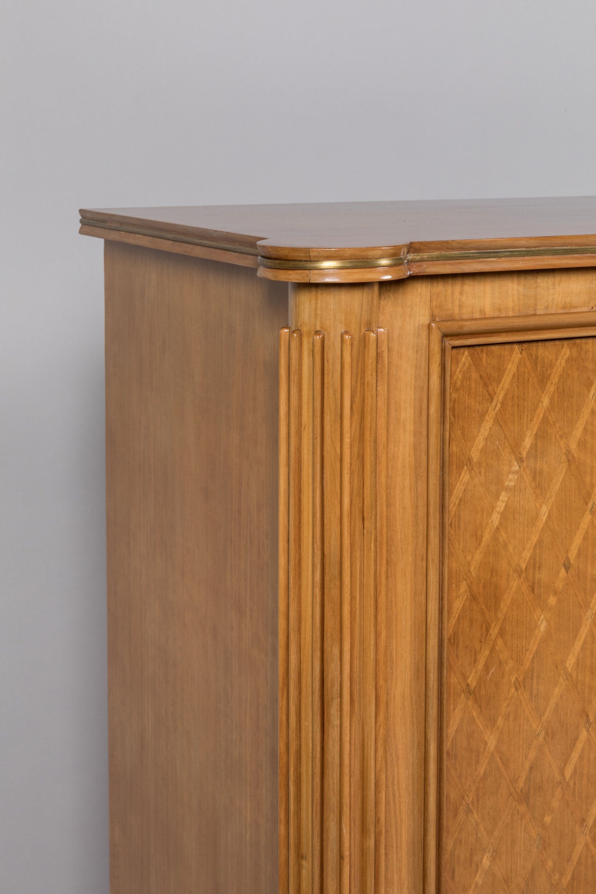 en érable et placage d'érable ouvrant à deux portes à marqueterie losangée découvrant des étagères. Les portes sont flanquées de deux colonnes cannelées en relief. Ornée de filets de laiton dencadrement et sabots antérieurs.