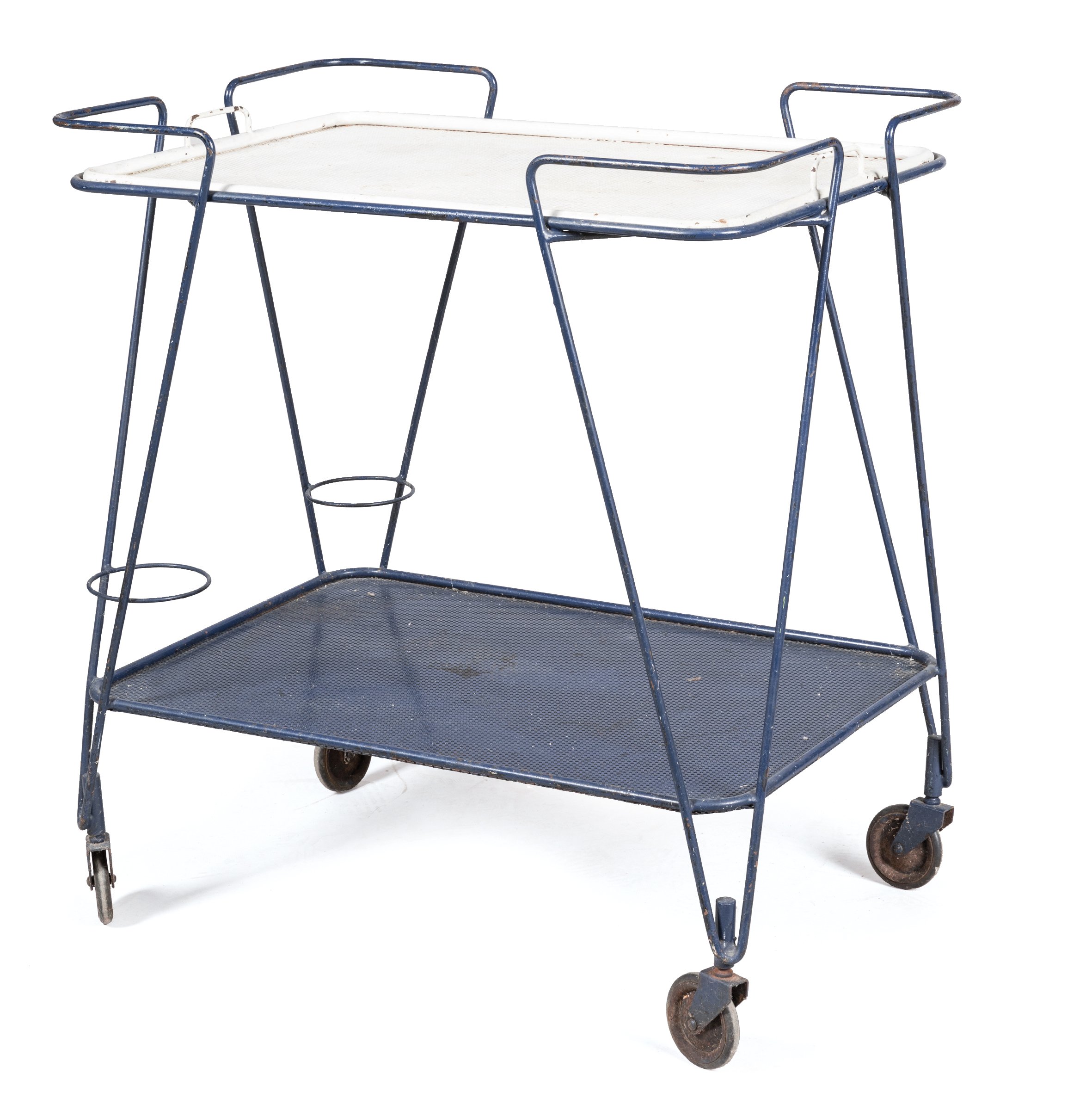 Mathieu MATÉGOT (Franco-Hongrois, 1910-2001) Table roulante.Structure noire plateau du bas...