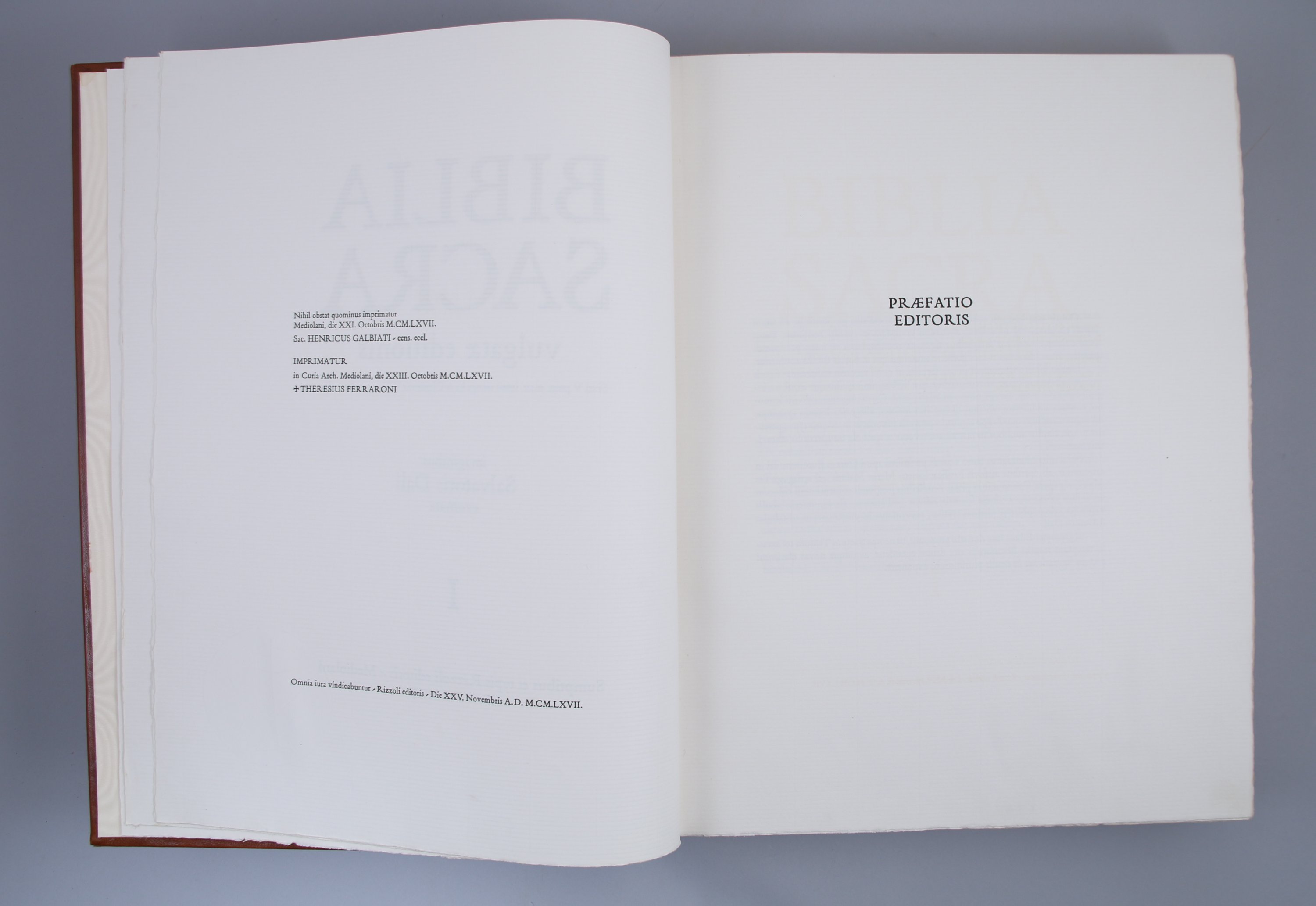 105 lithographies illustrant l'édition vulgate de la Bible en latin dite de Sixte X et Clément VIII, éditée par Rizzoli à Milan en 1967.