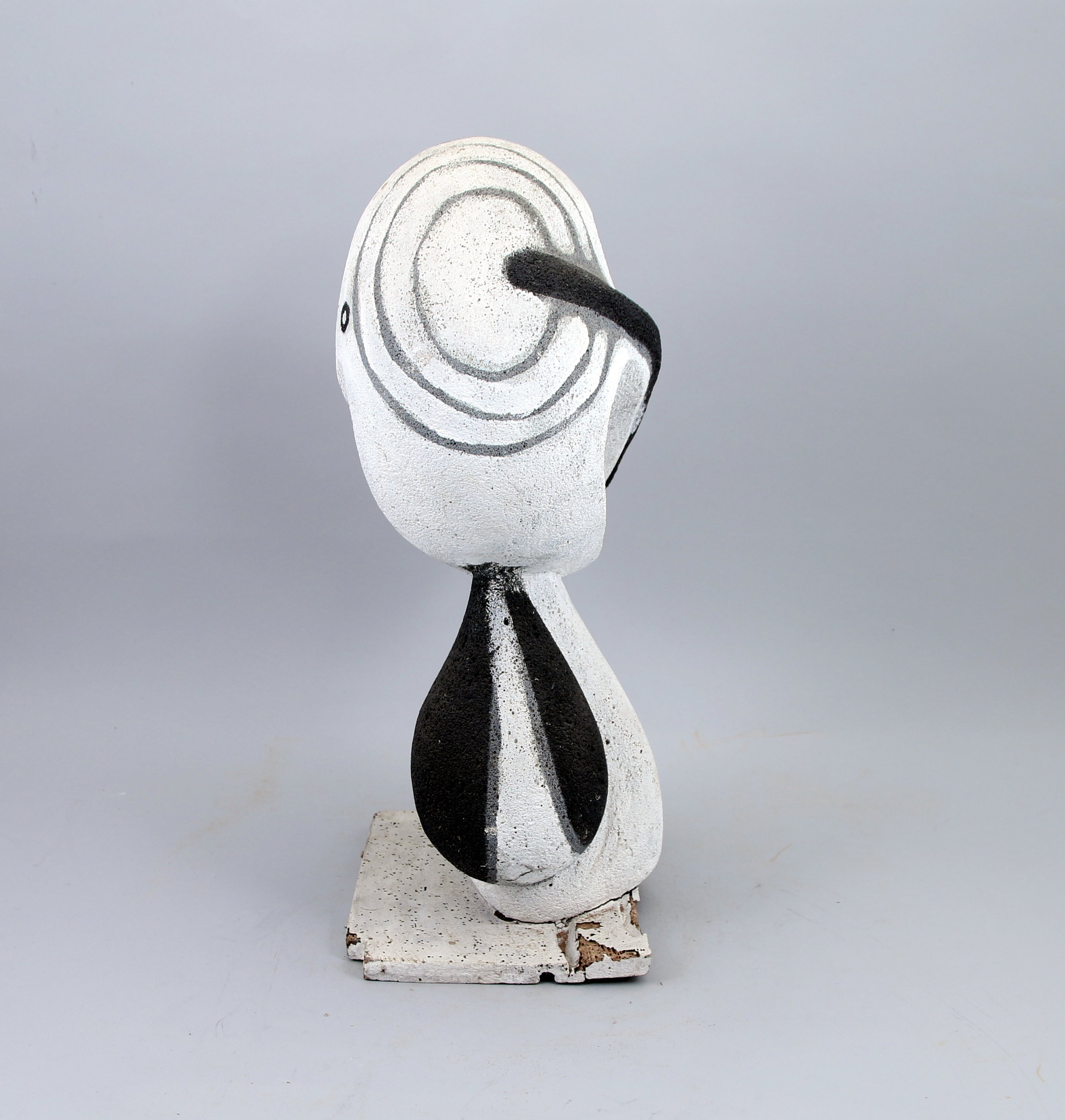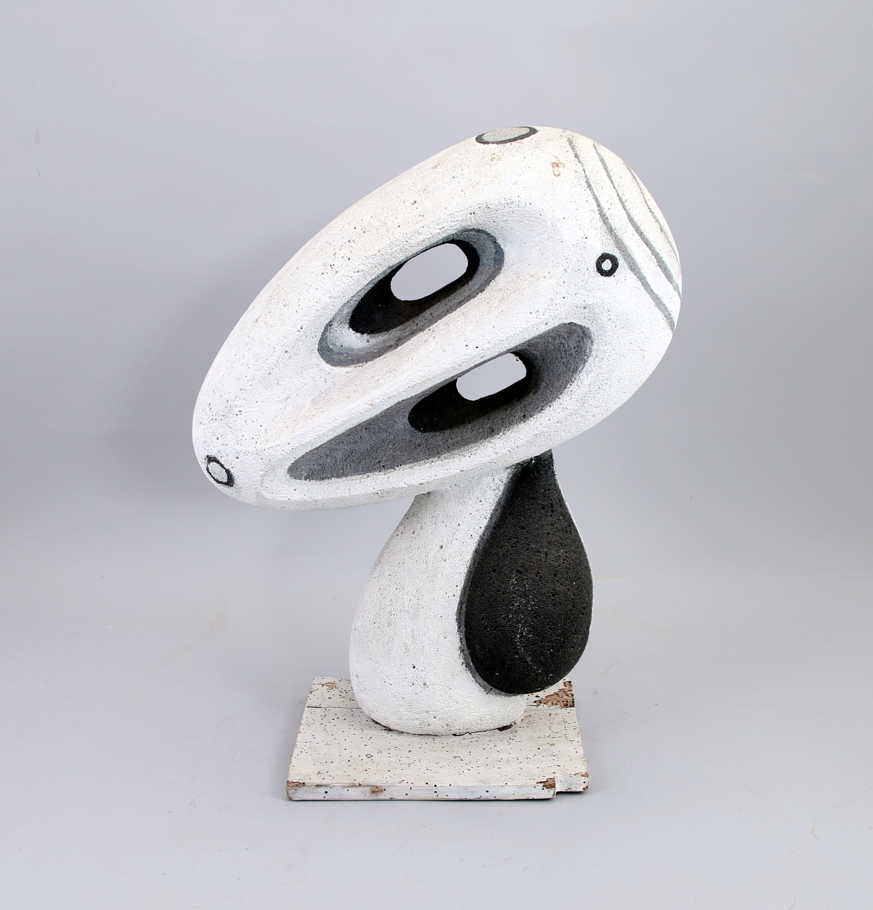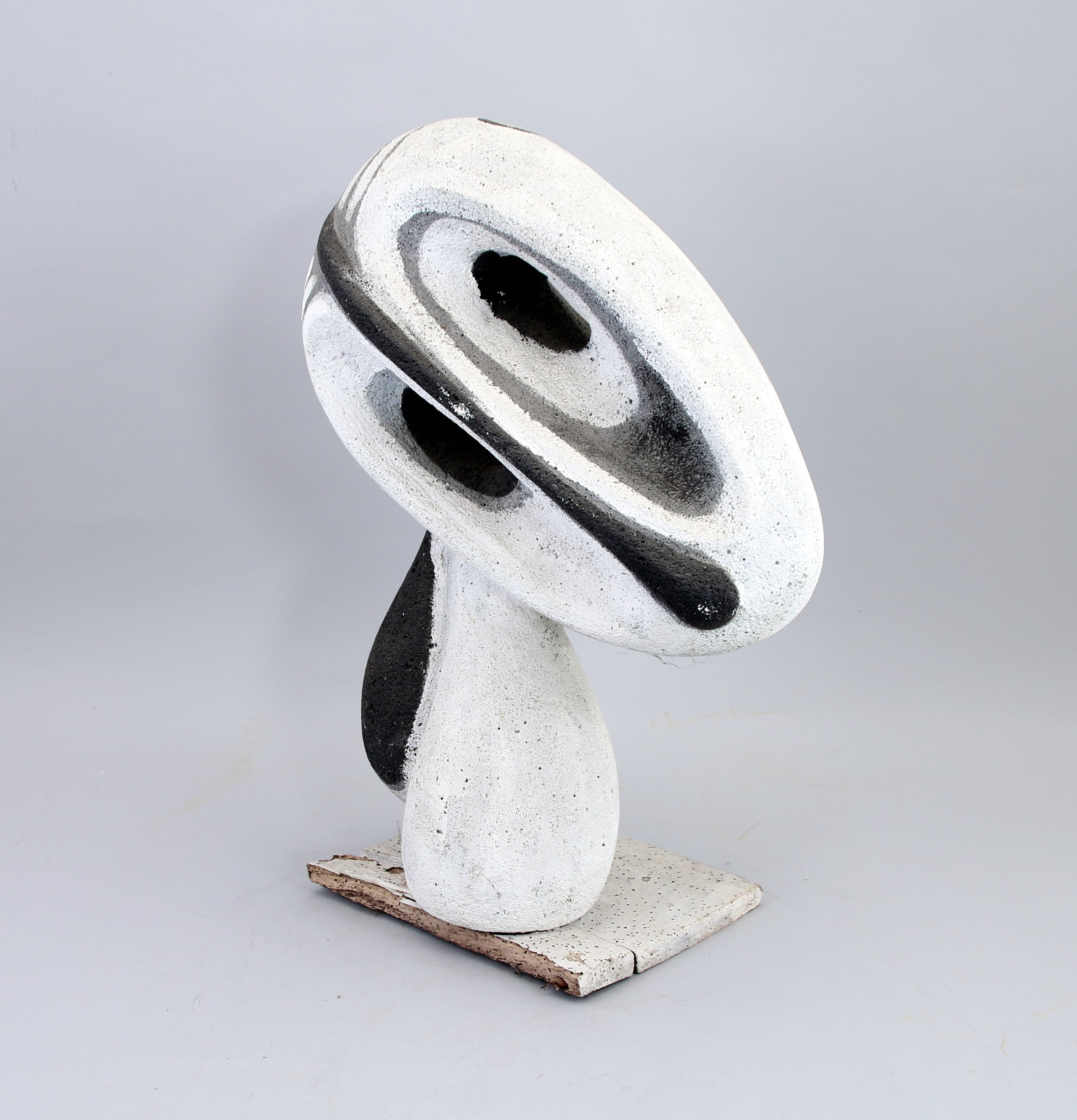 En siporex à patine blanche sur un socle en bois.