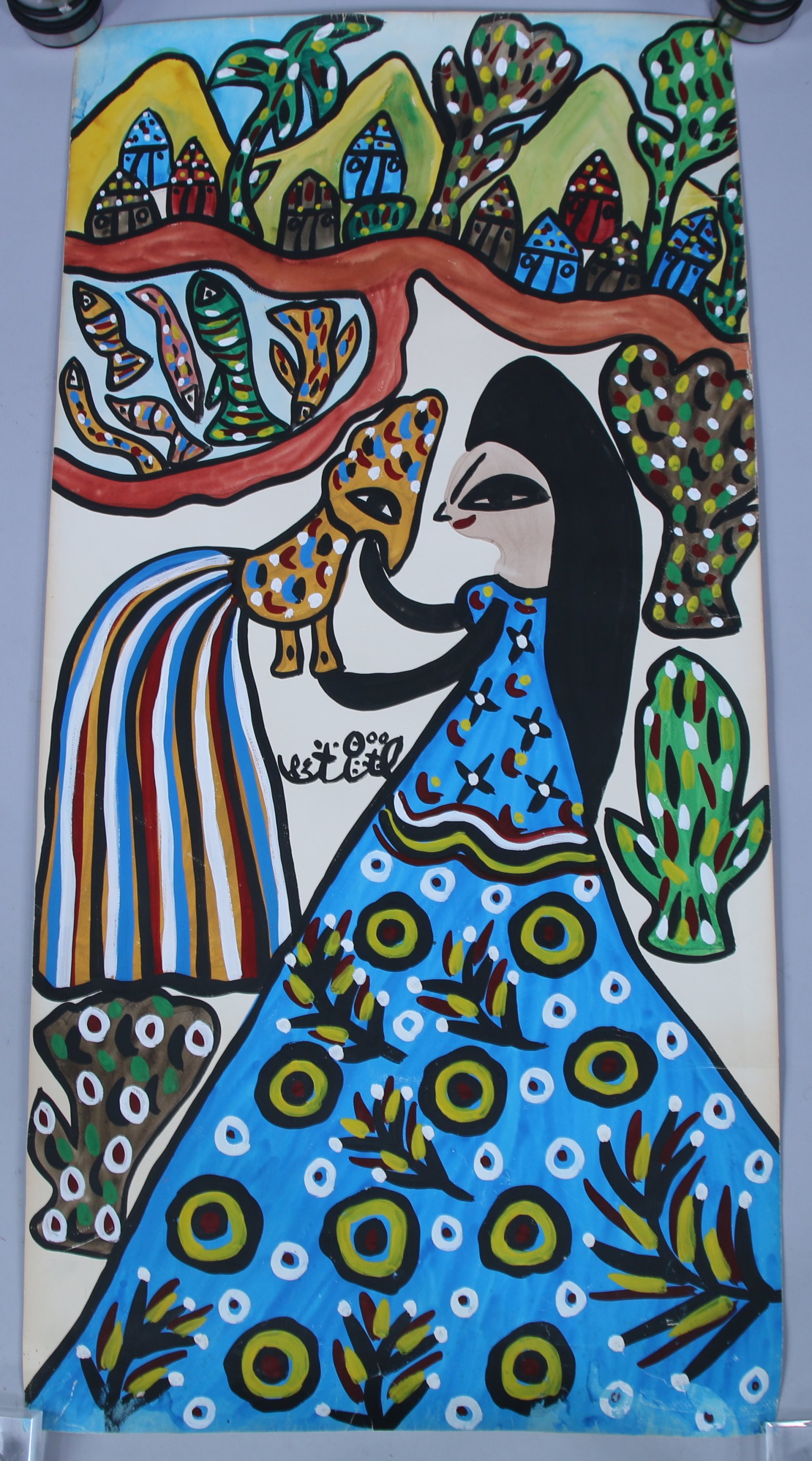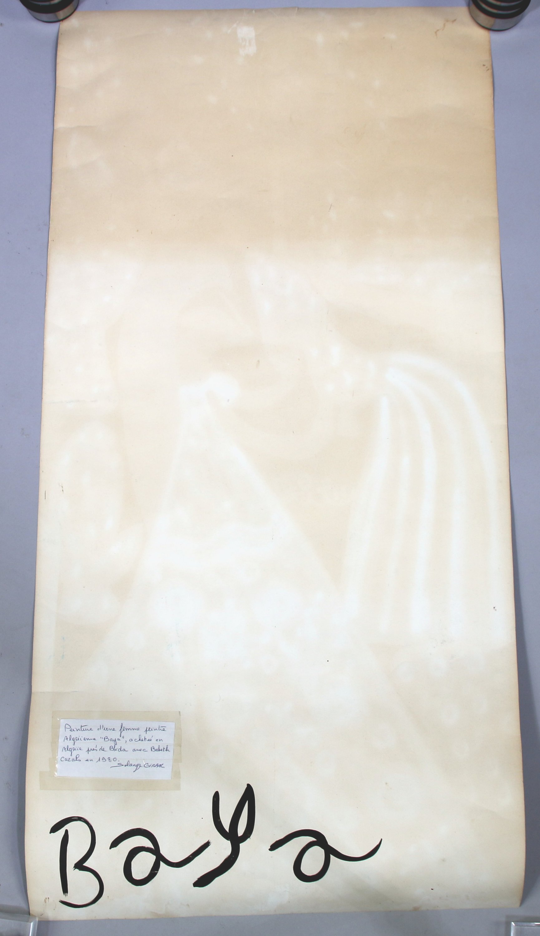 Maheddine BAYA (Algérienne, 1931-1998)Femme au paon, 1983.Gouache sur papier.H. 99,5...