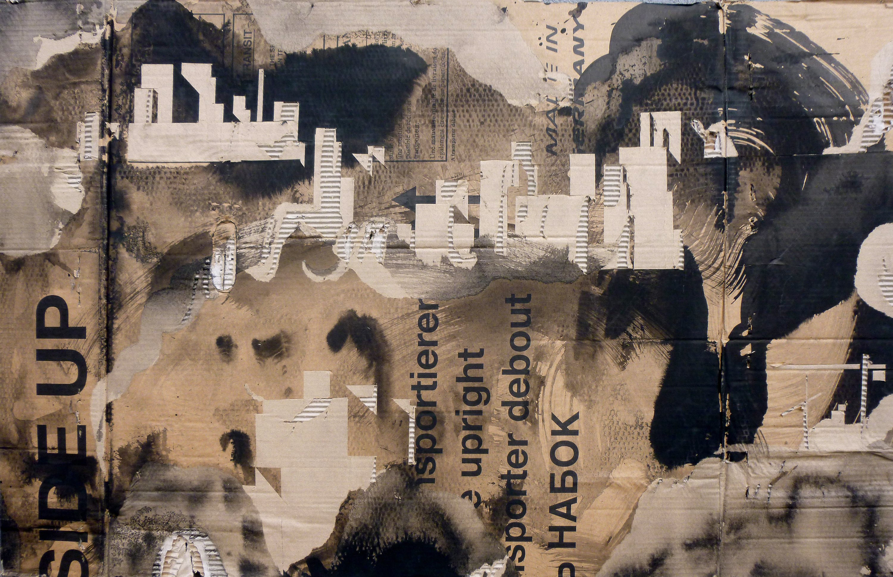 Encre, pigments, liant, acrylique sur carton d'emballage.
