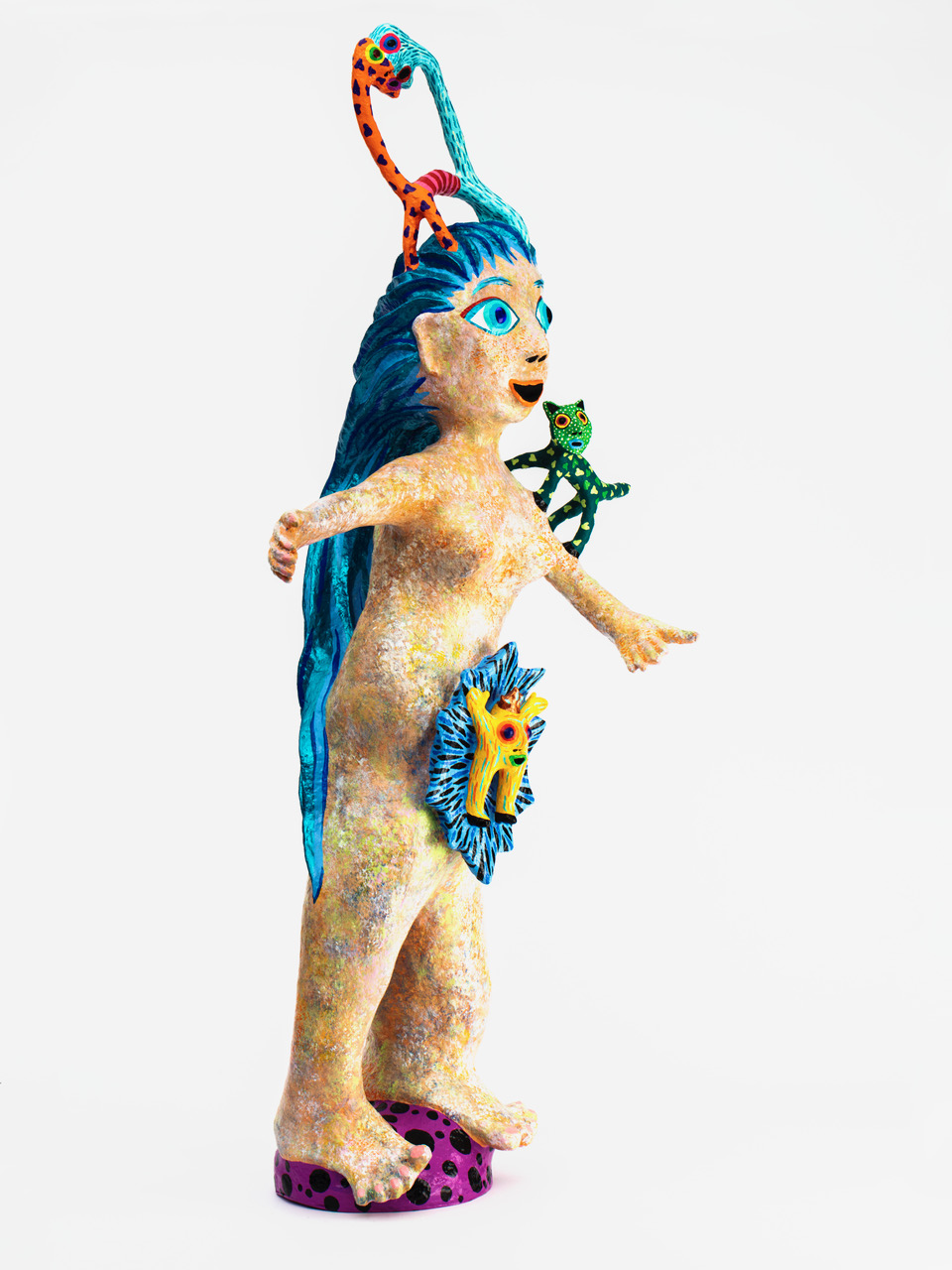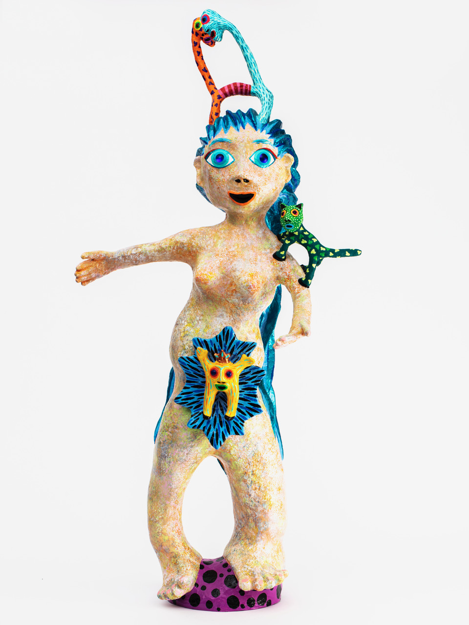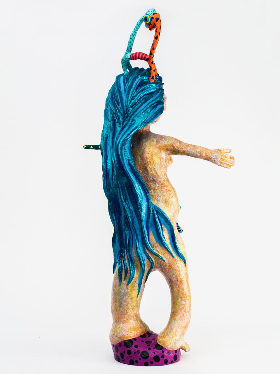 Papier maché et peinture sculpture. Pièce unique signée et datée.