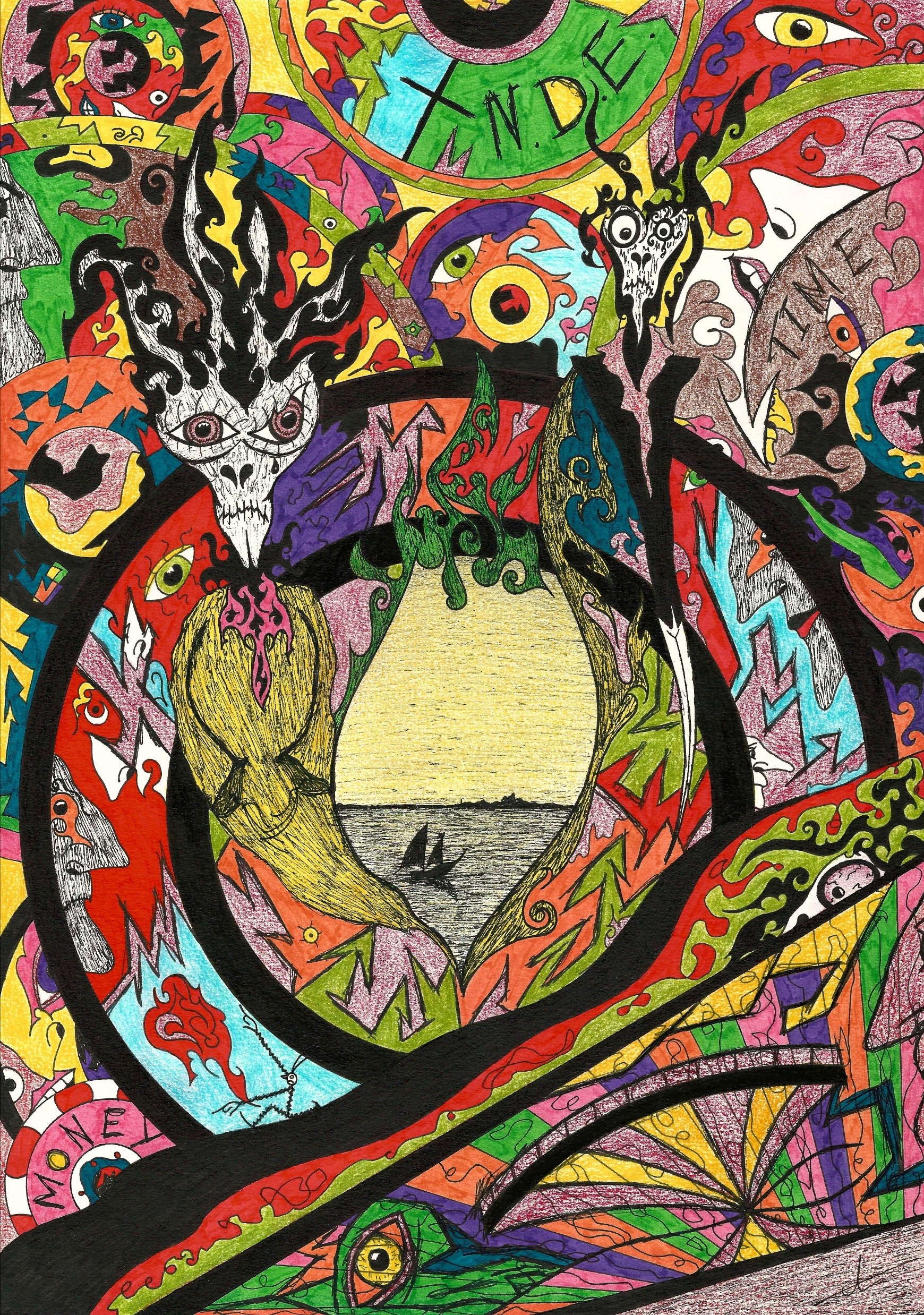 Encre de chine et crayon de couleur sur papier 180 gr.