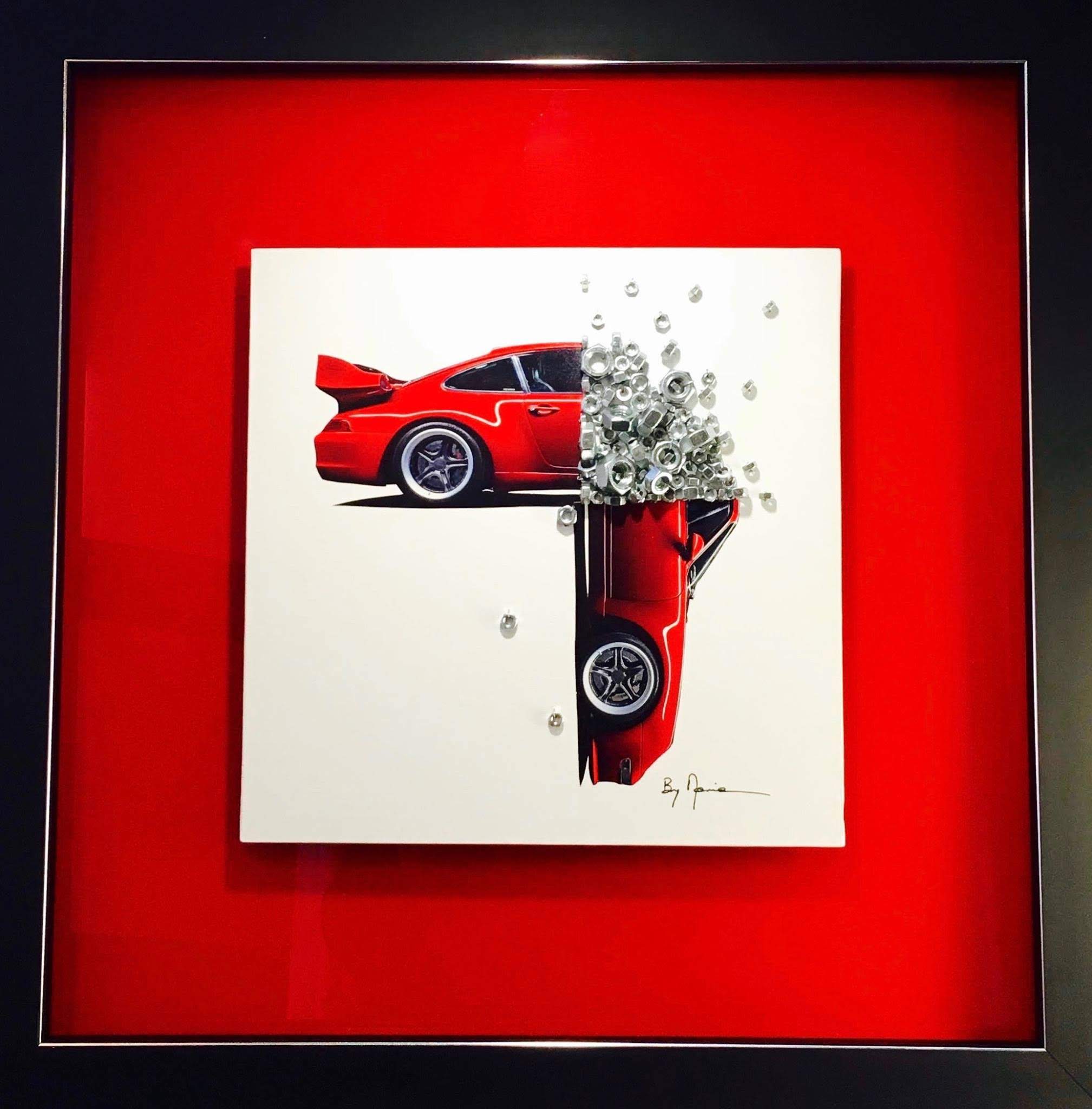 encadrée caisse américaine avec fond rouge en verre trempé.
